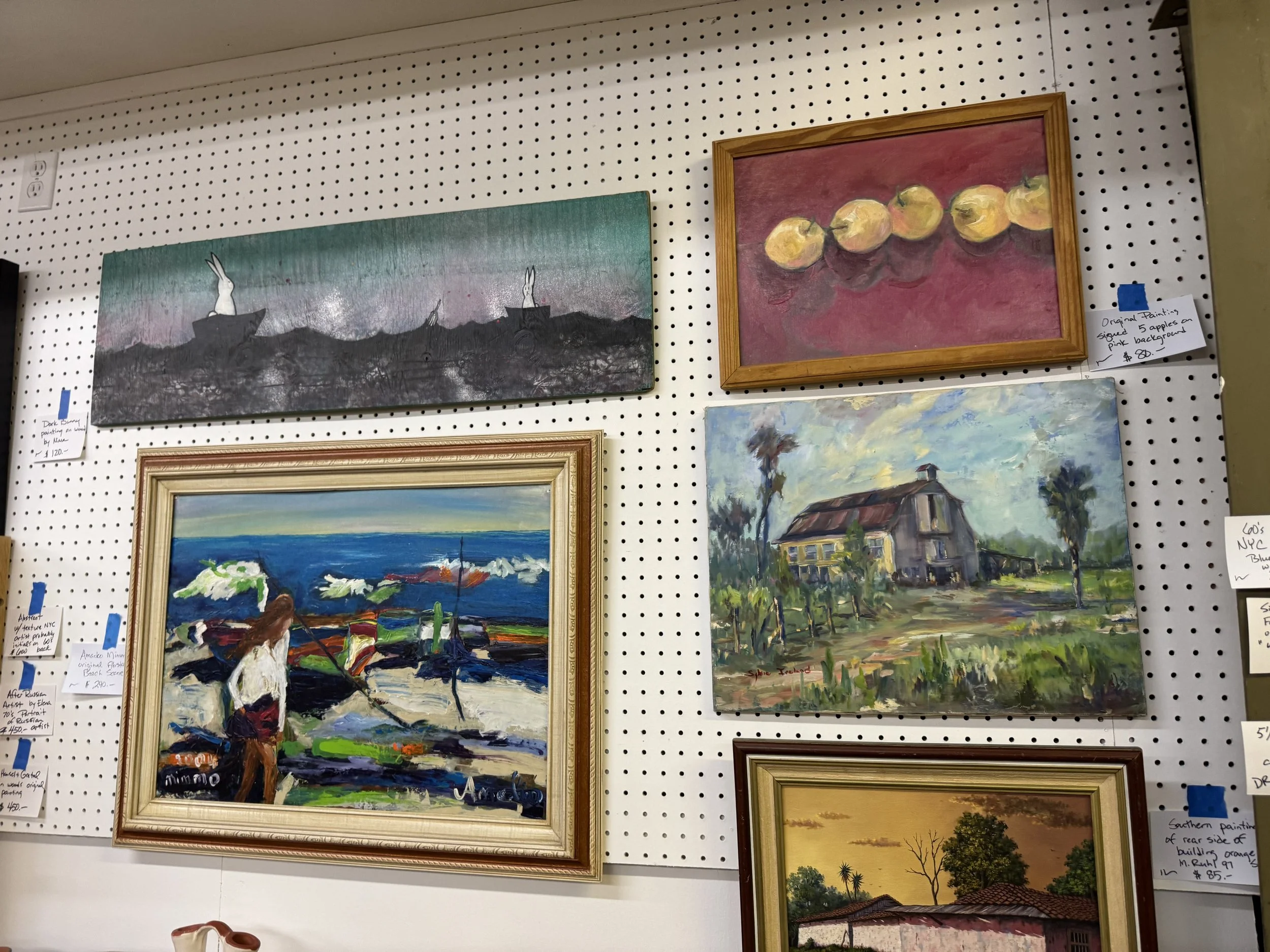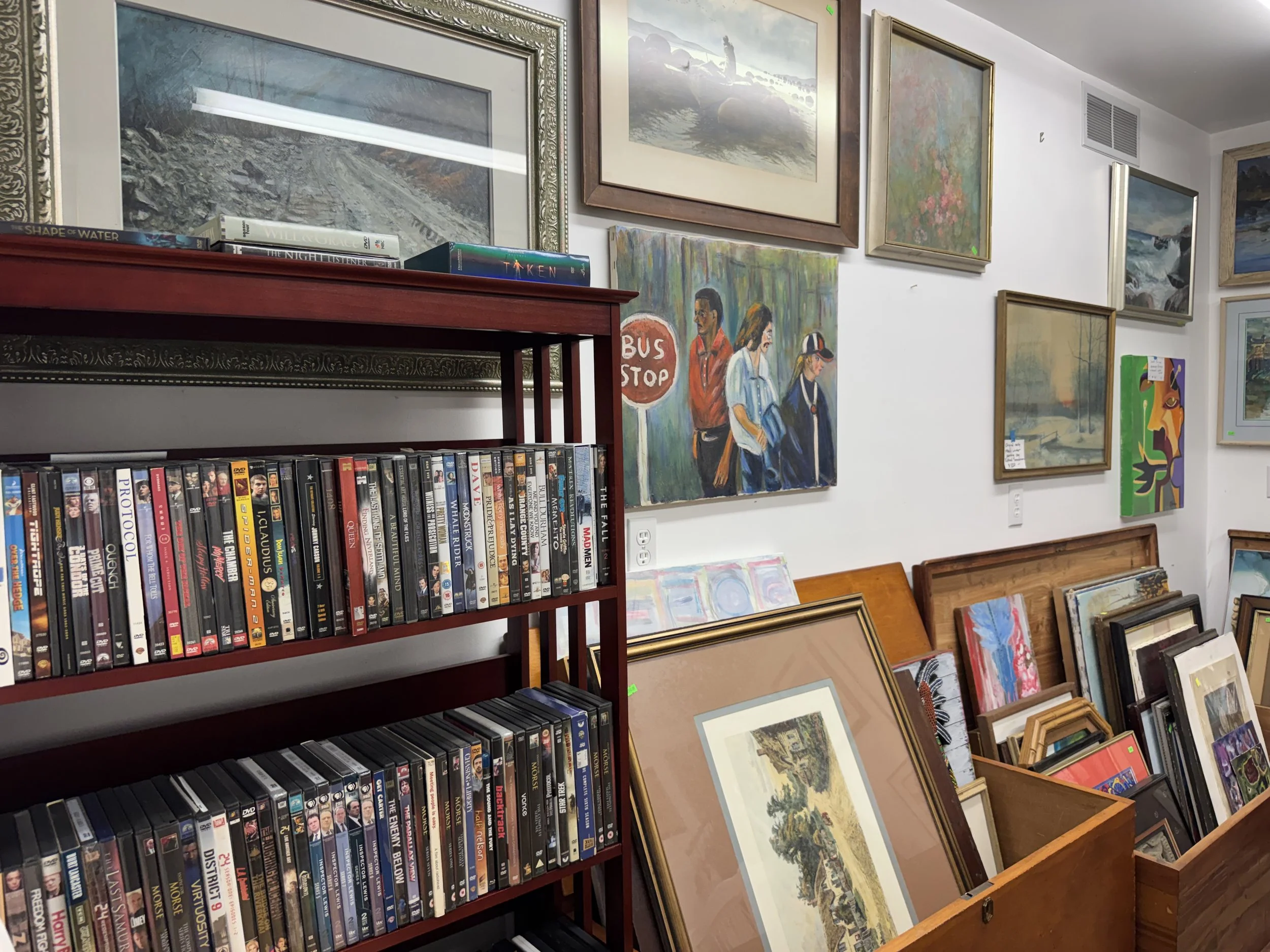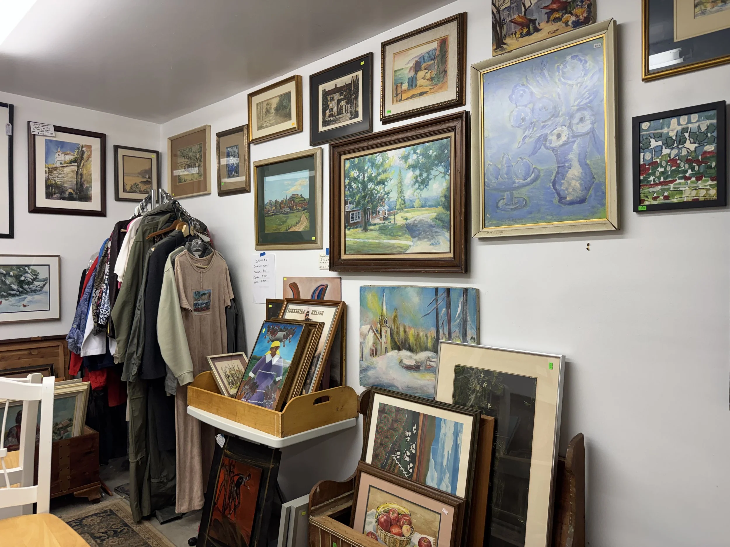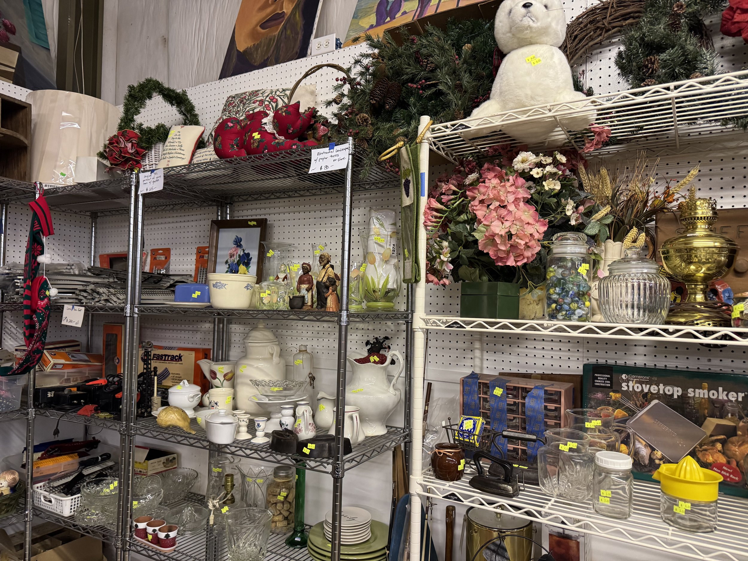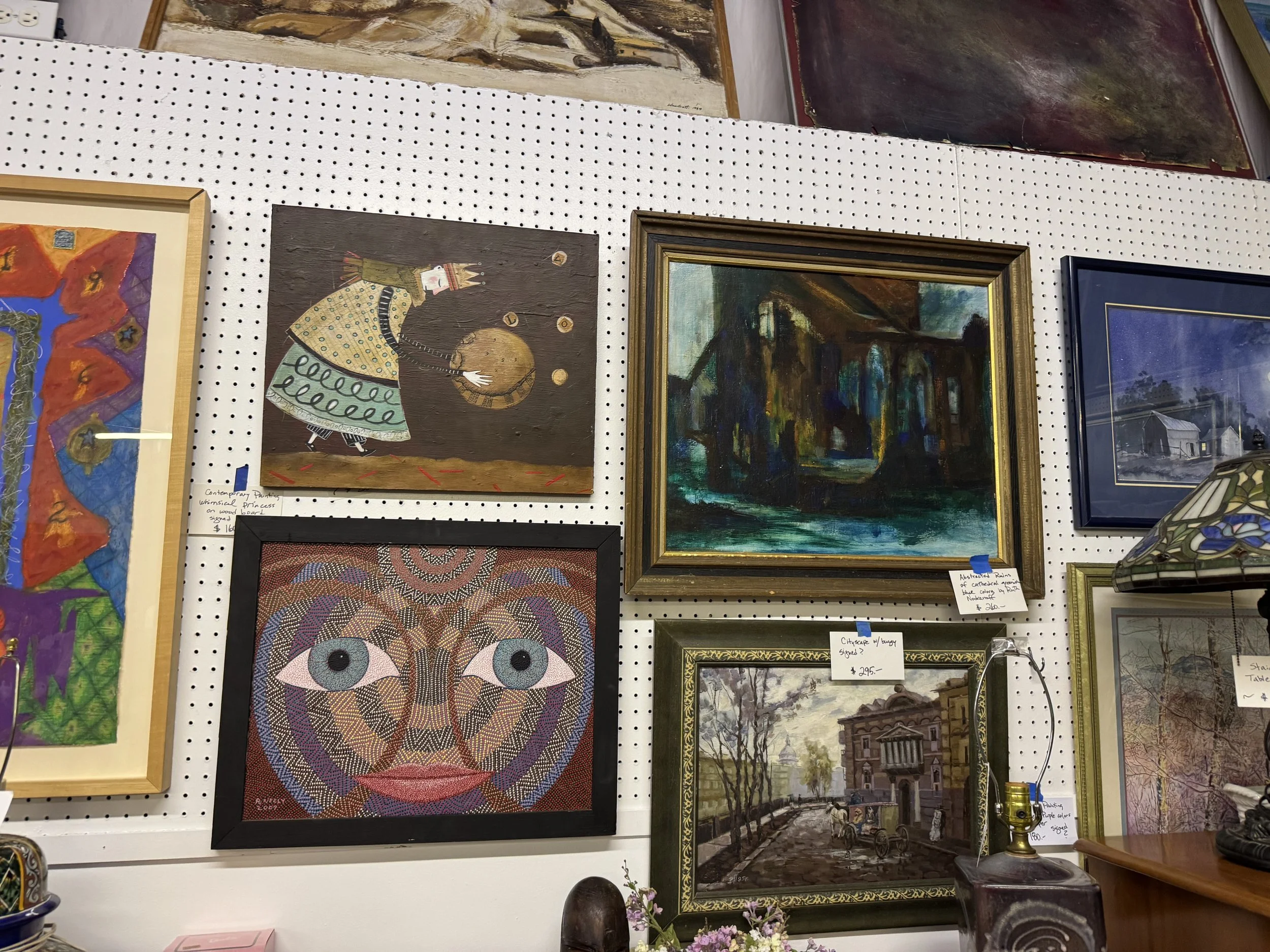 Misc: Original art -listed artists, quality prints, plastic duck decoys, books, Christmas items, Madam Alexander doll collection, Hummel collection, pottery collection, First Nations pottery, women's clothing and shoes, etc