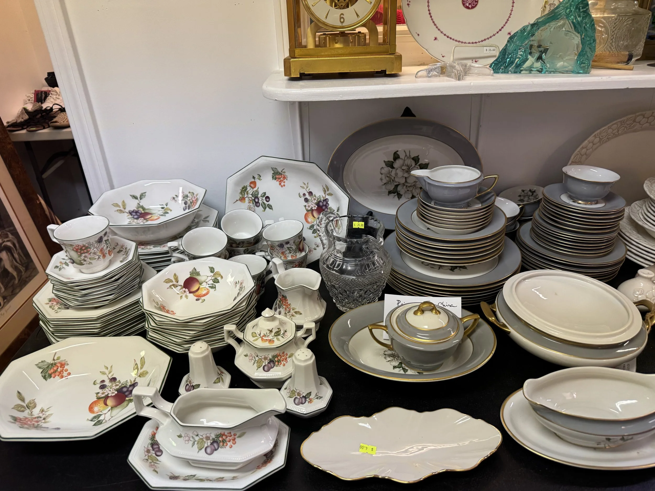 GlassWare/Kitchen: Several sets of china, Blue Ridge china, serving pieces, stemware, art glass, glass collectibles, etc