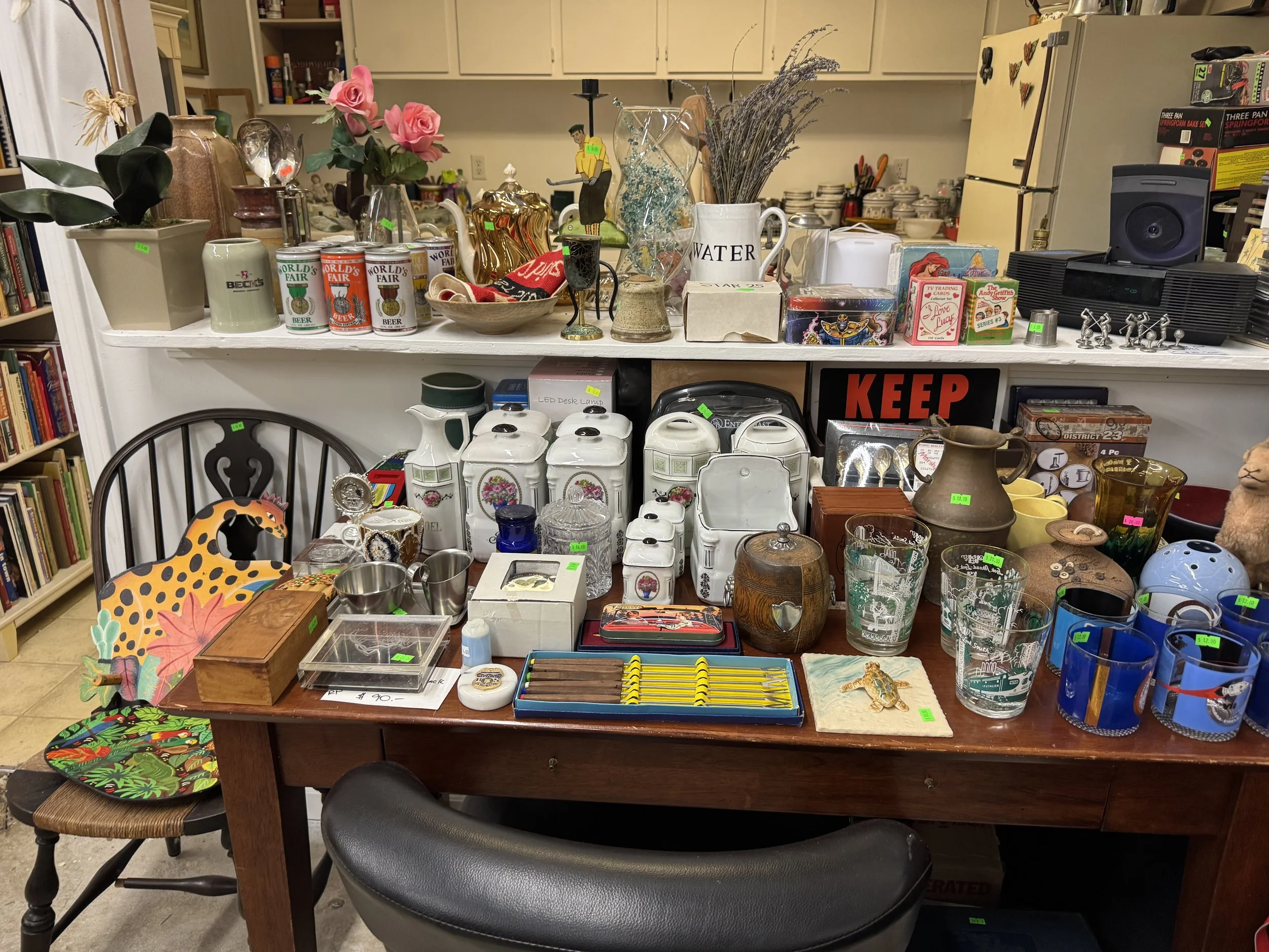 If an item has the description and price marked on a notecard and you would like it, please take the notecard. Once you are ready to checkout present the notecard for payment. ( We will have roaming employees that can put a sold sign with your name on it as well)
