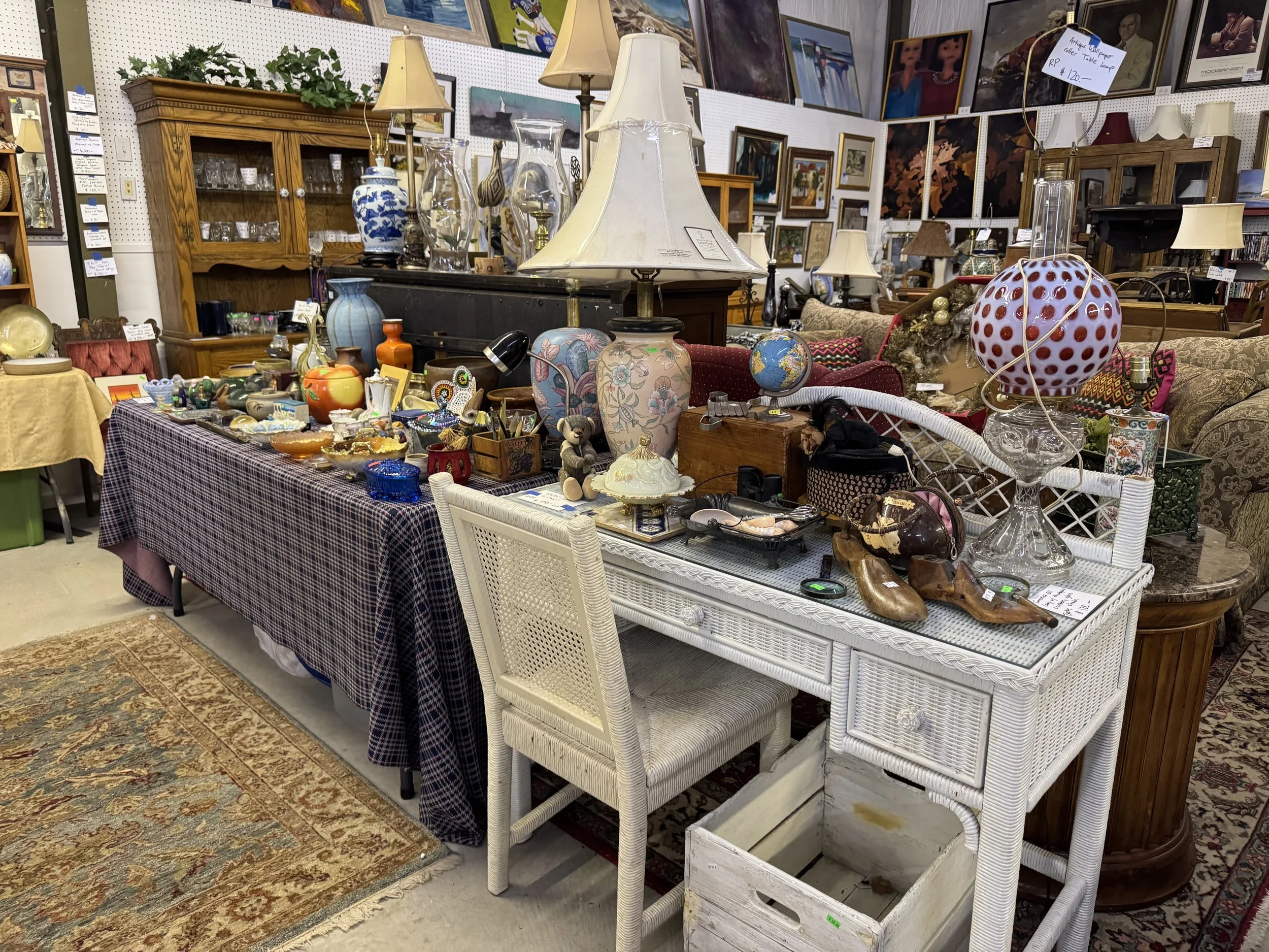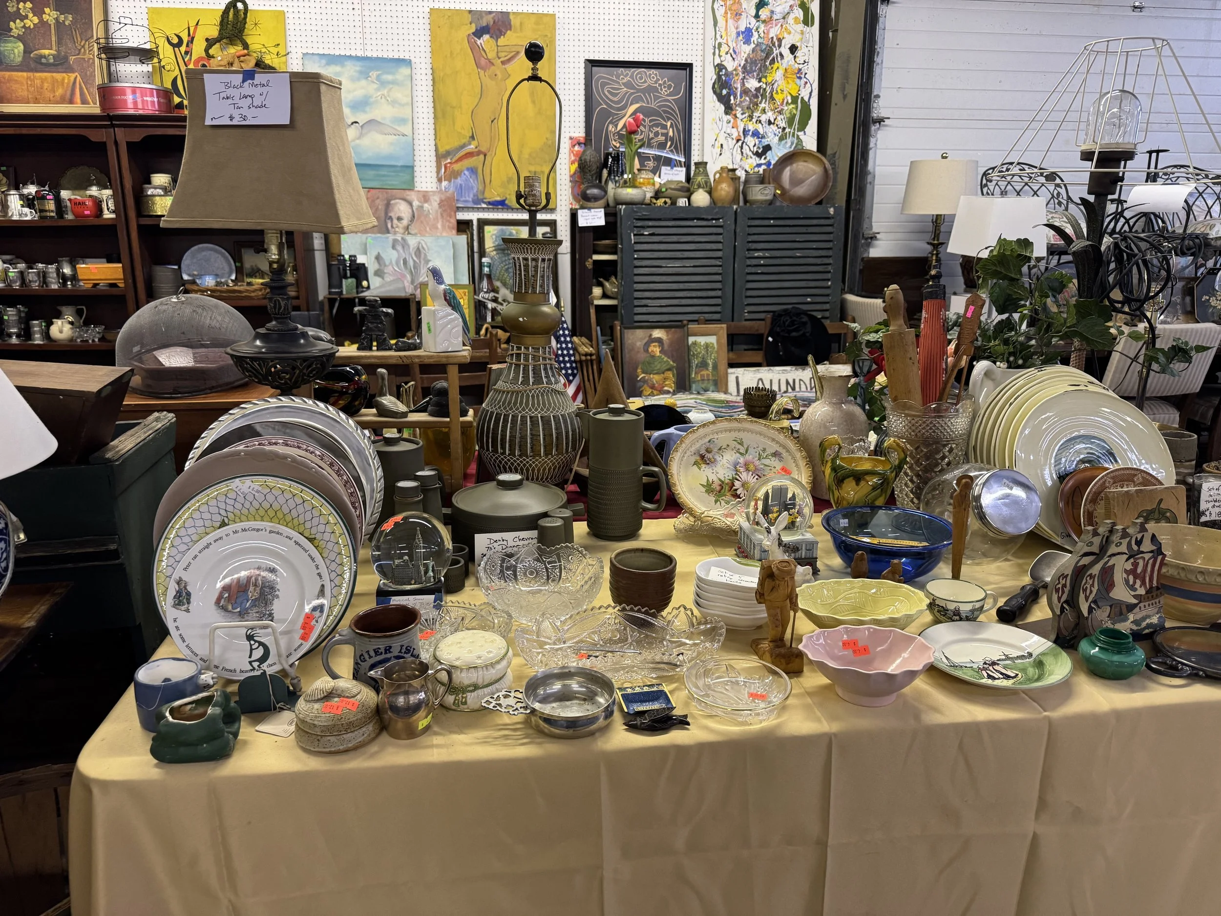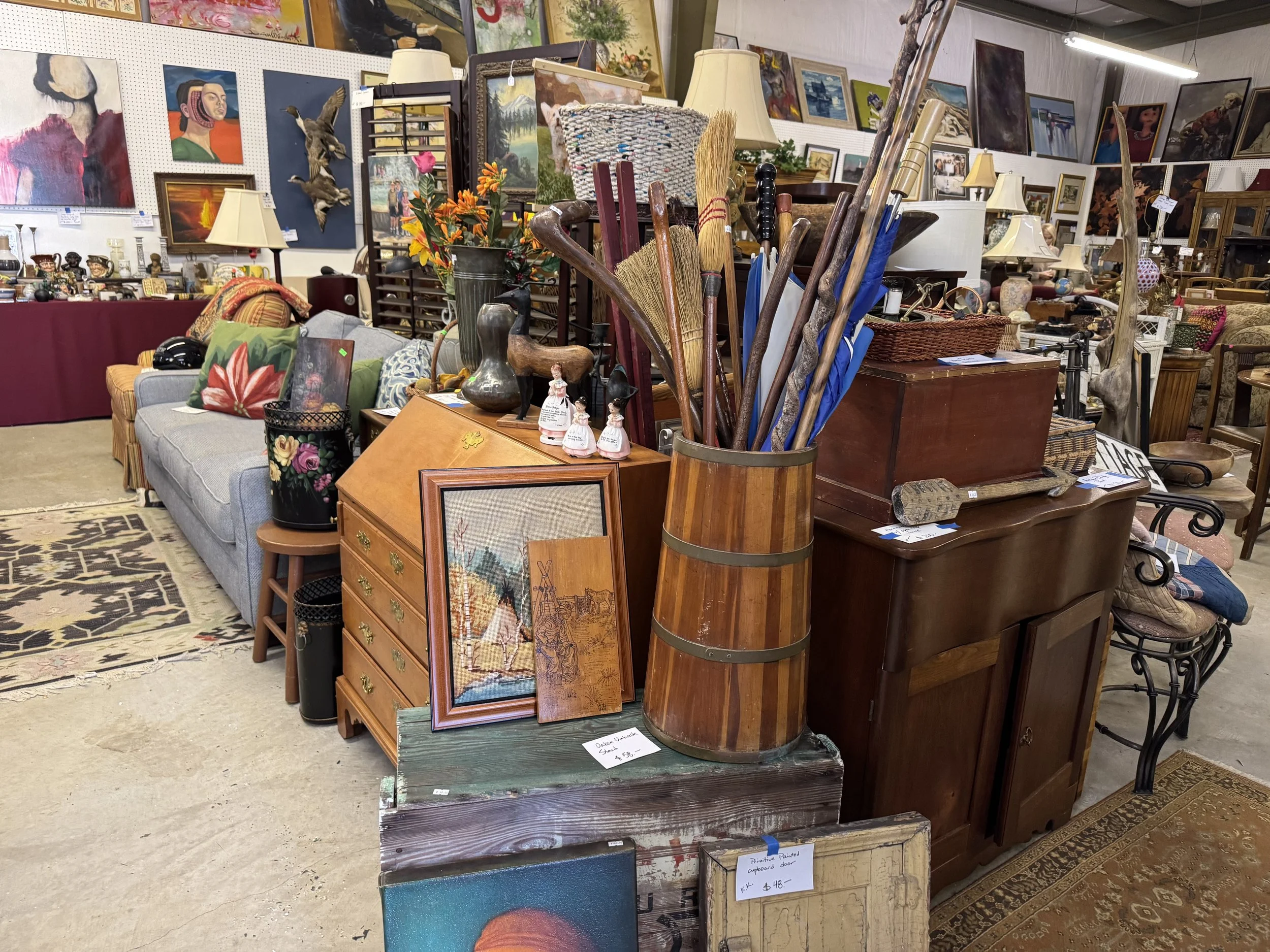 If an item has the description and price marked on a notecard and you would like it, please take the notecard. Once you are ready to checkout present the notecard for payment. ( We will have roaming employees that can put a sold sign with your name on it as well)