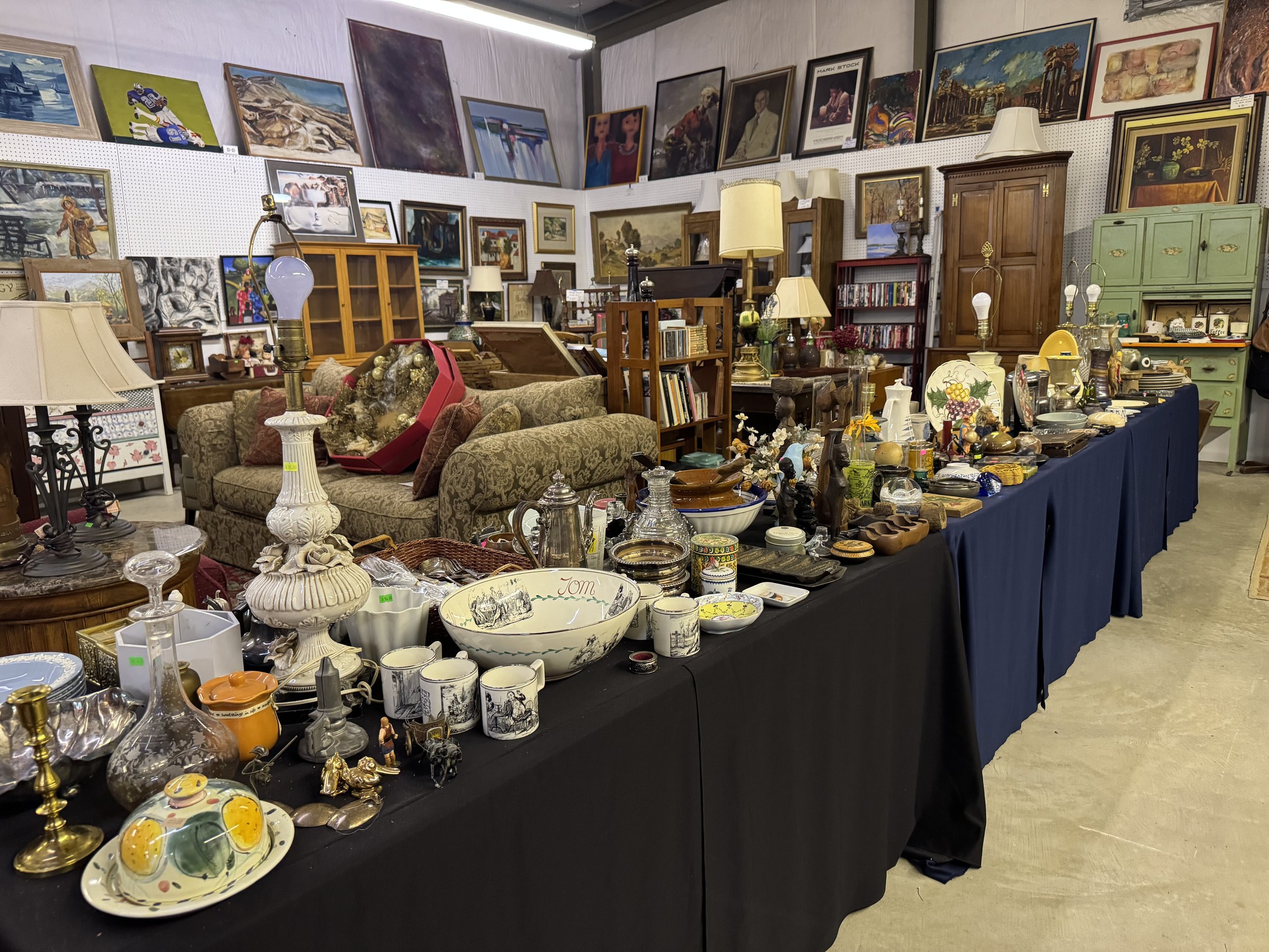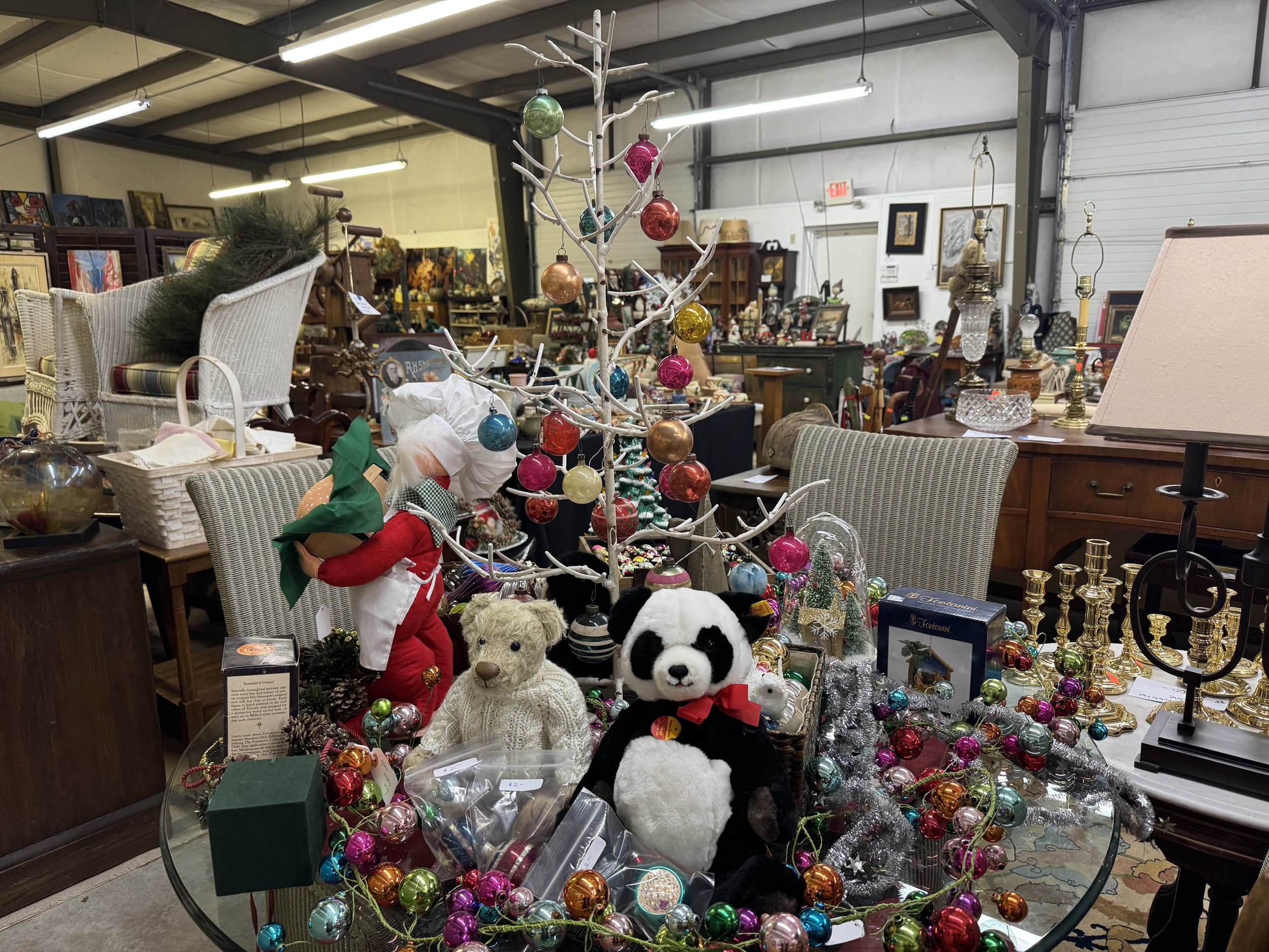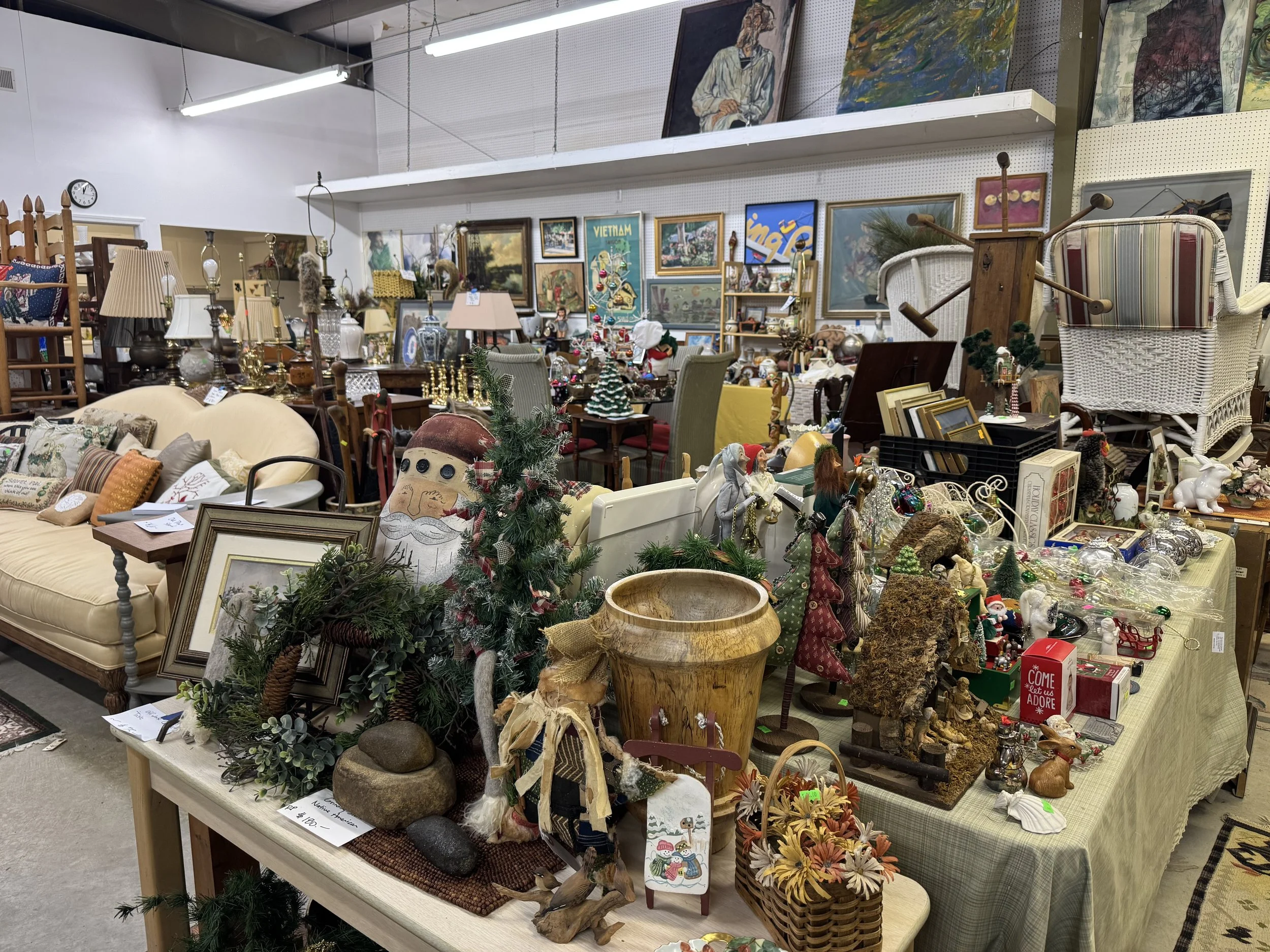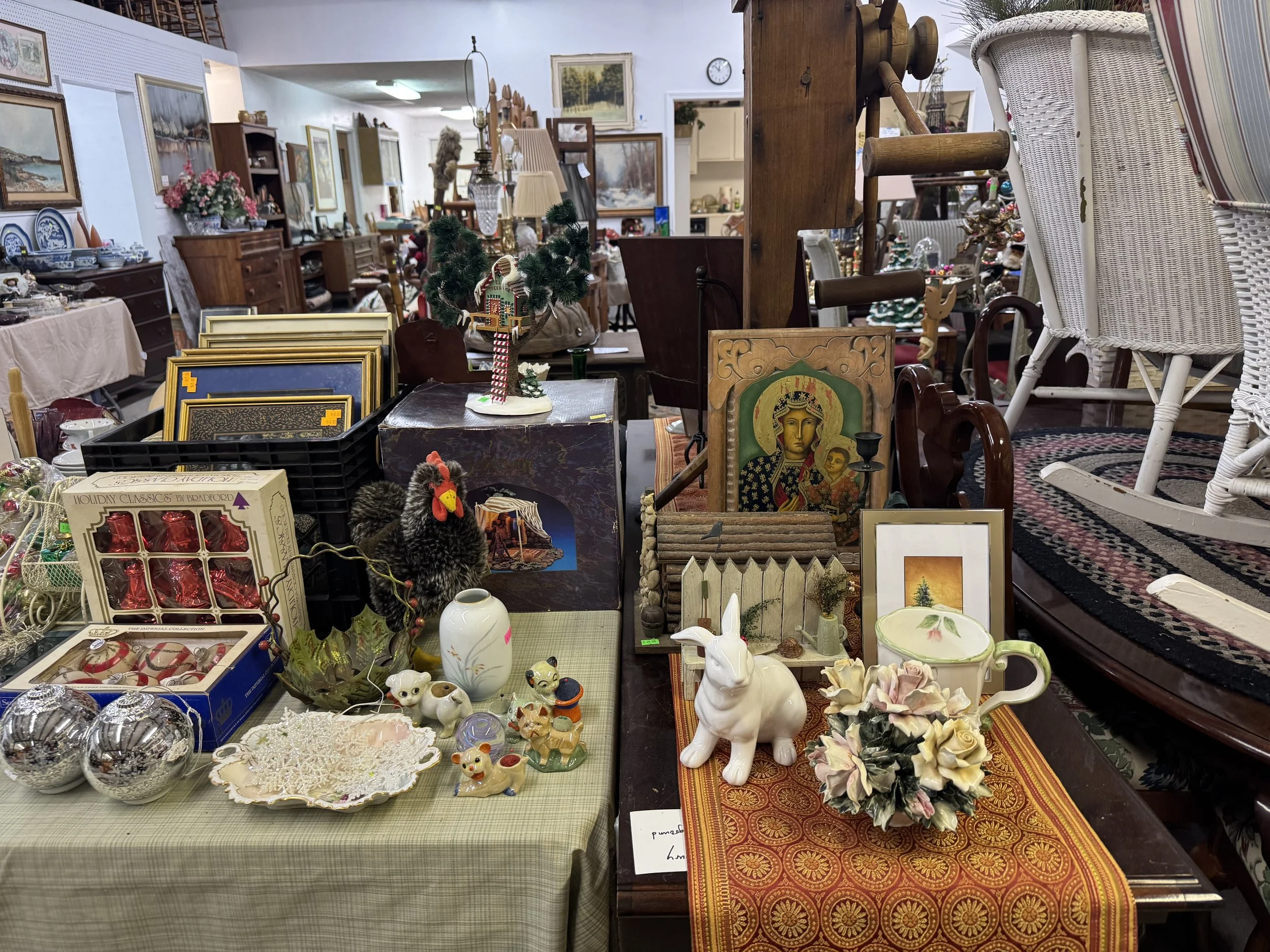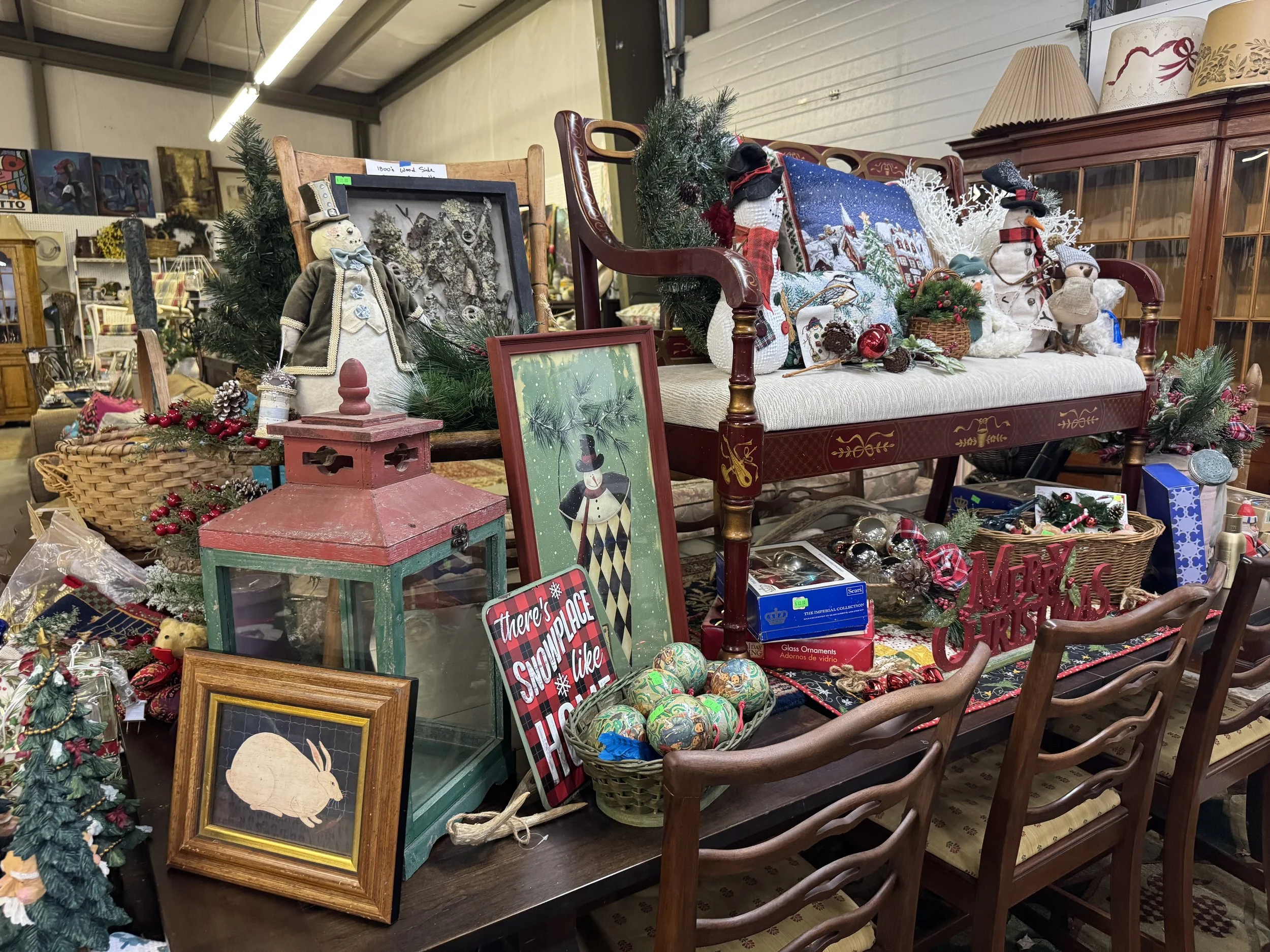 Rob has done it again....He has filled the warehouse with treasures from 6 different estates. Items include furniture, vintage Christmas decor, duck decoys, books, stemware, china and more.