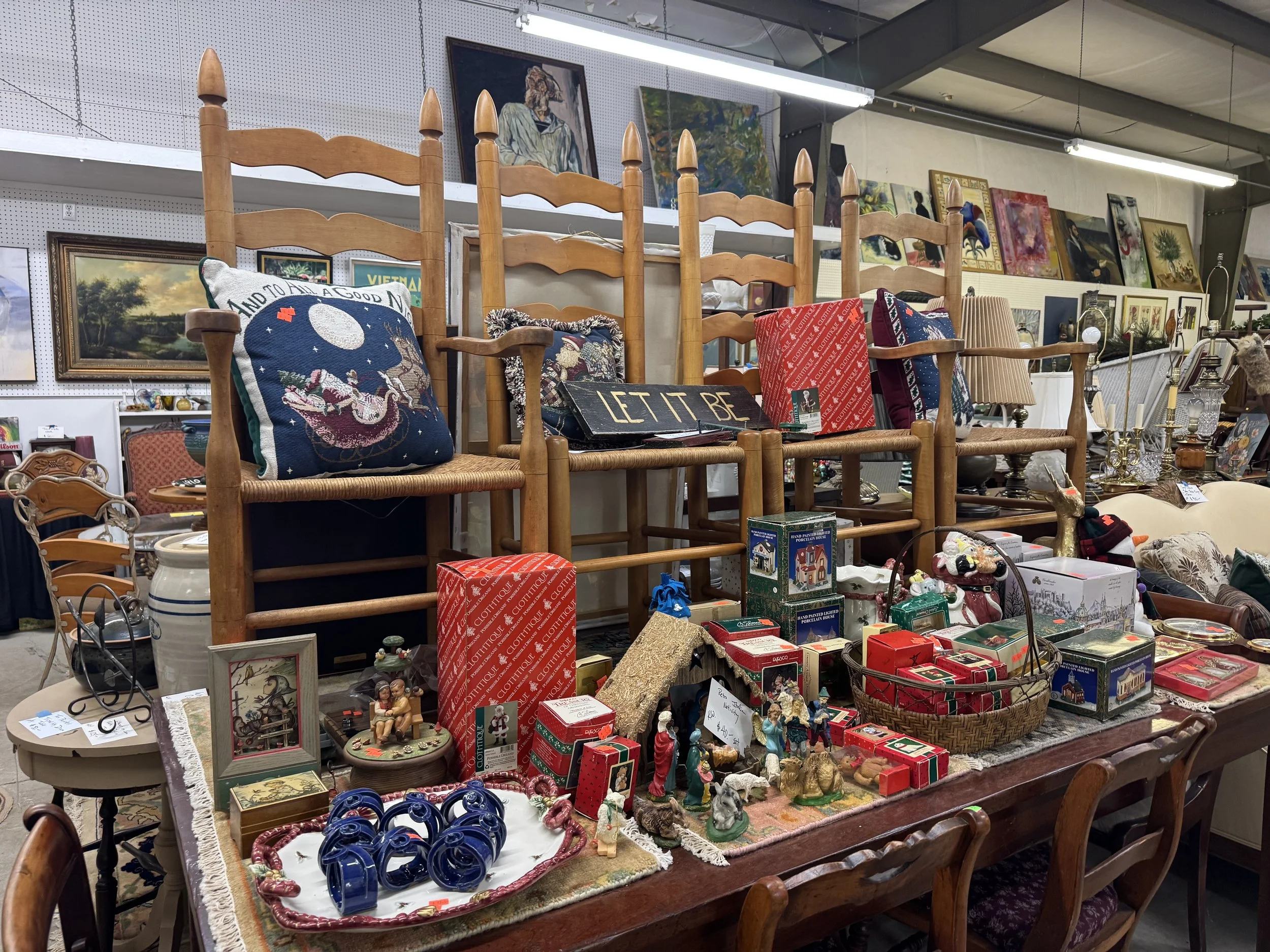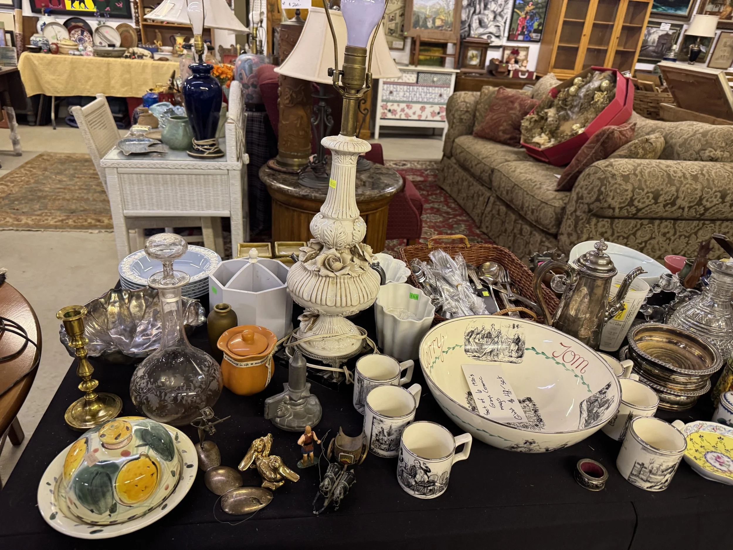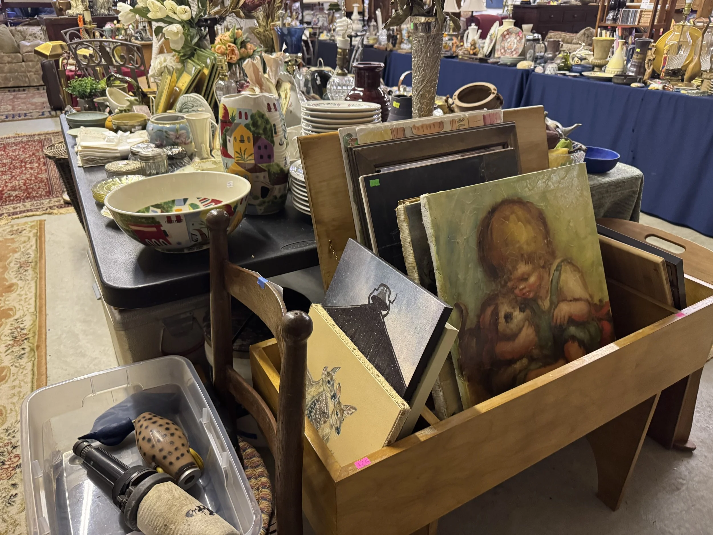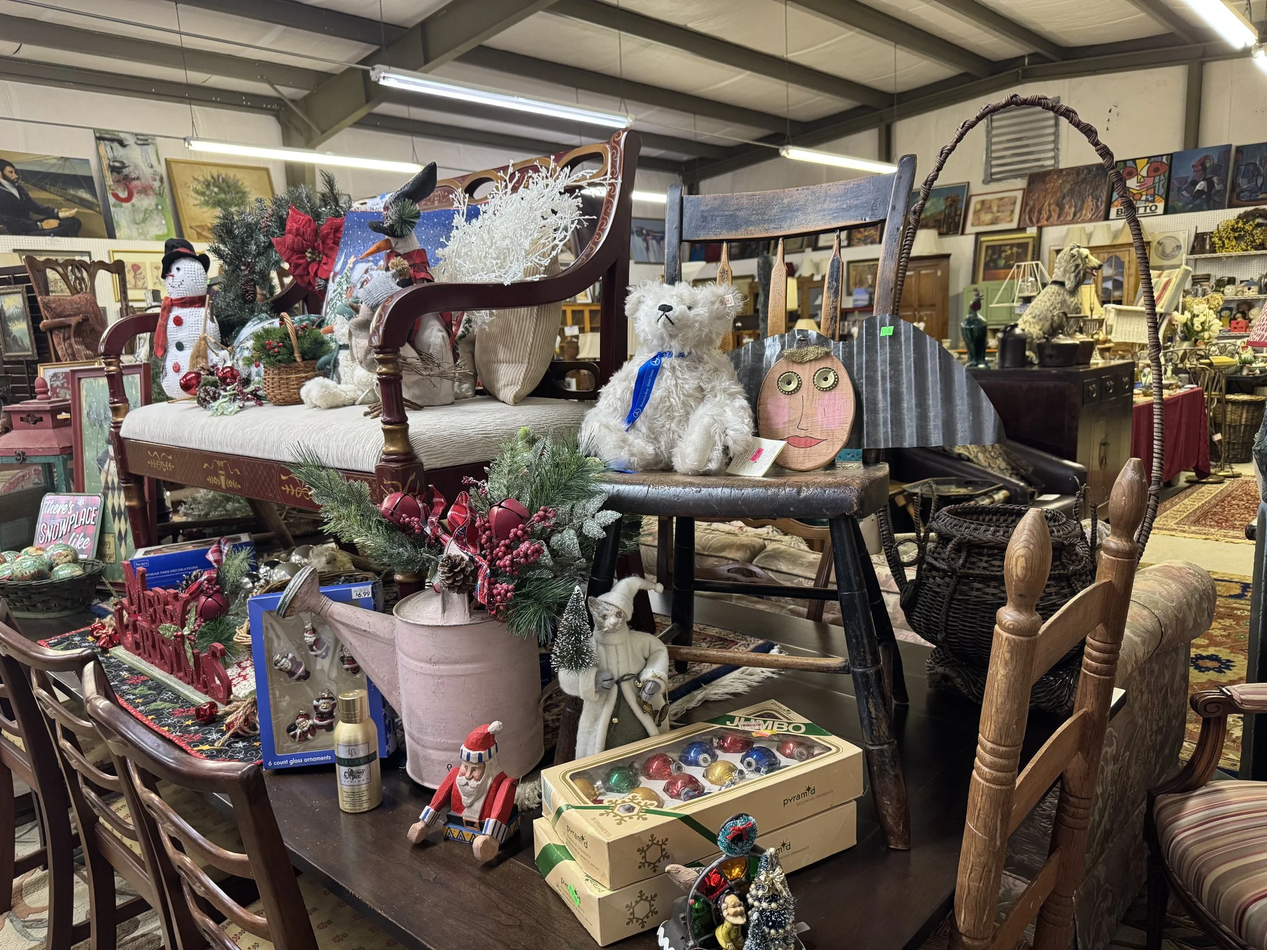 Rob has done it again....He has filled the warehouse with treasures from 6 different estates. Items include furniture, vintage Christmas decor, duck decoys, books, stemware, china and more.