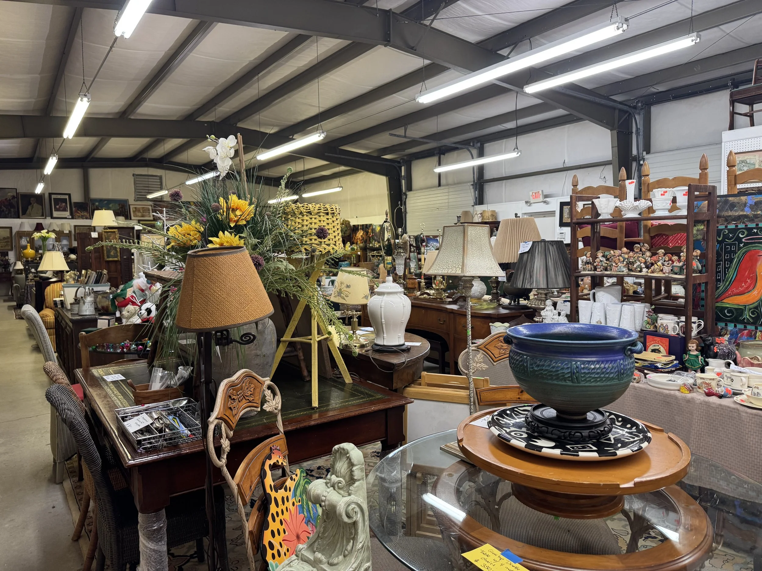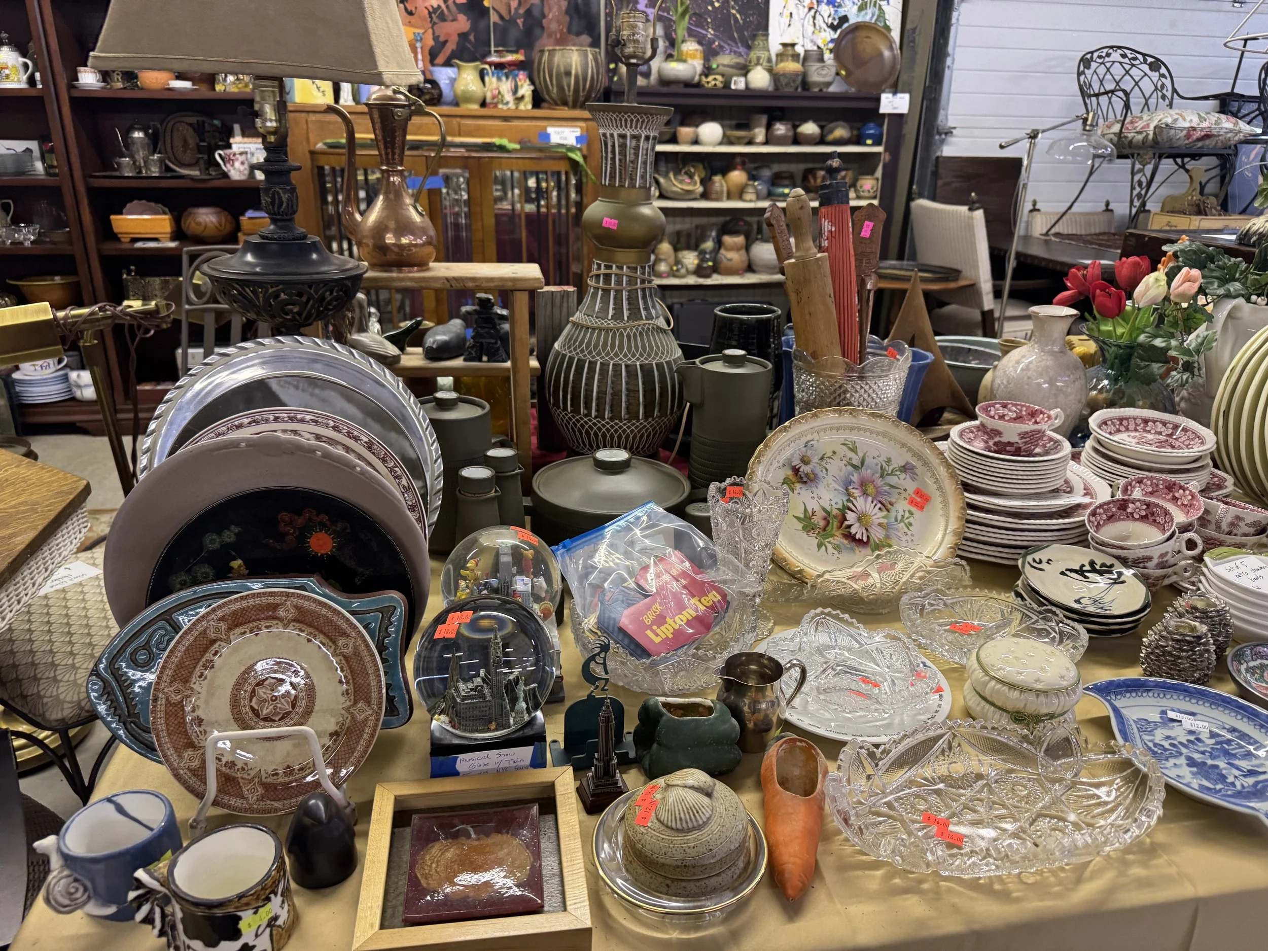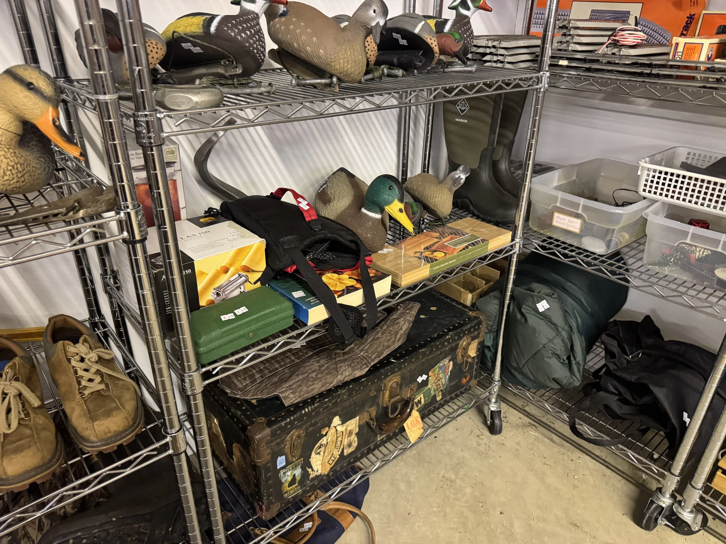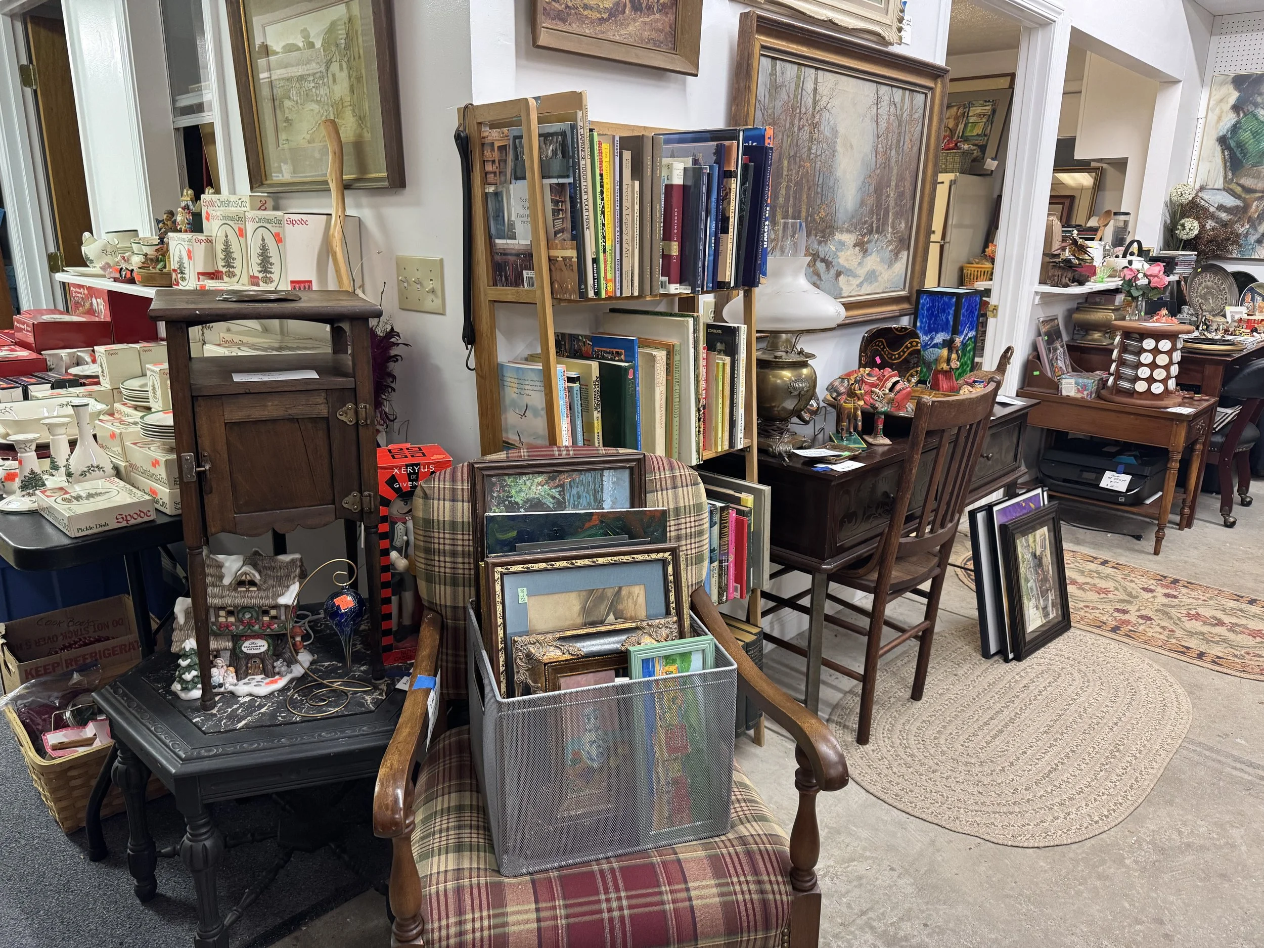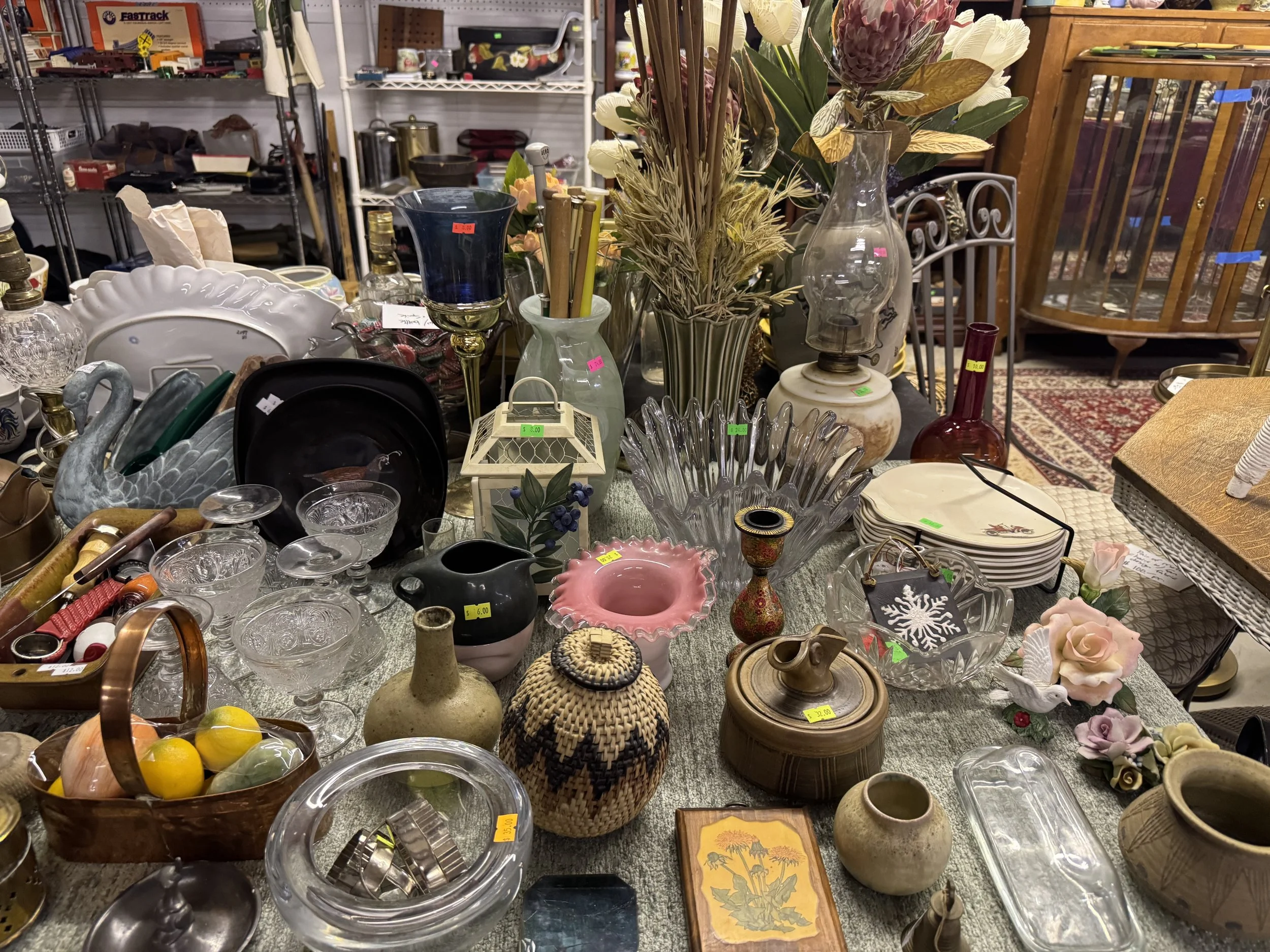 Rob has done it again....He has filled the warehouse with treasures from 6 different estates. Items include furniture, vintage Christmas decor, duck decoys, books, stemware, china and more.