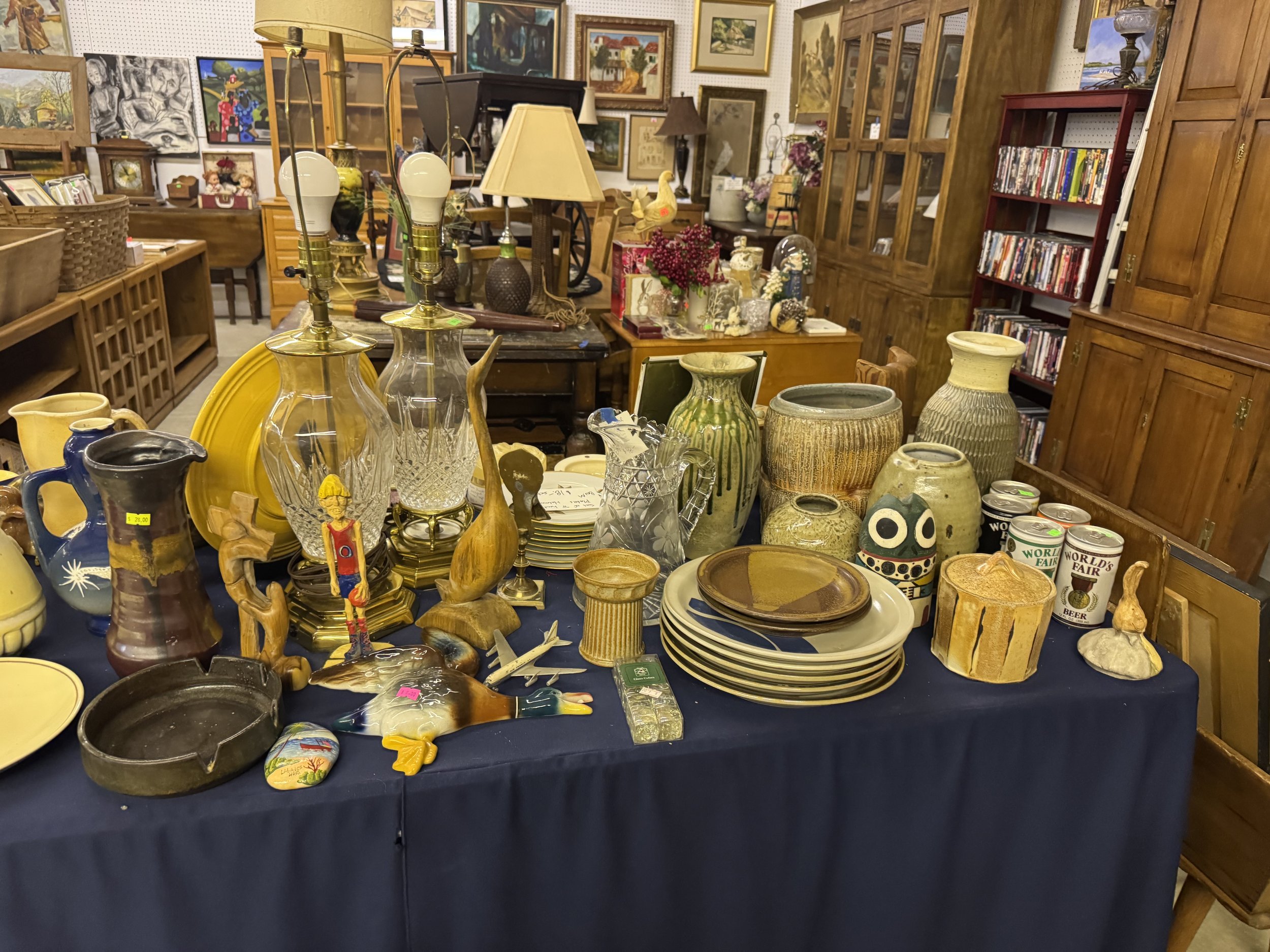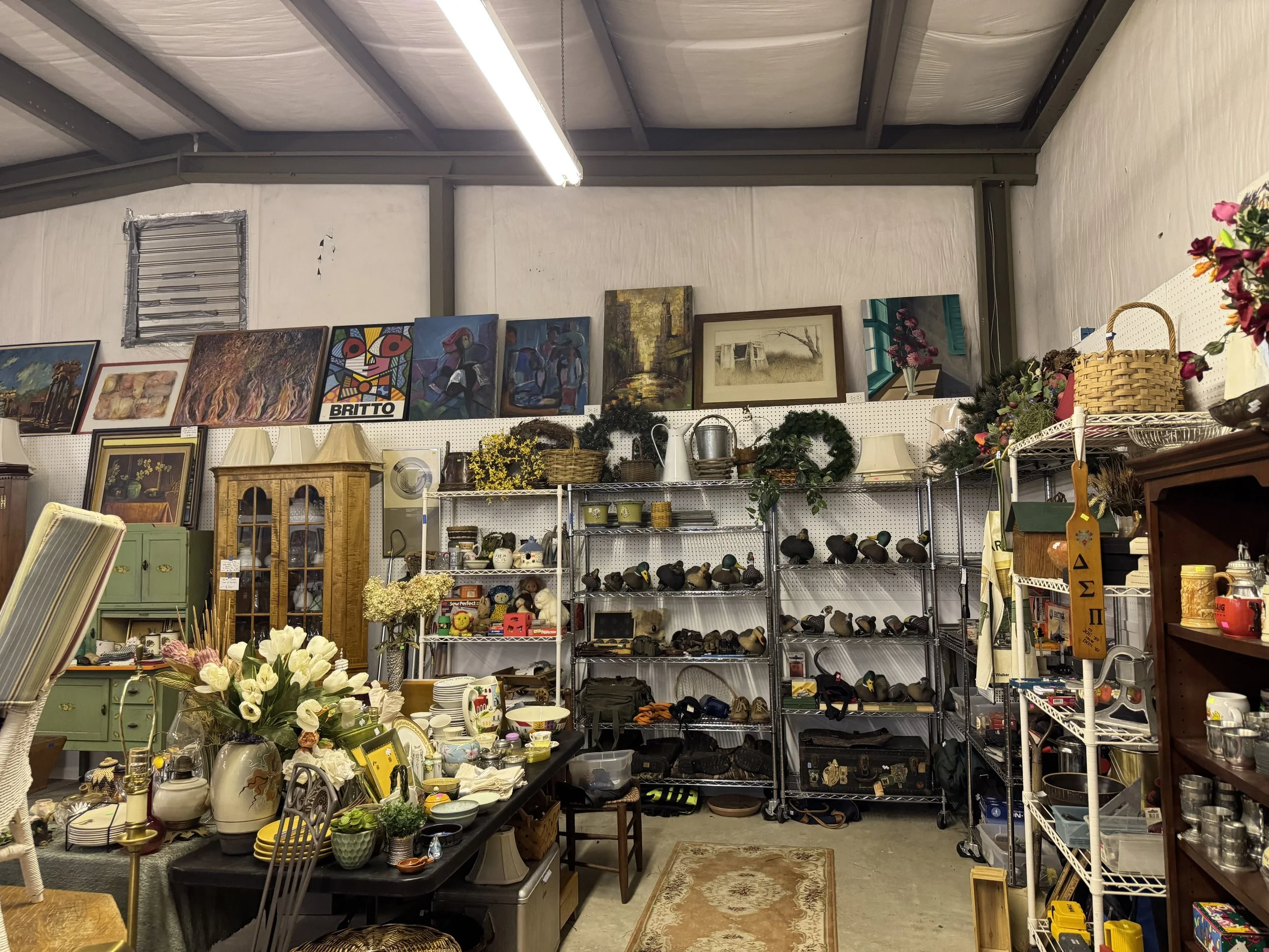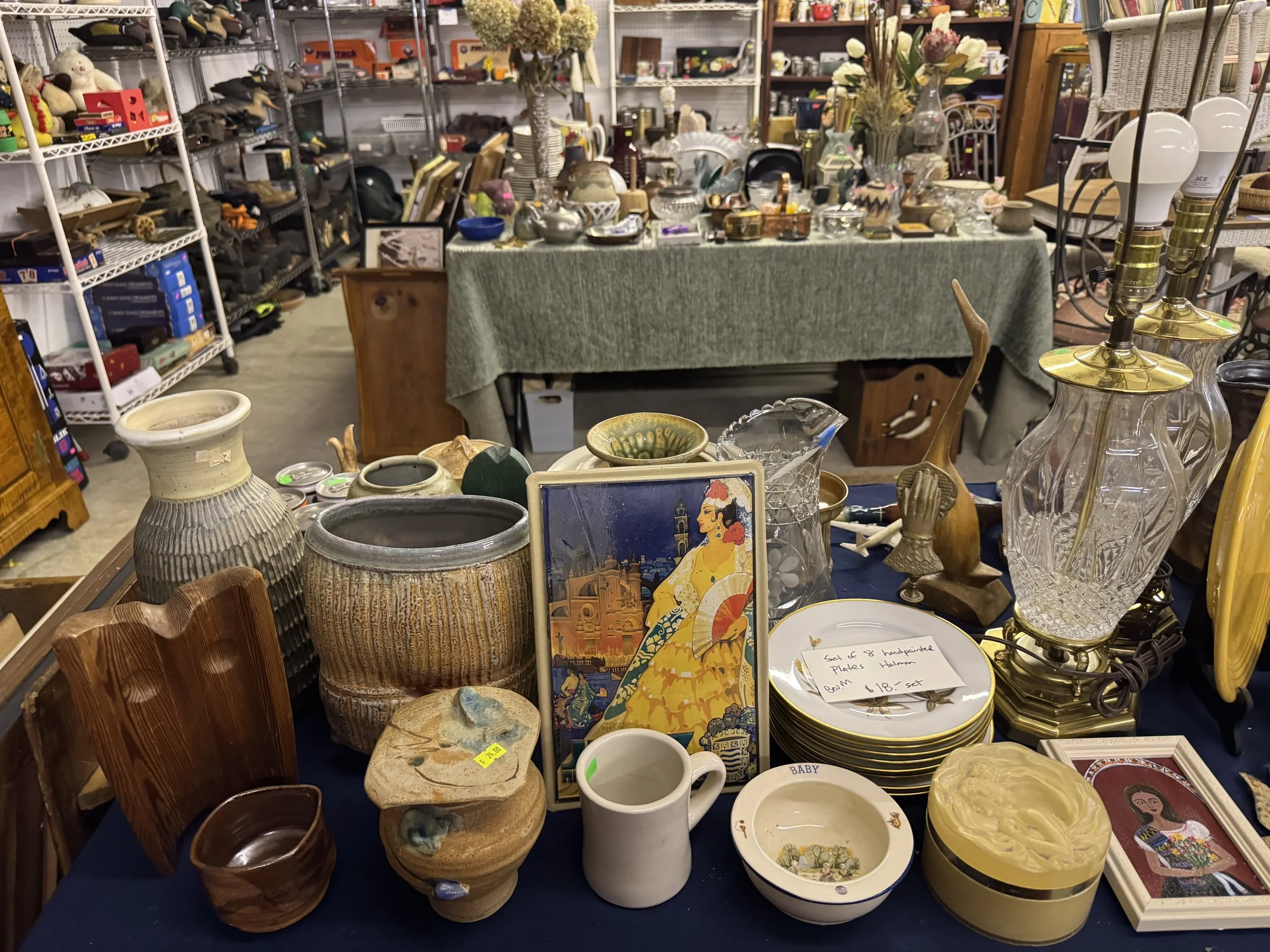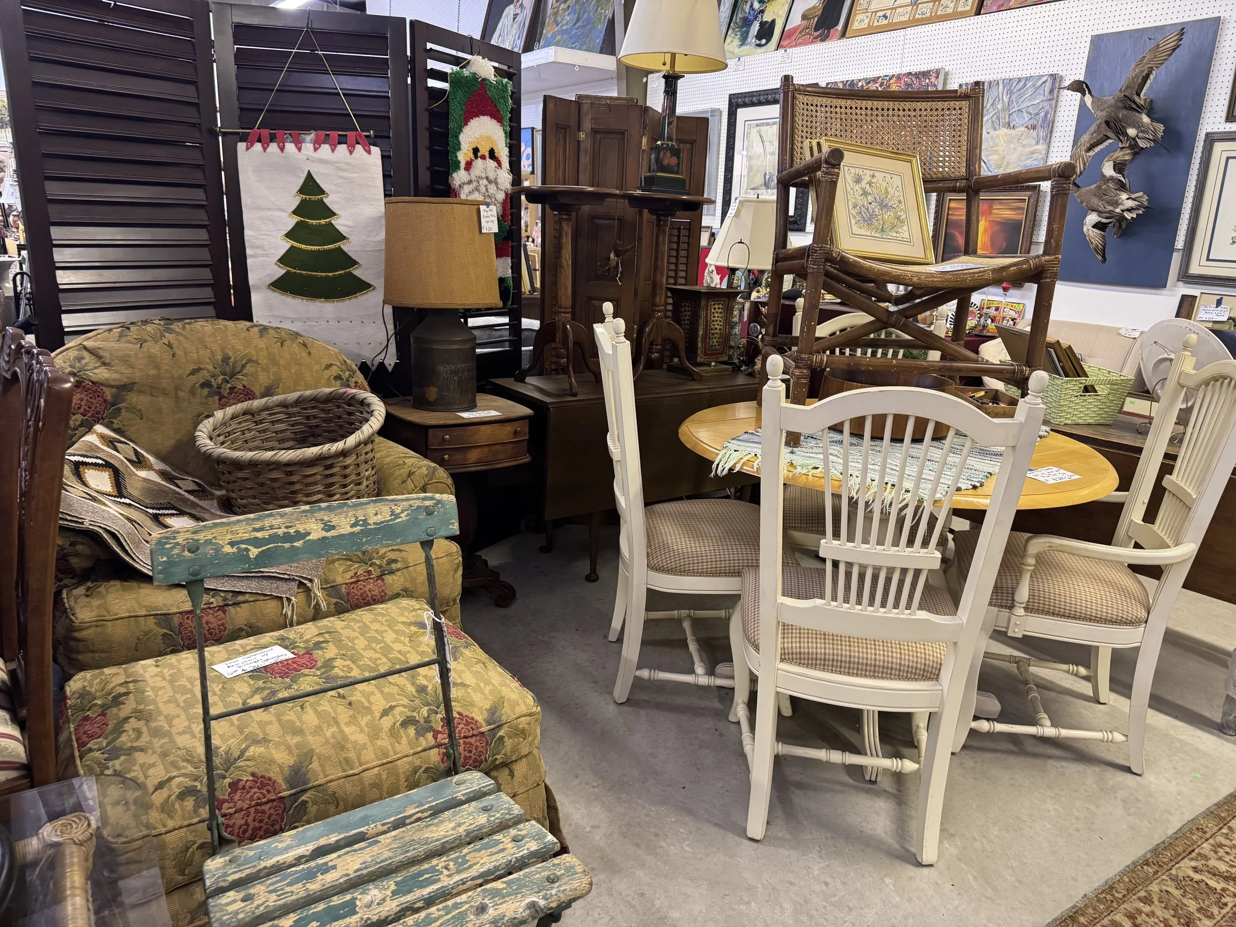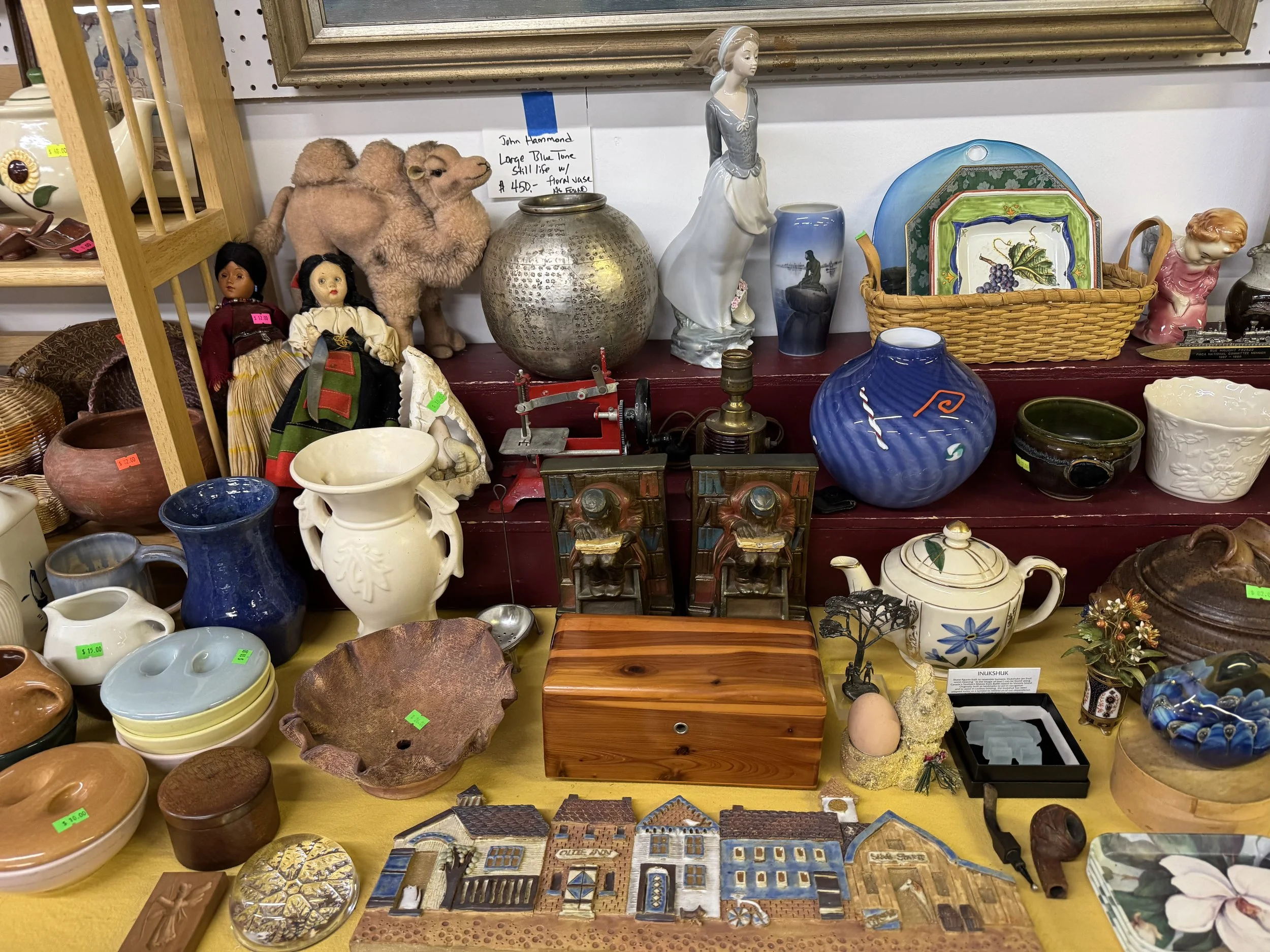 Rob has done it again....He has filled the warehouse with treasures from 6 different estates. Items include furniture, vintage Christmas decor, duck decoys, books, stemware, china and more.