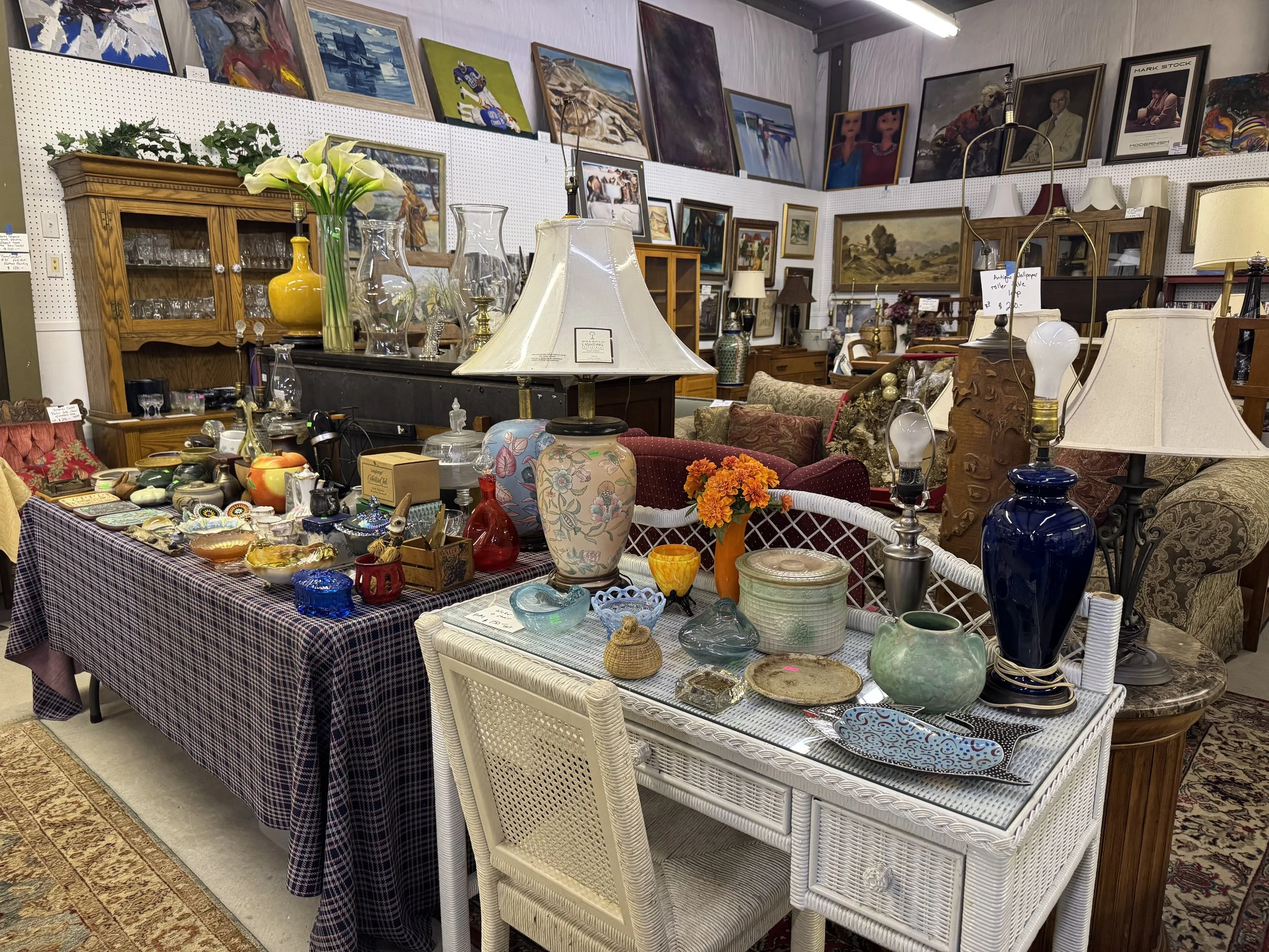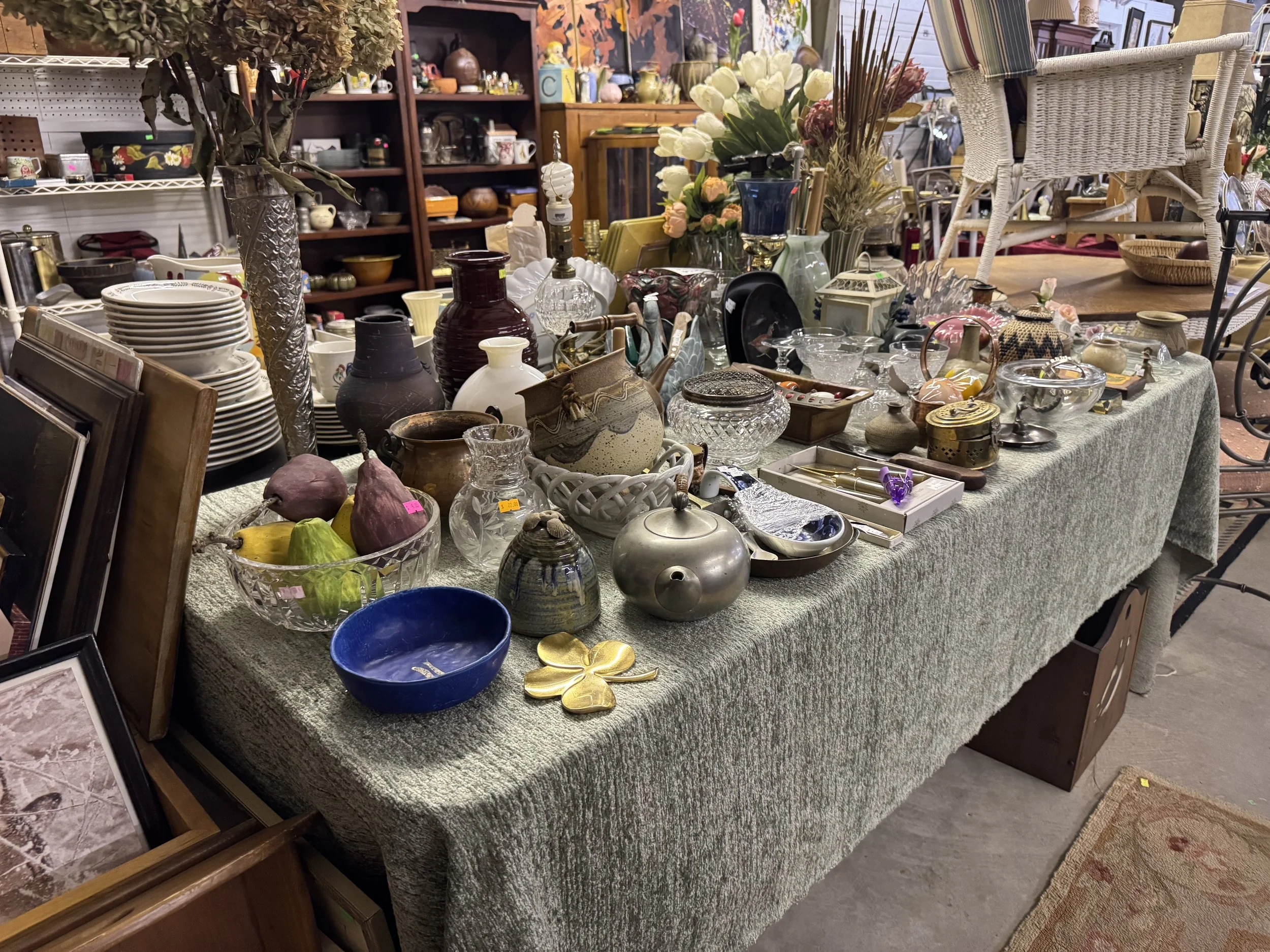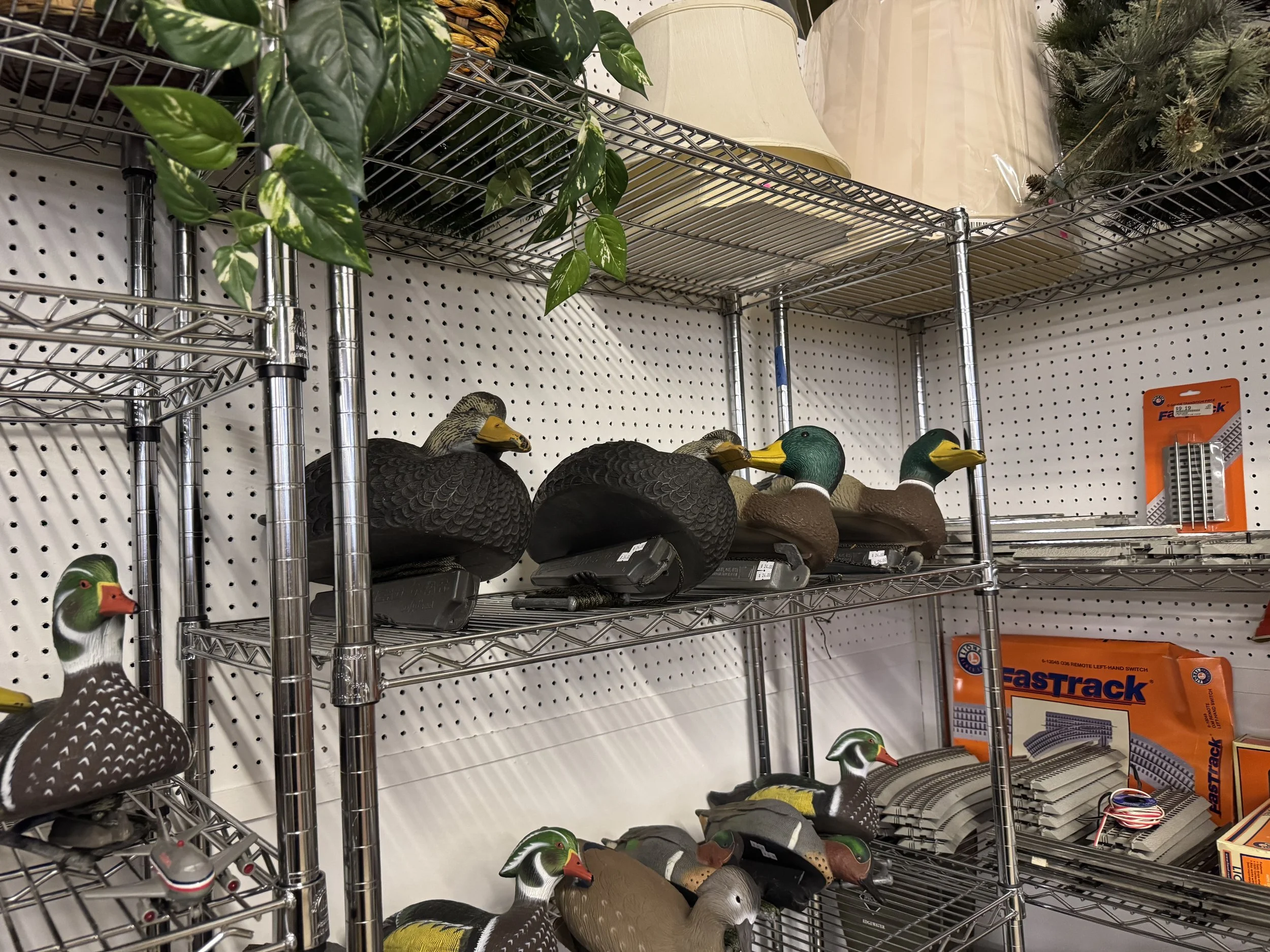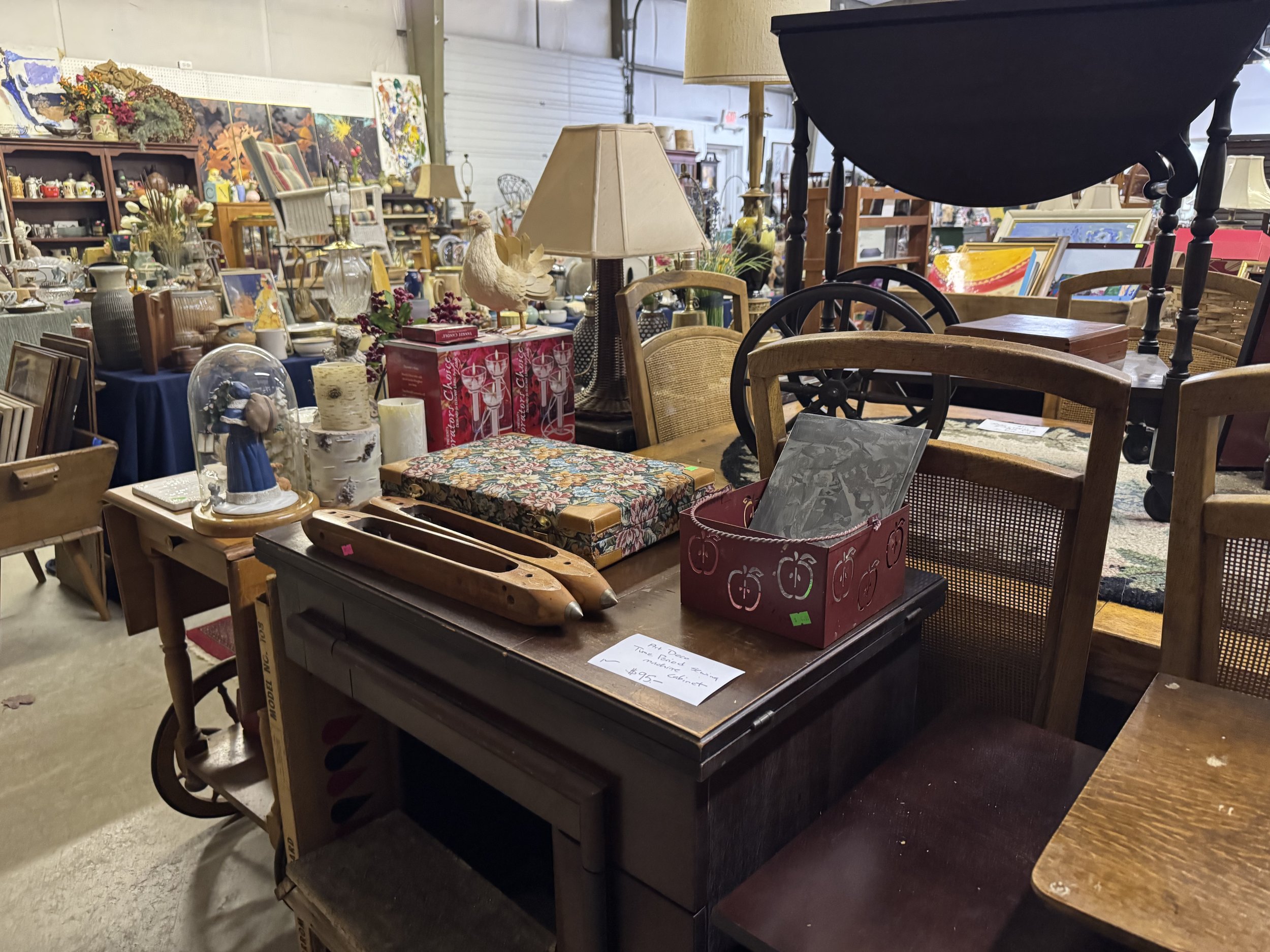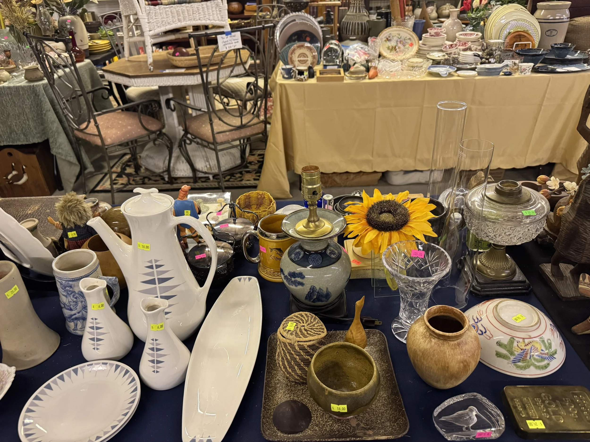 Rob has done it again....He has filled the warehouse with treasures from 6 different estates. Items include furniture, vintage Christmas decor, duck decoys, books, stemware, china and more.
