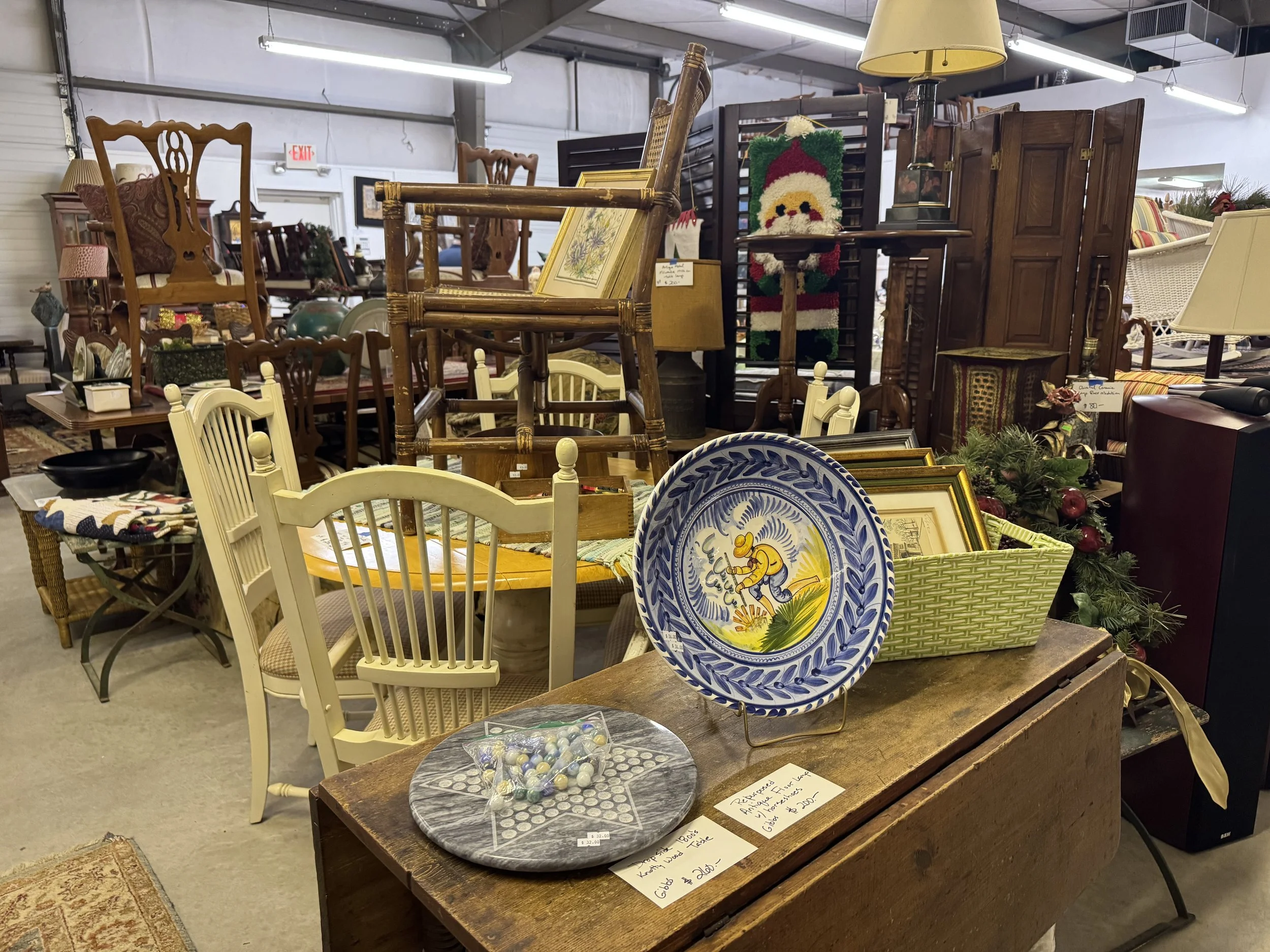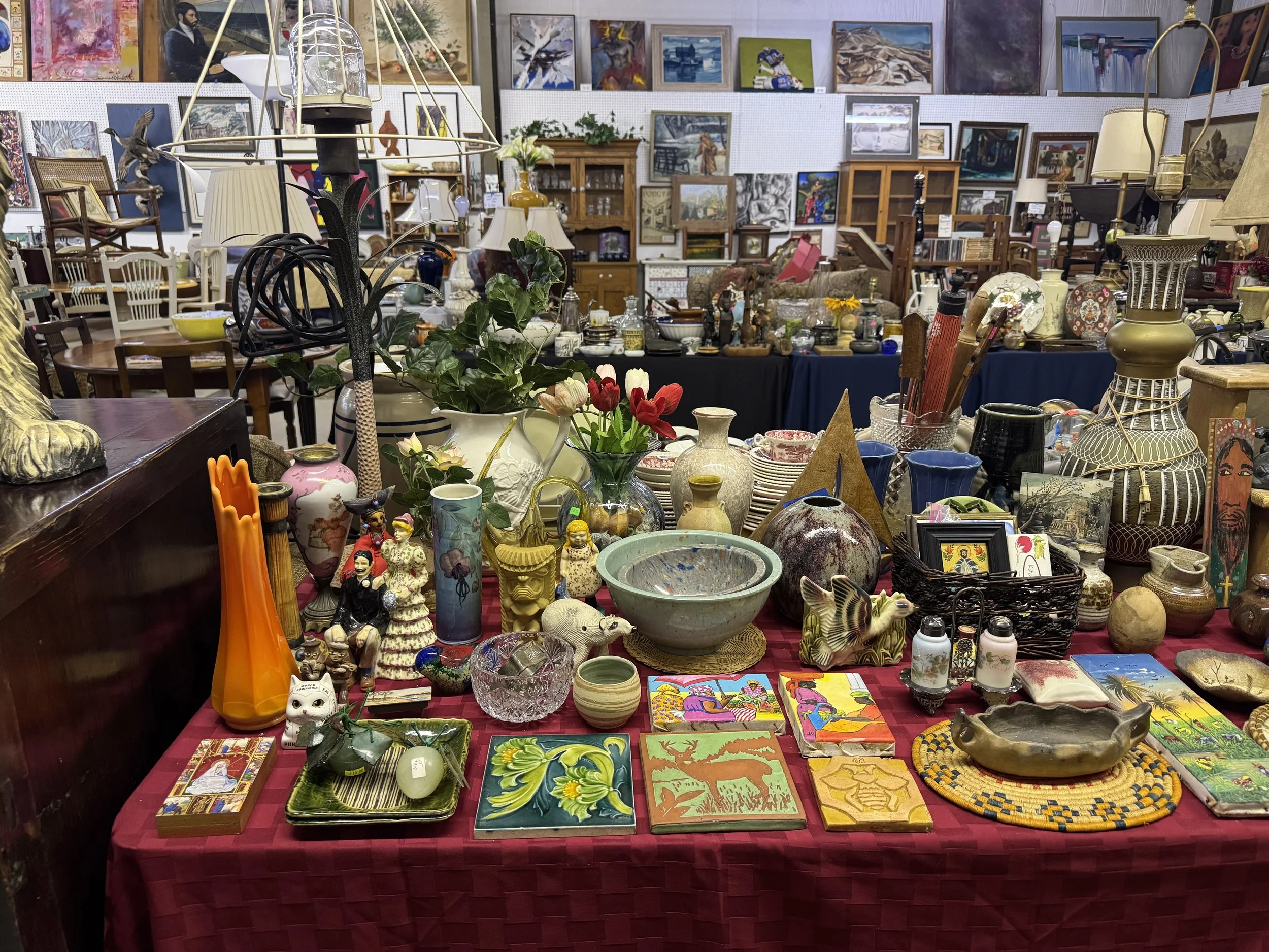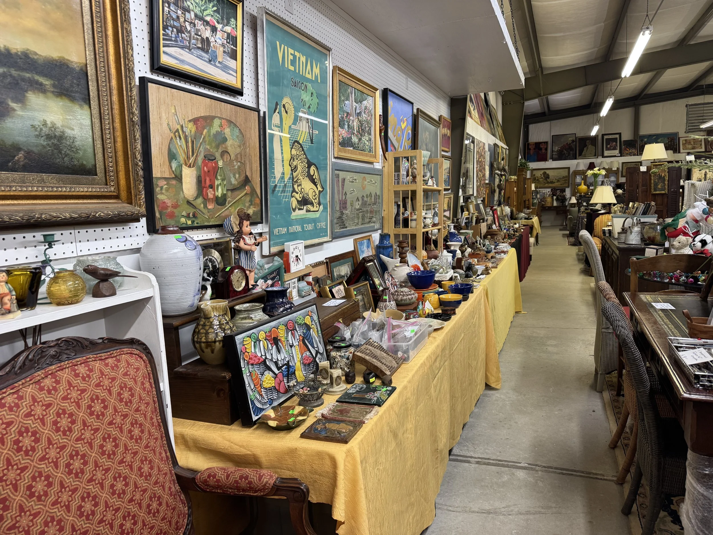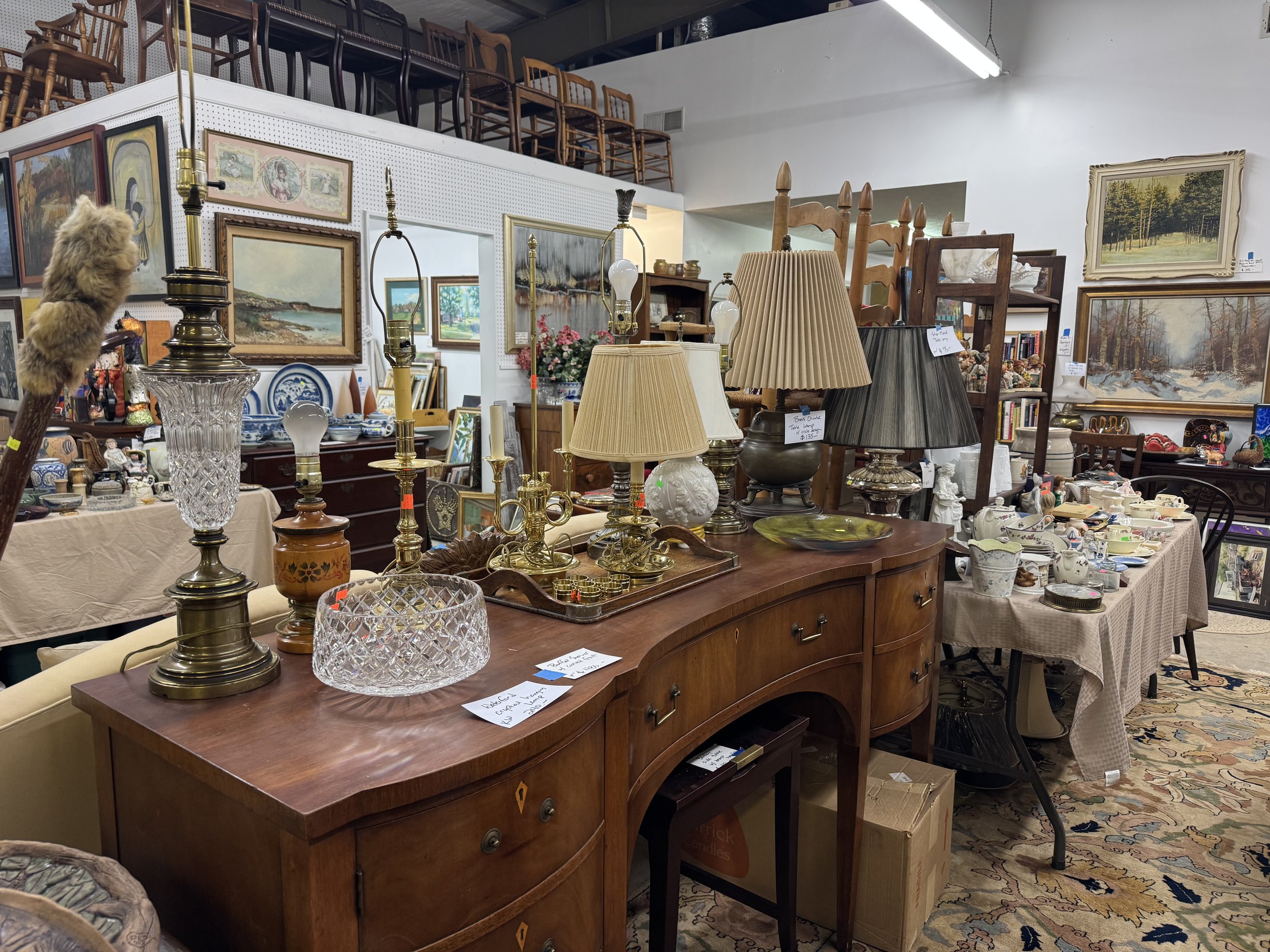 Rob has done it again....He has filled the warehouse with treasures from 6 different estates. Items include furniture, vintage Christmas decor, duck decoys, books, stemware, china and more.