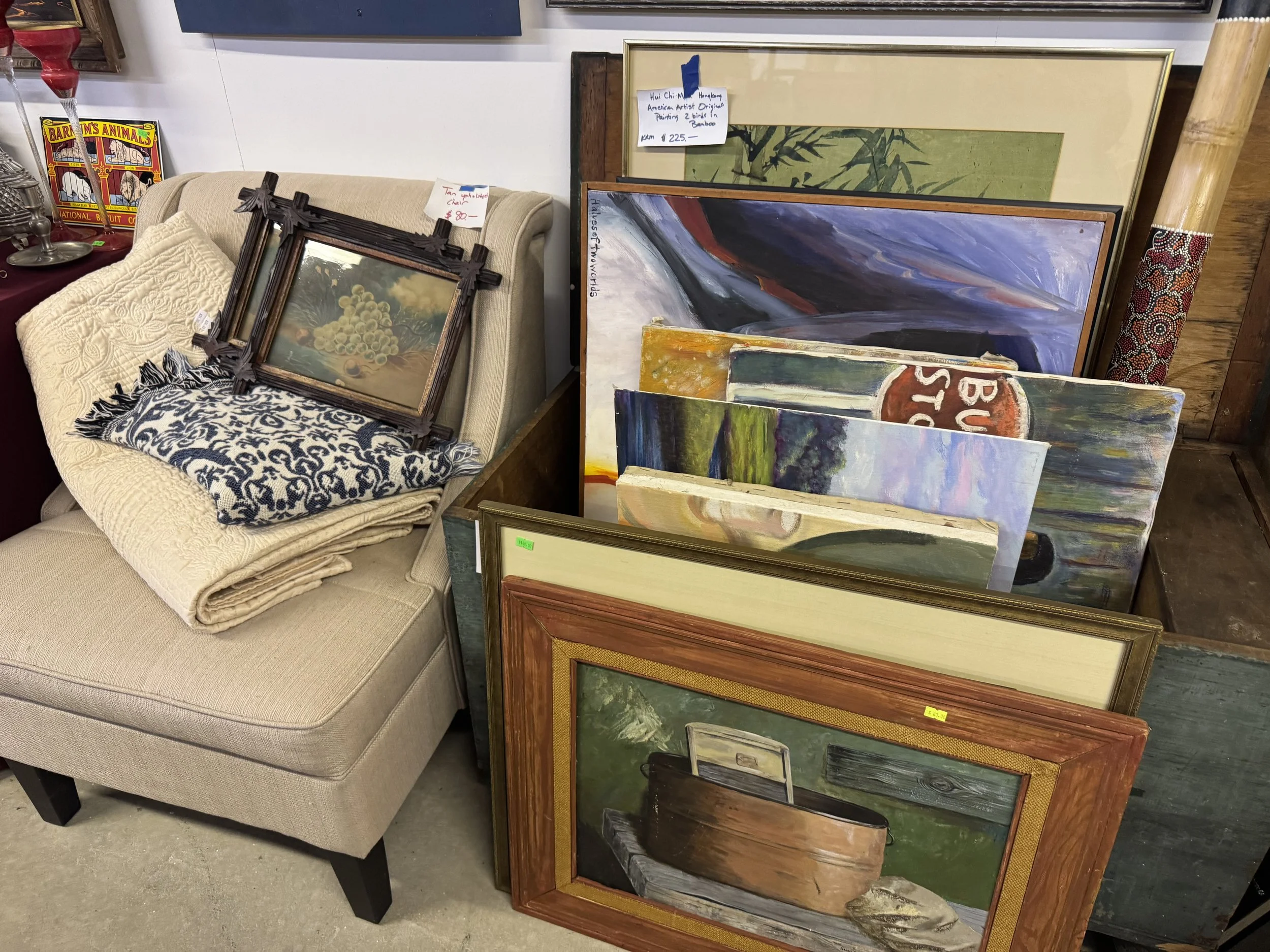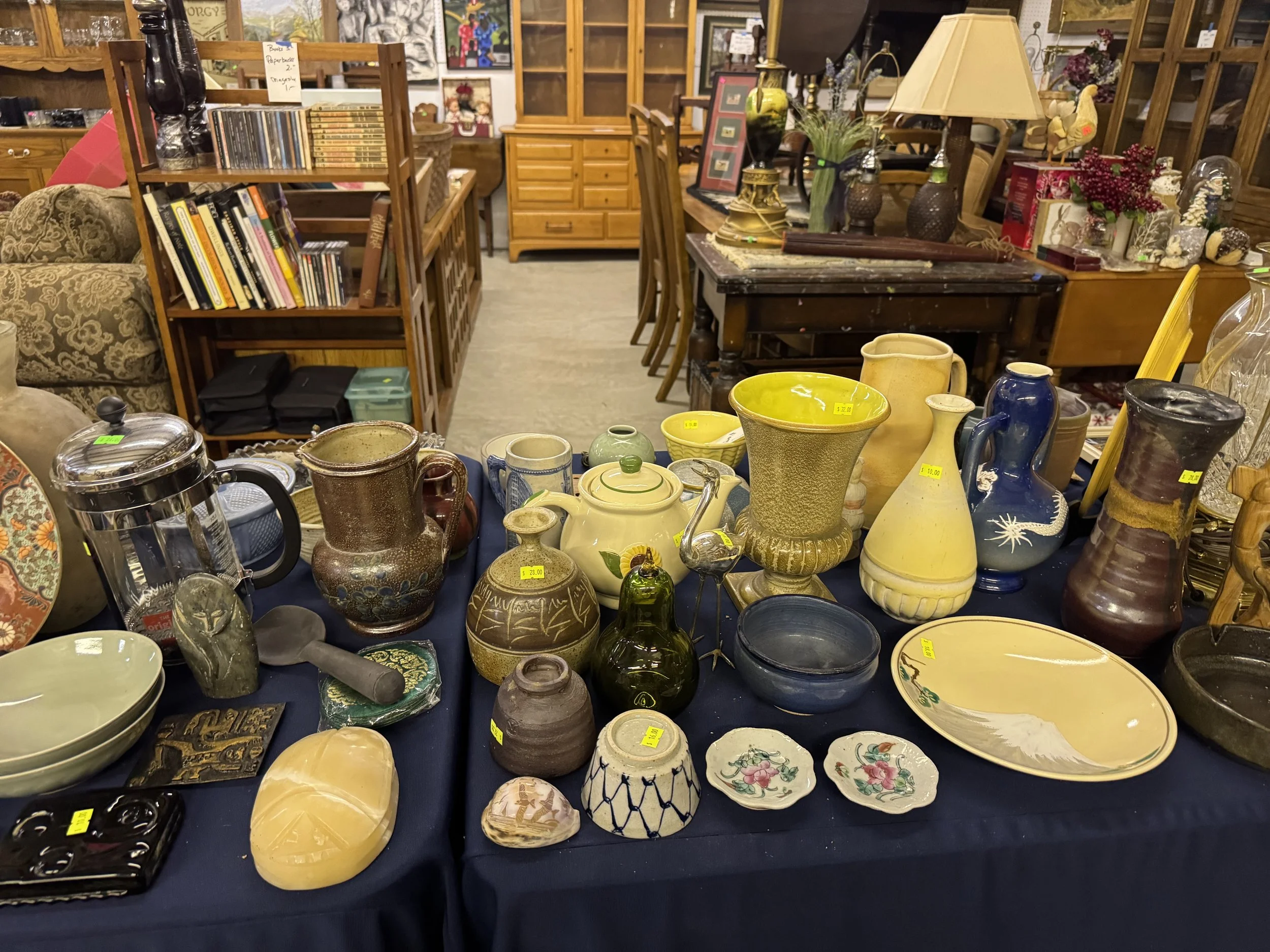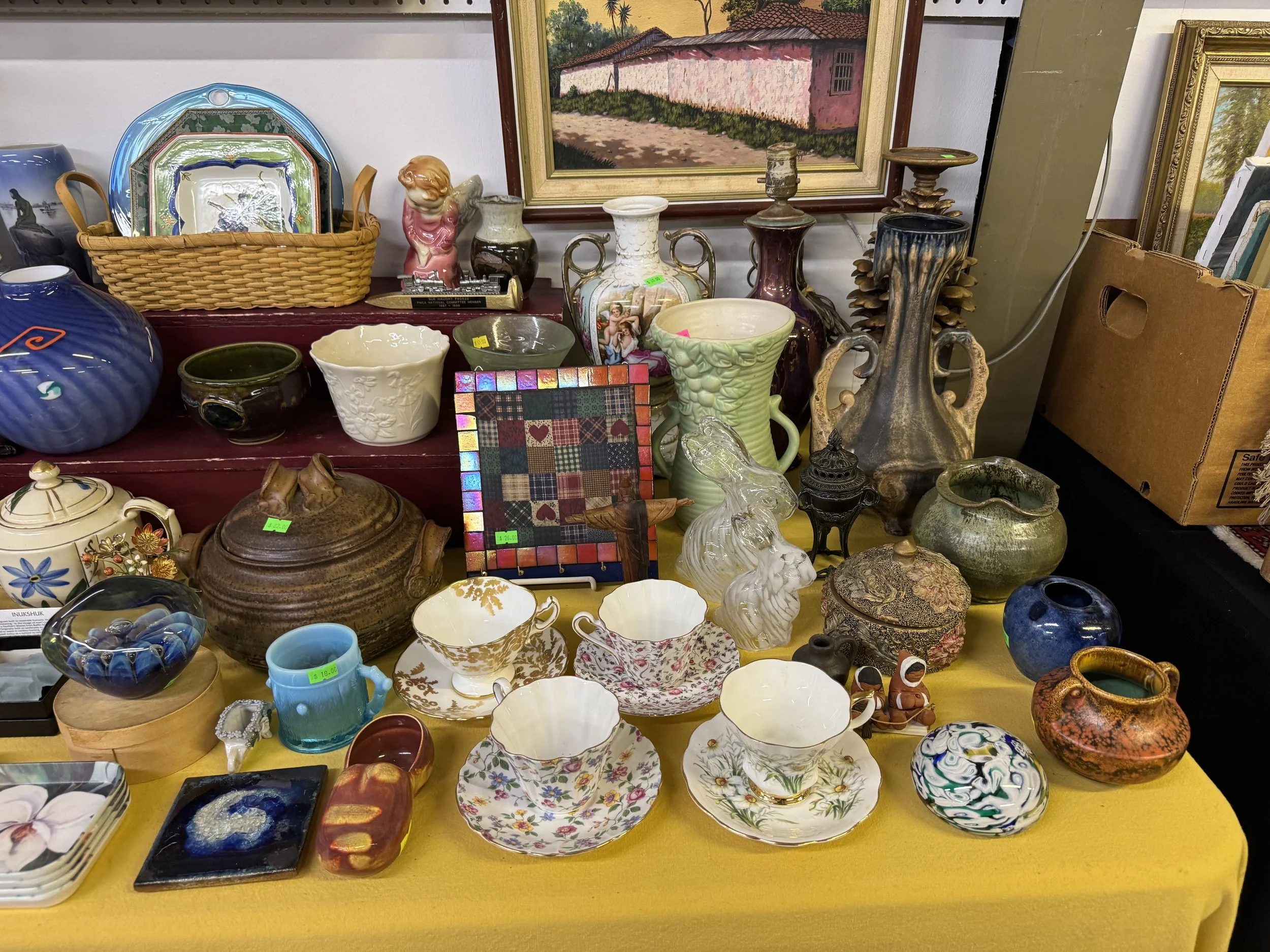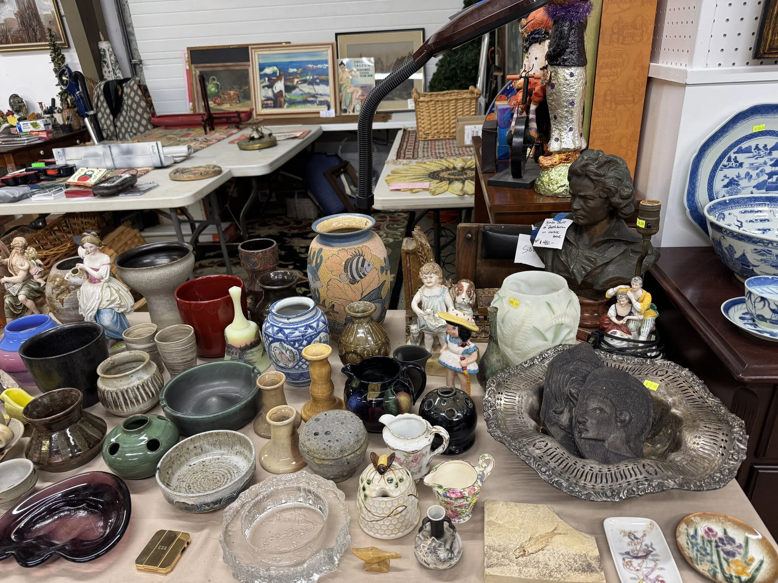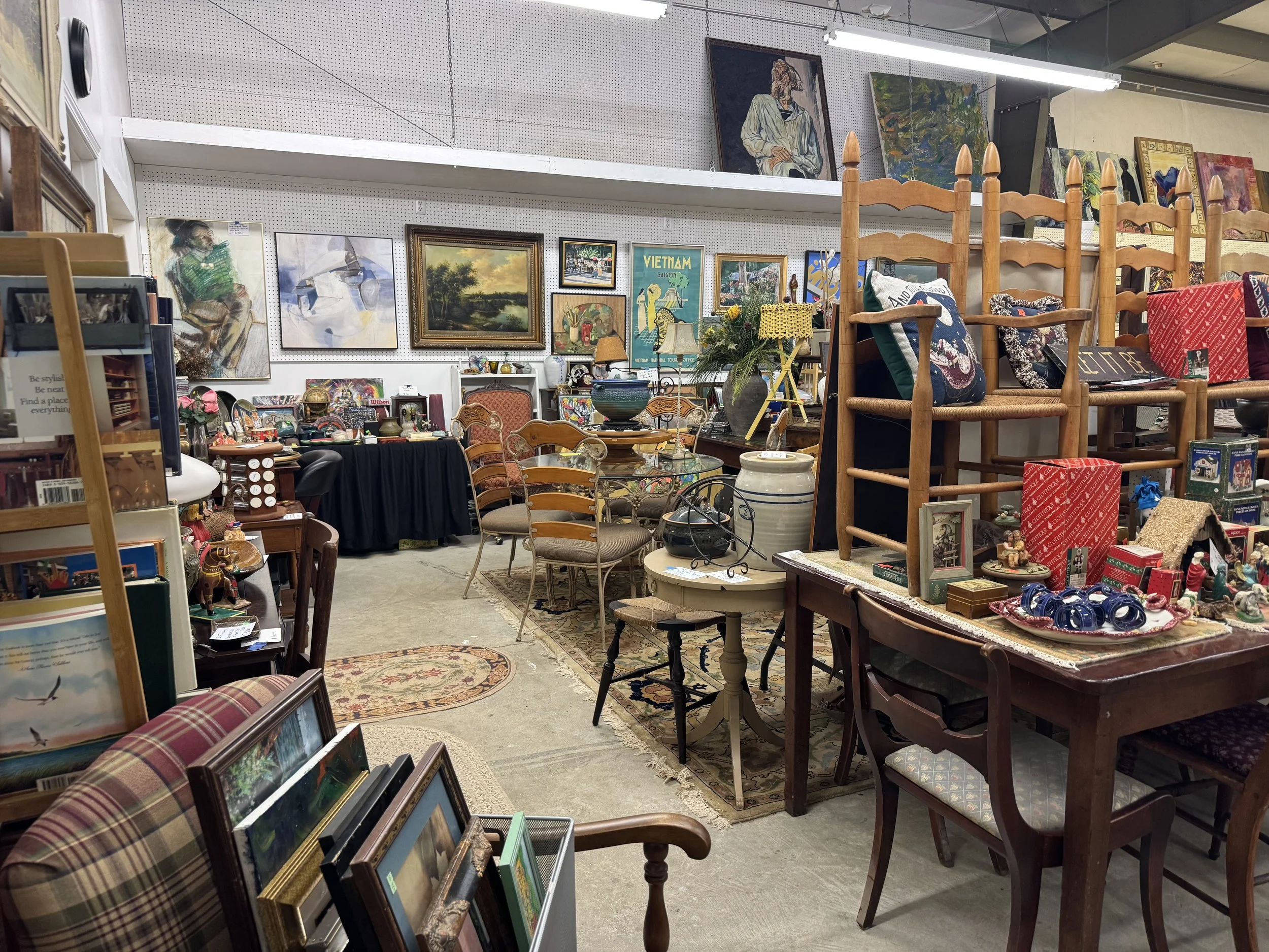 Rob has done it again....He has filled the warehouse with treasures from 6 different estates. Items include furniture, vintage Christmas decor, duck decoys, books, stemware, china and more.