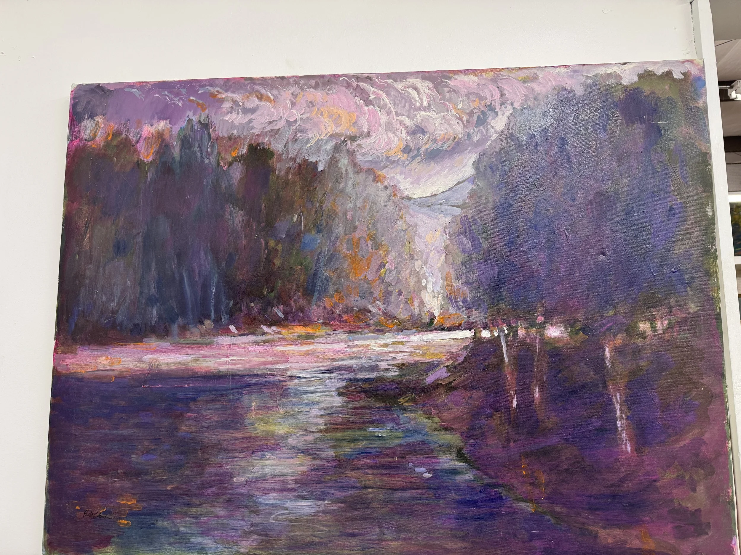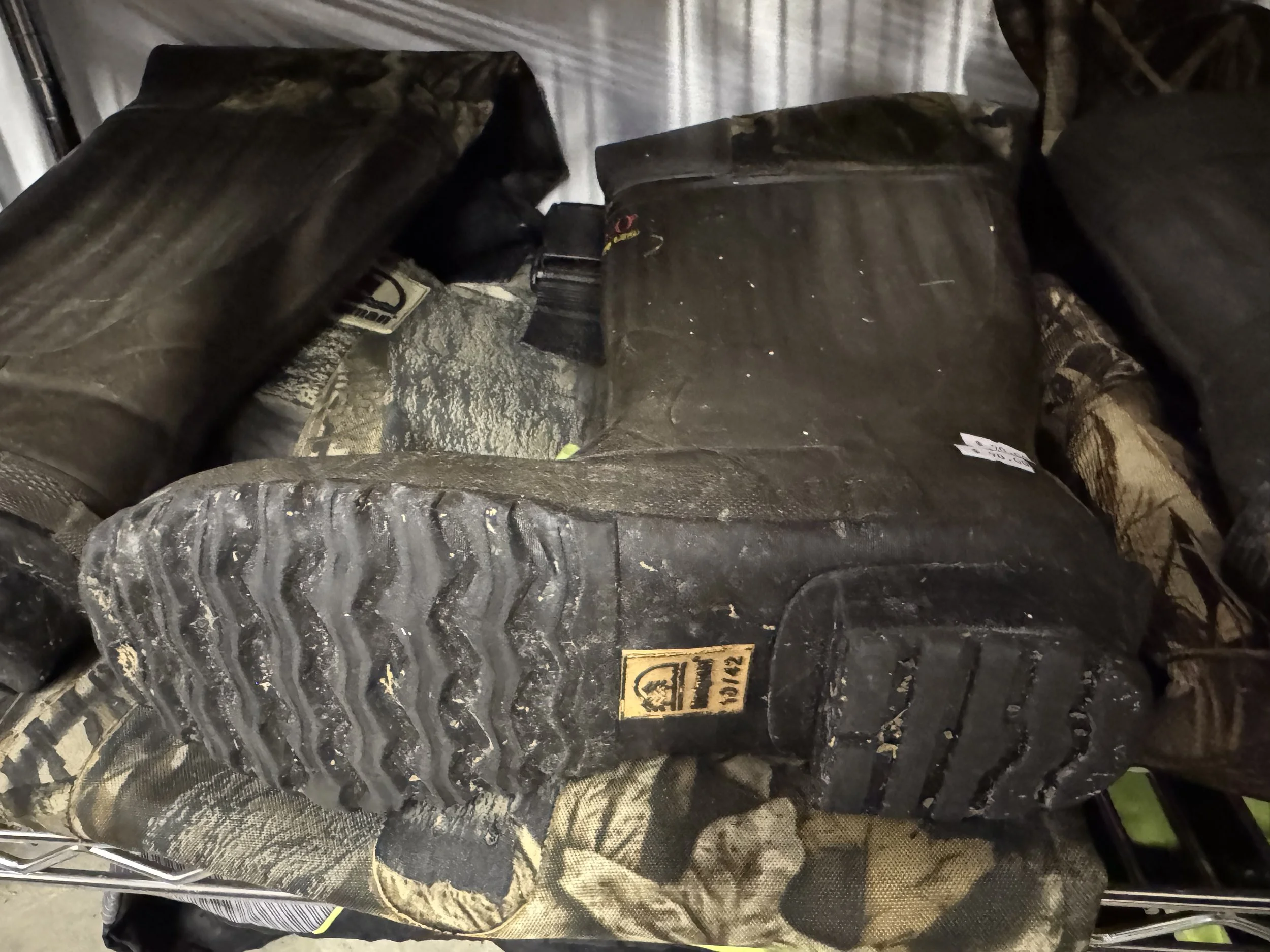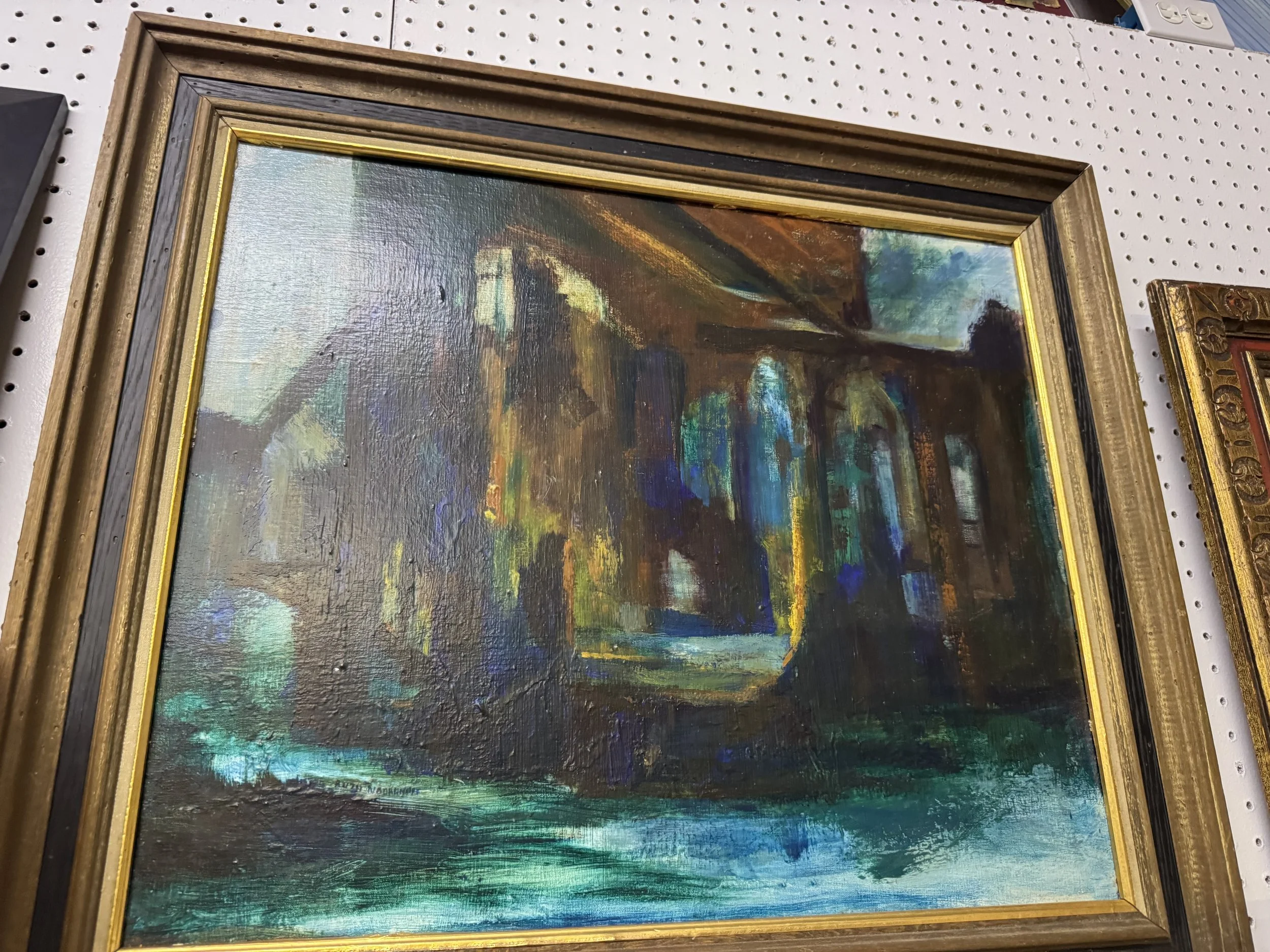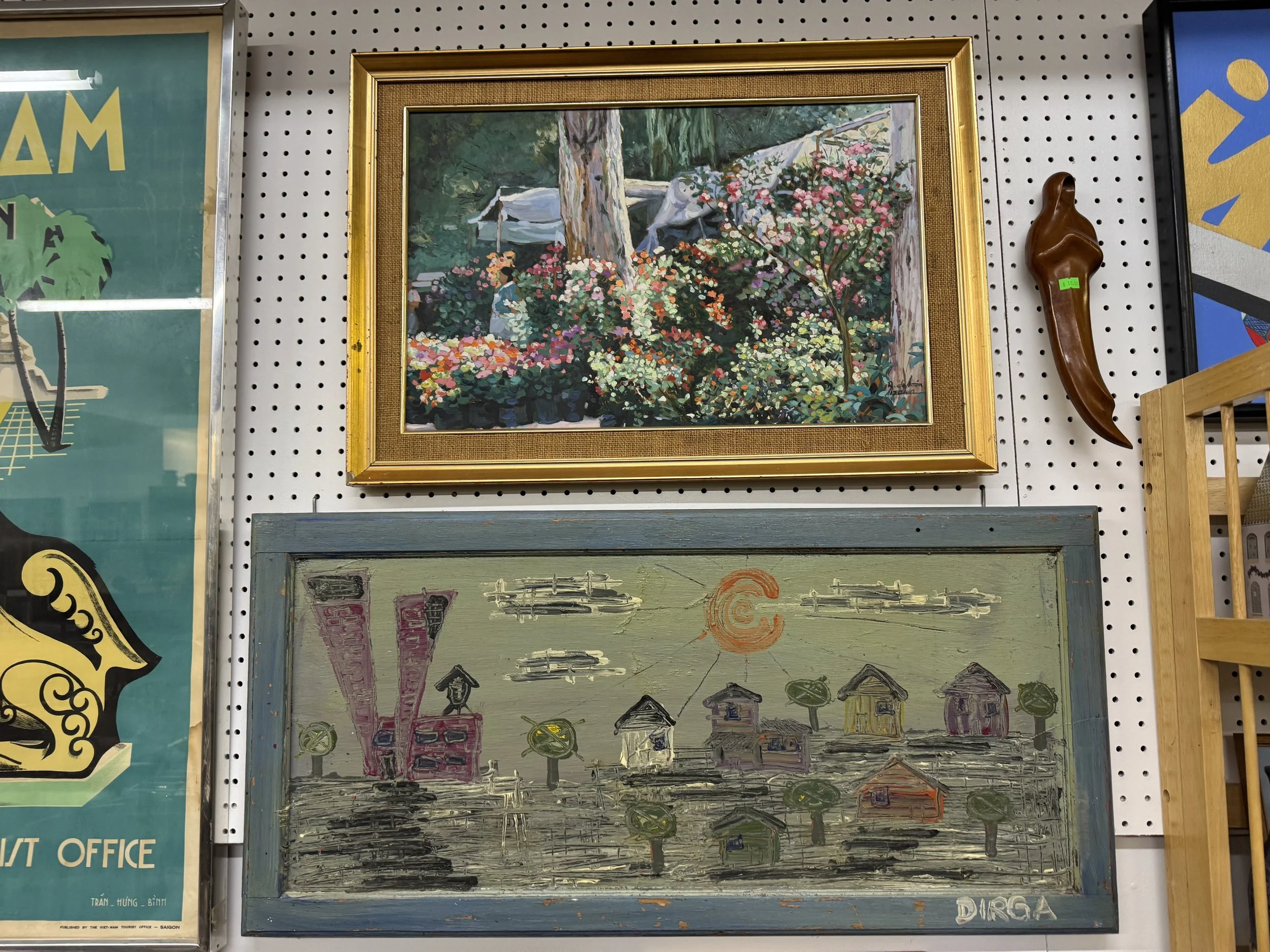 Misc: Original art, many listed artists, quality prints, duck decoys, men's waders, fly fishing poles, outdoor items, decorator items, Christmas items, vintage Christmas items, area rugs, lamps, vases, art pottery, etc