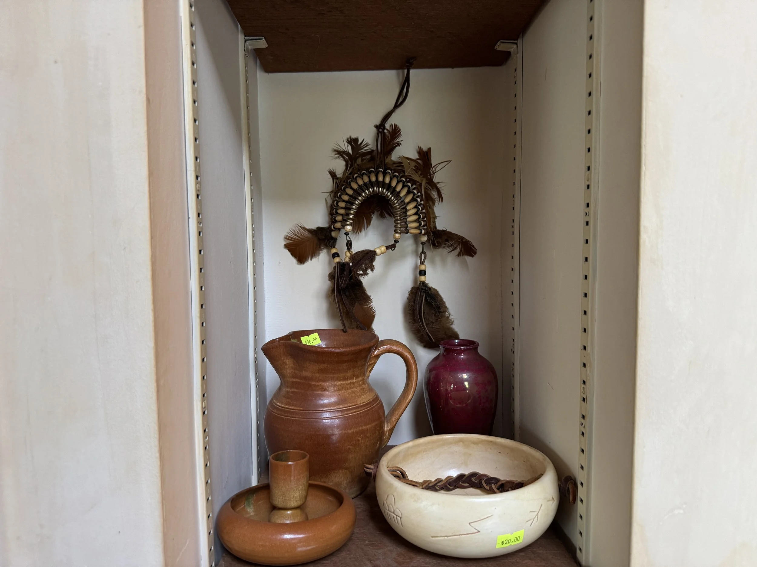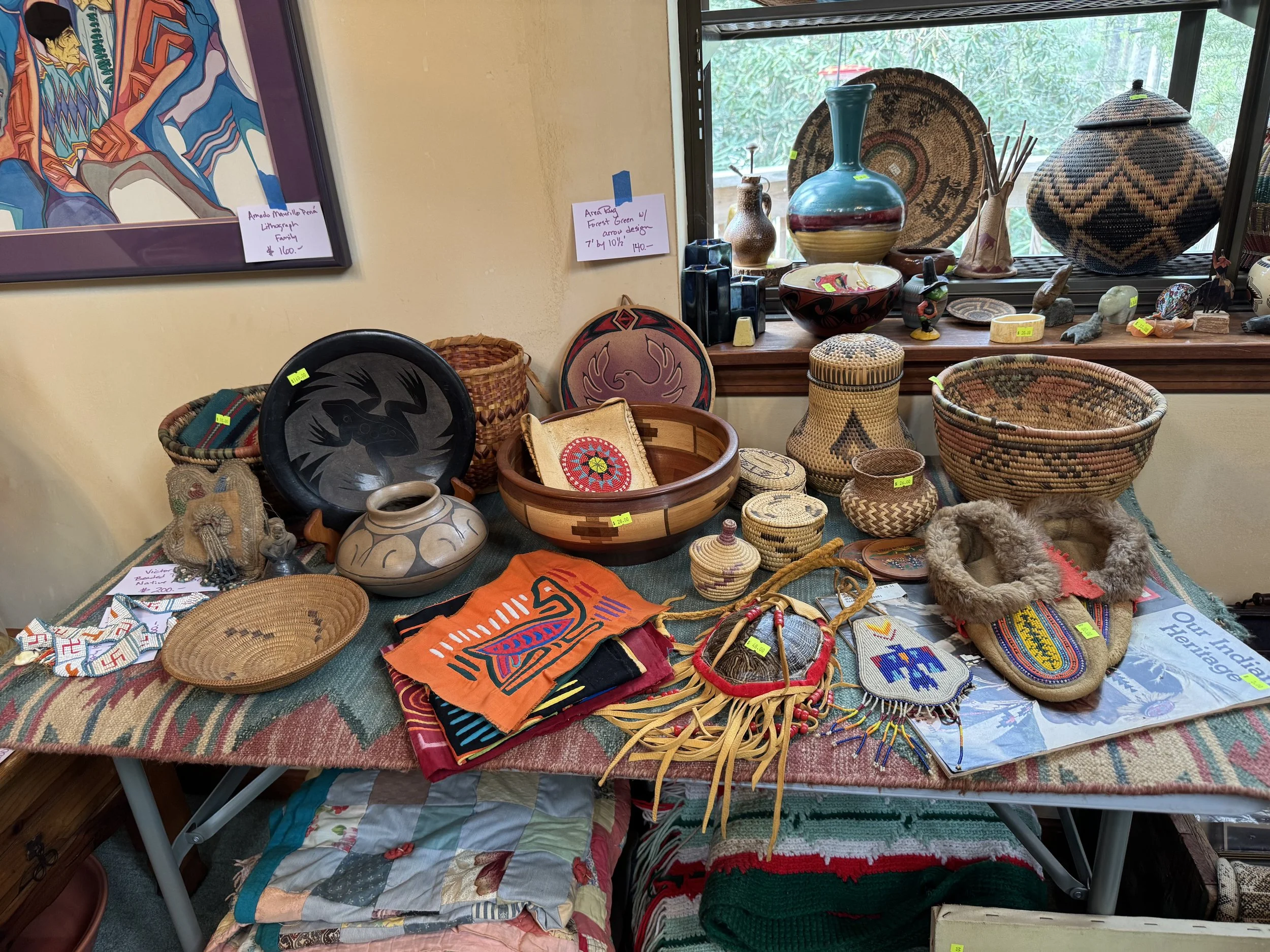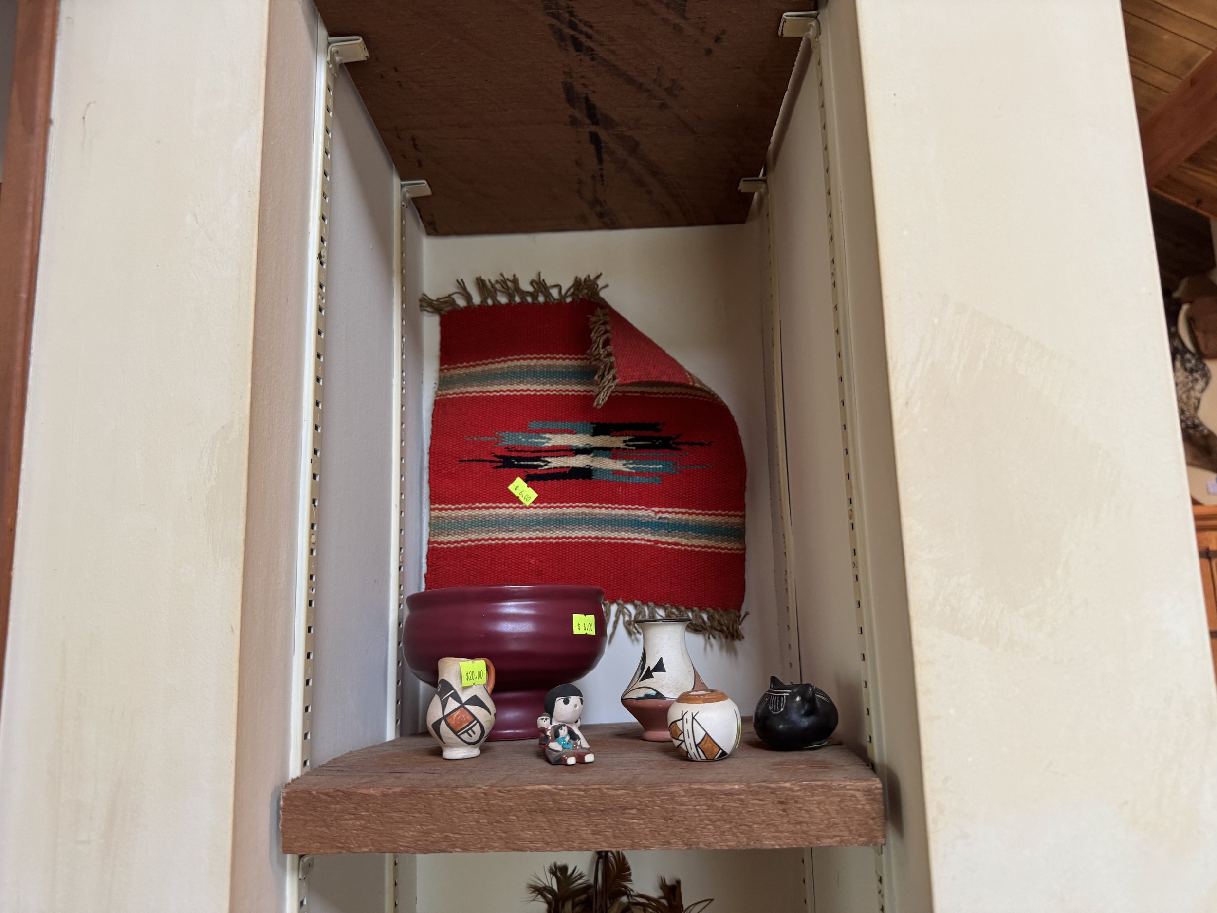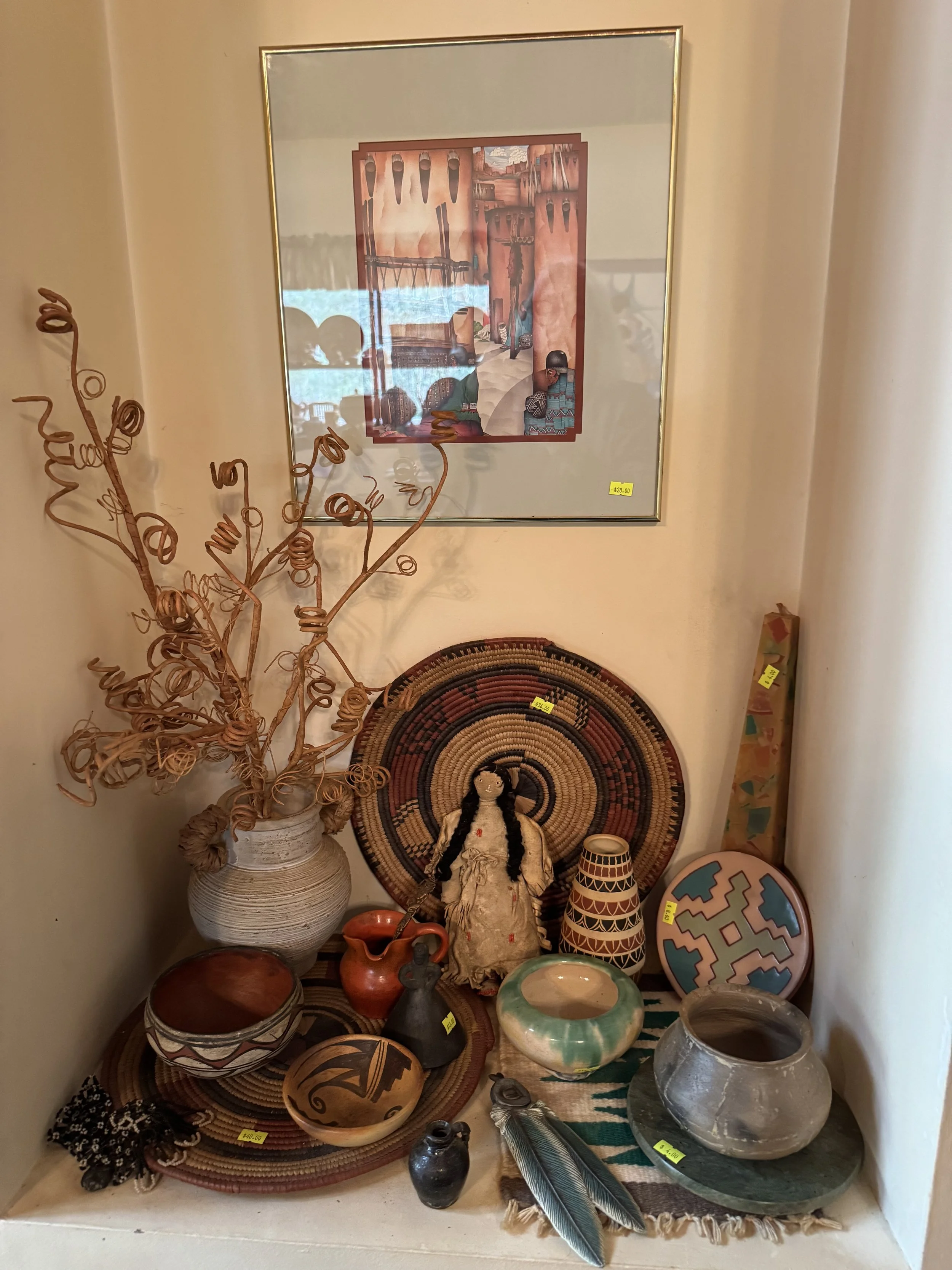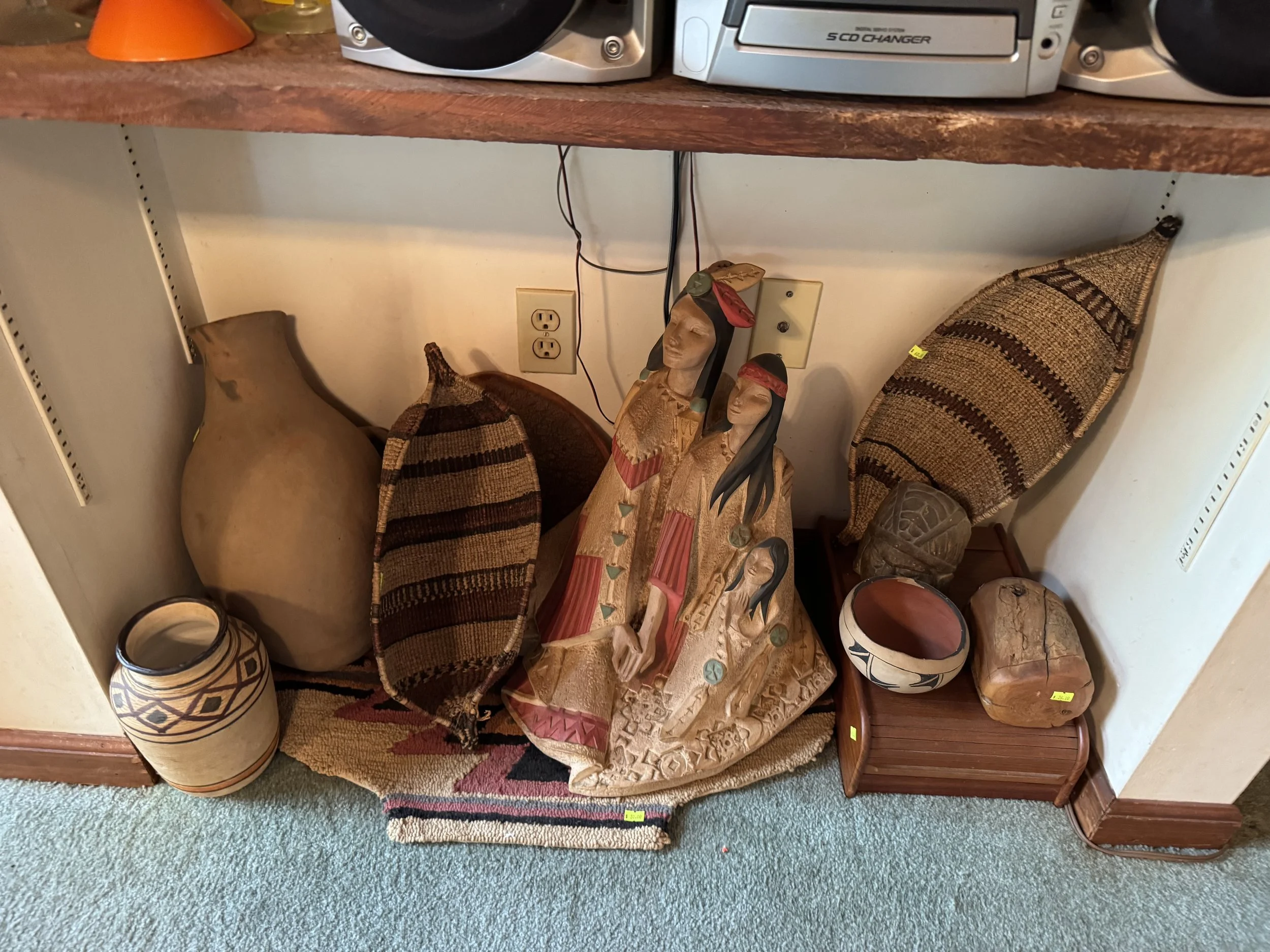 1st Nations Collection: Pottery, original and quality art prints, dolls, some jewelry, figures, skins, fetishes, baskets, rugs, wall art, etc