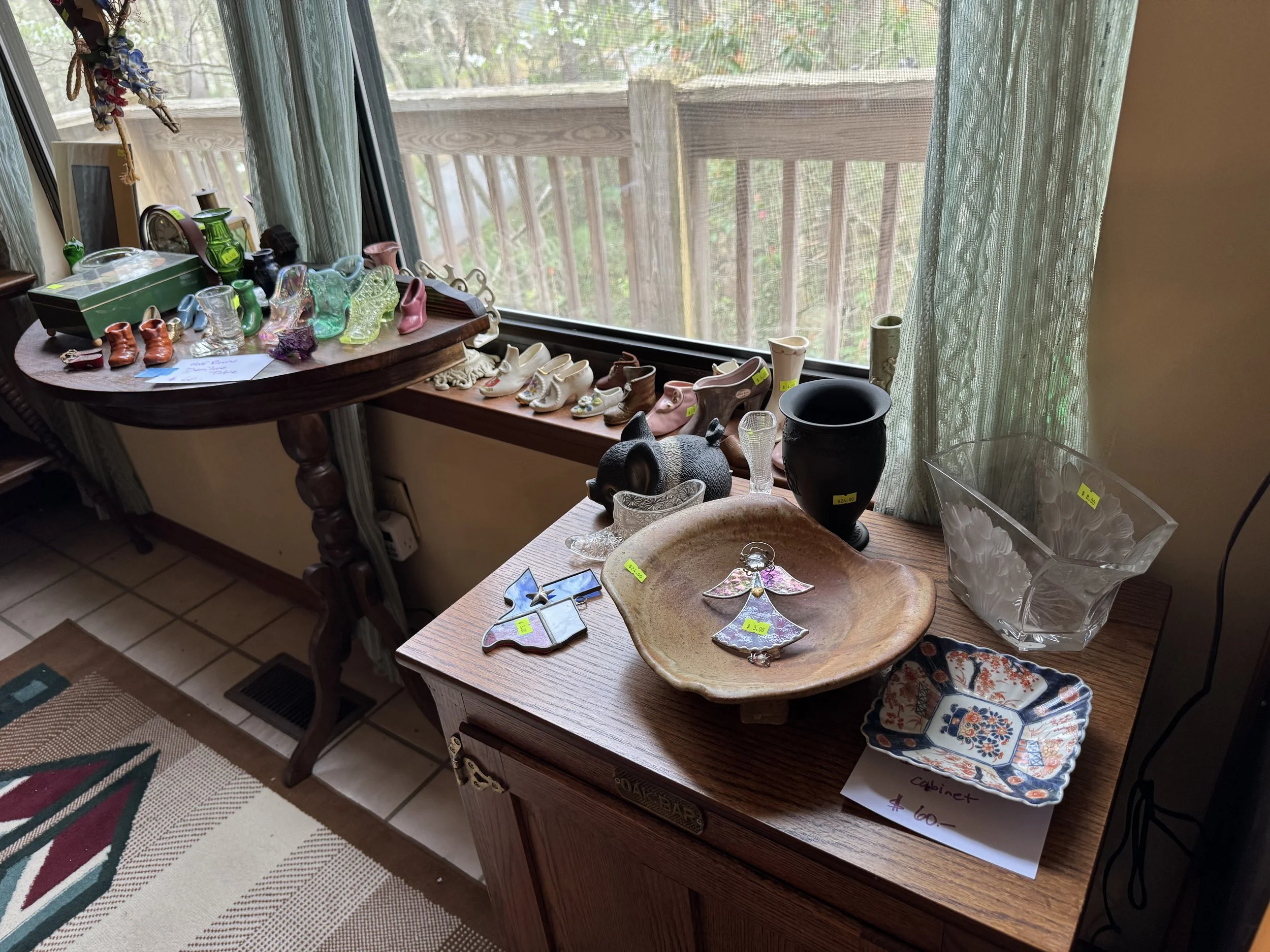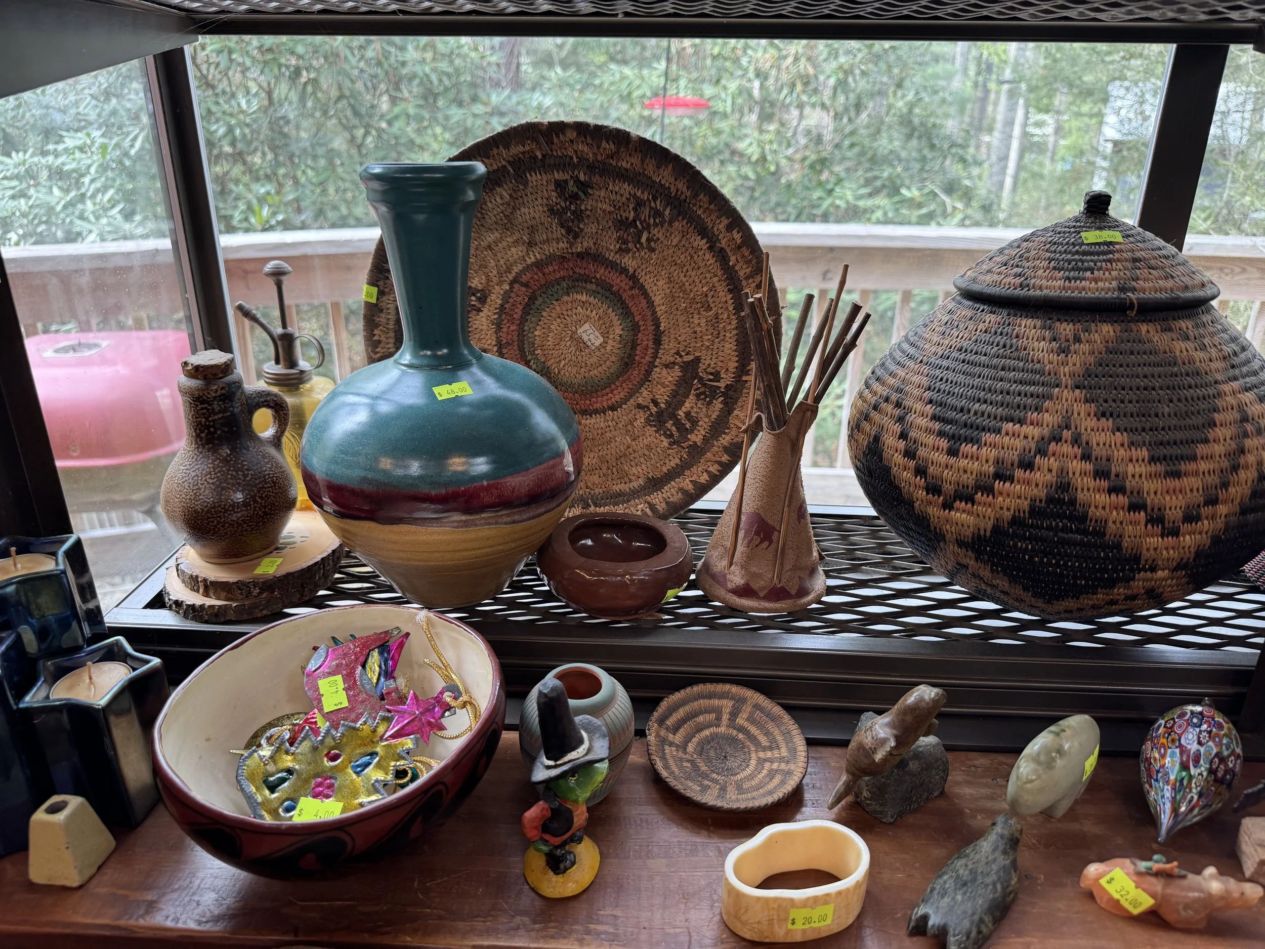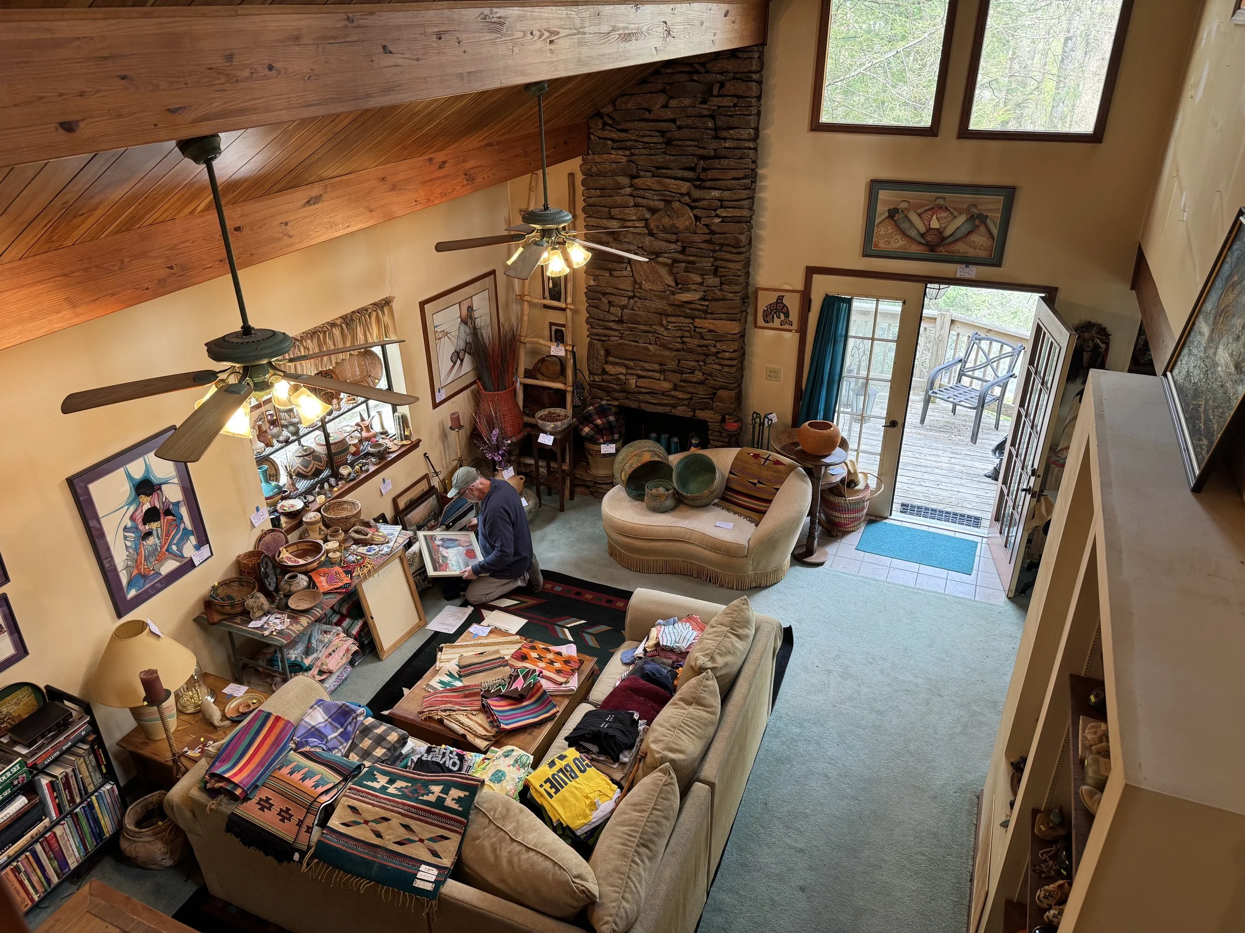 We are back at a house this weekend in Hendersonville, NC. The home is tucked away in trees, hence I'm calling it the treehouse sale. The family were former antique dealers who were also collectors. The collections include 1st Nations pottery, rugs, prints, original art, sand art, dolls and more, furniture, clothings, tools etc. Please see the photos and video for more details.