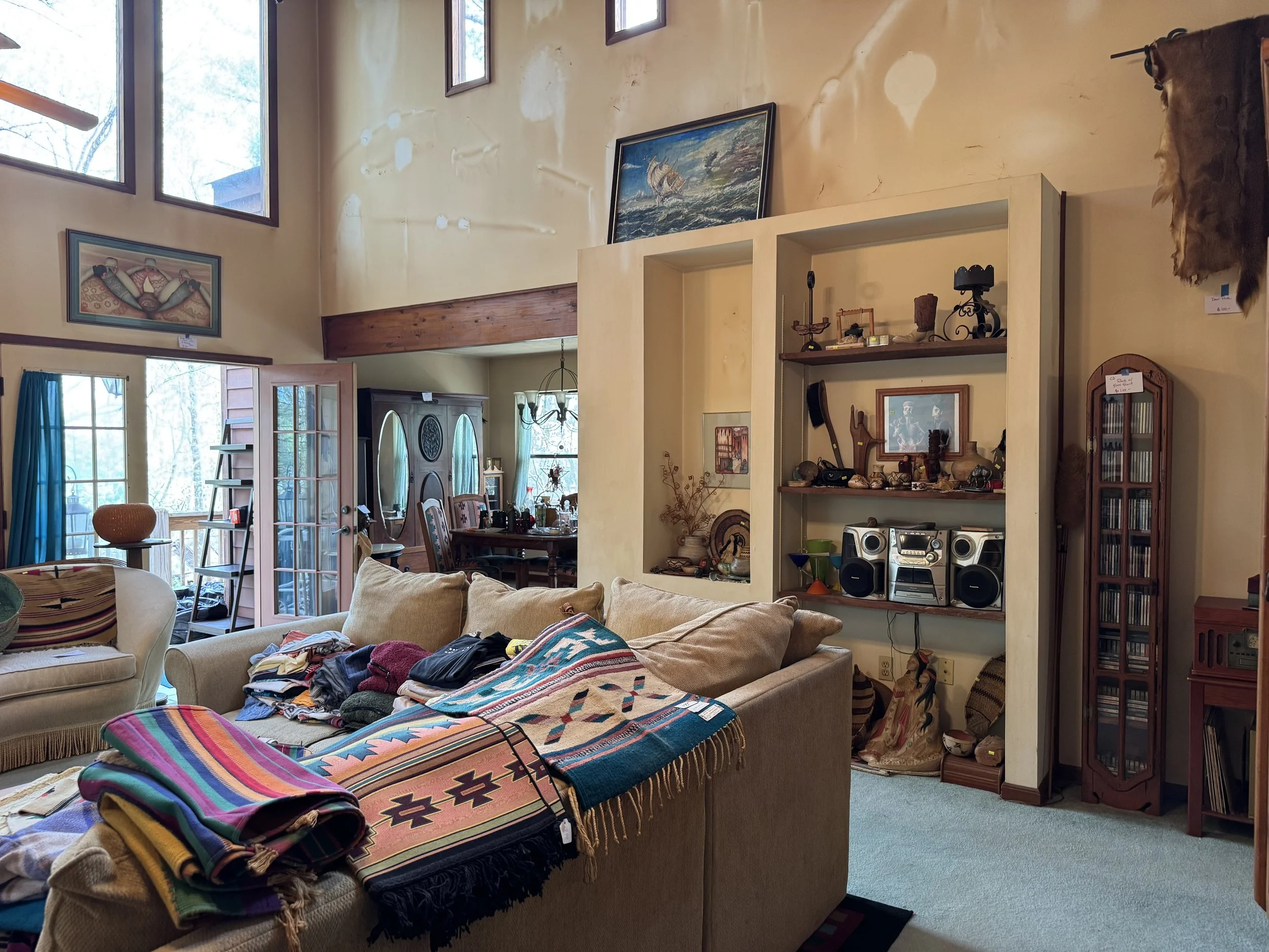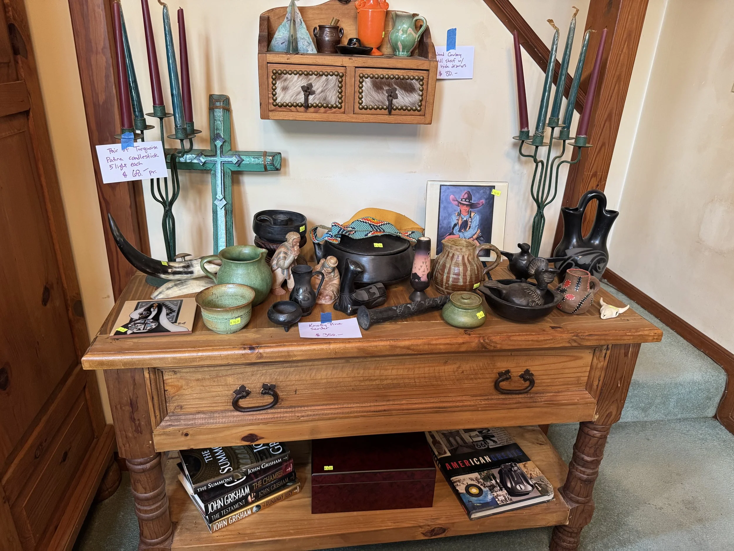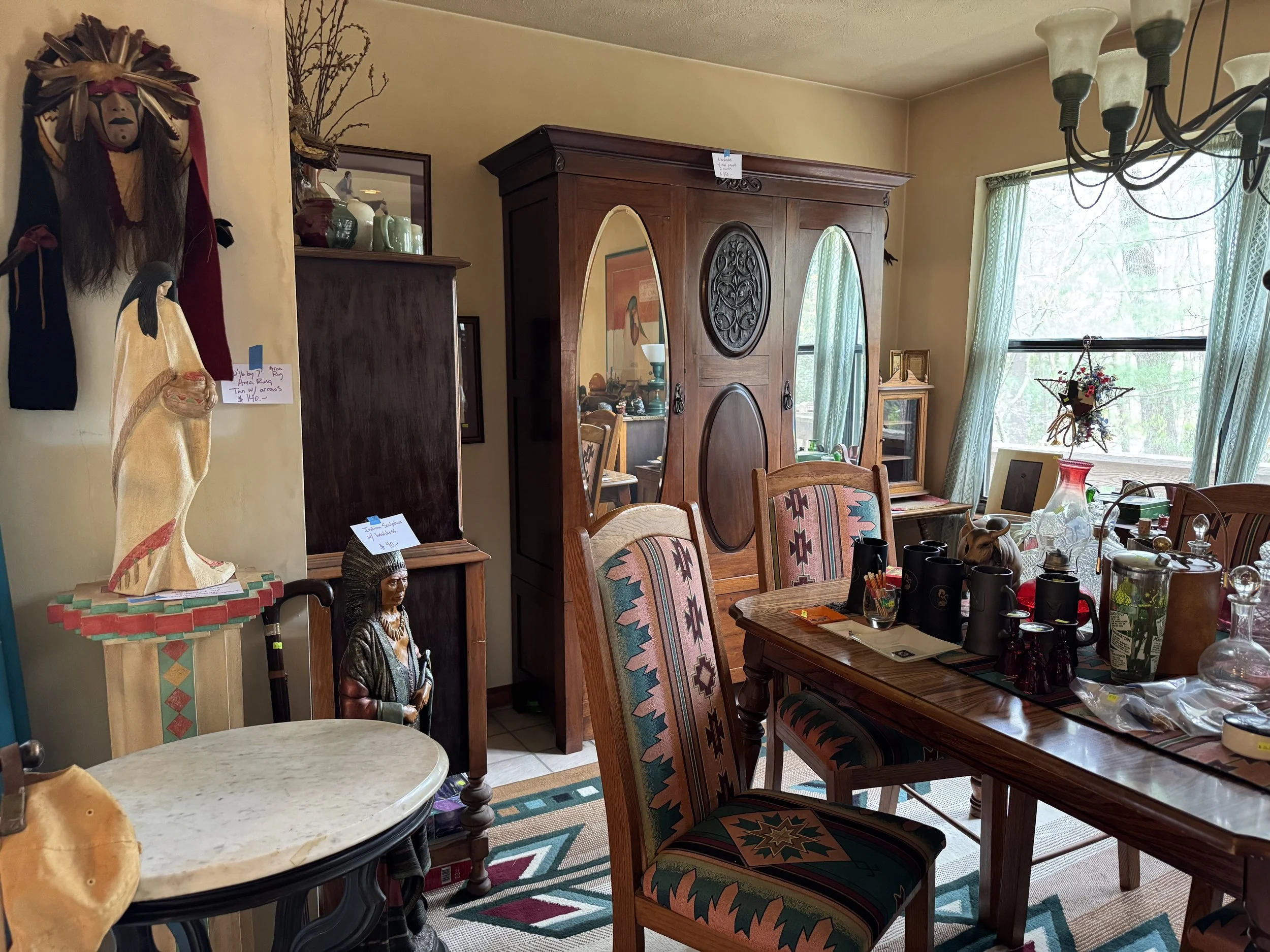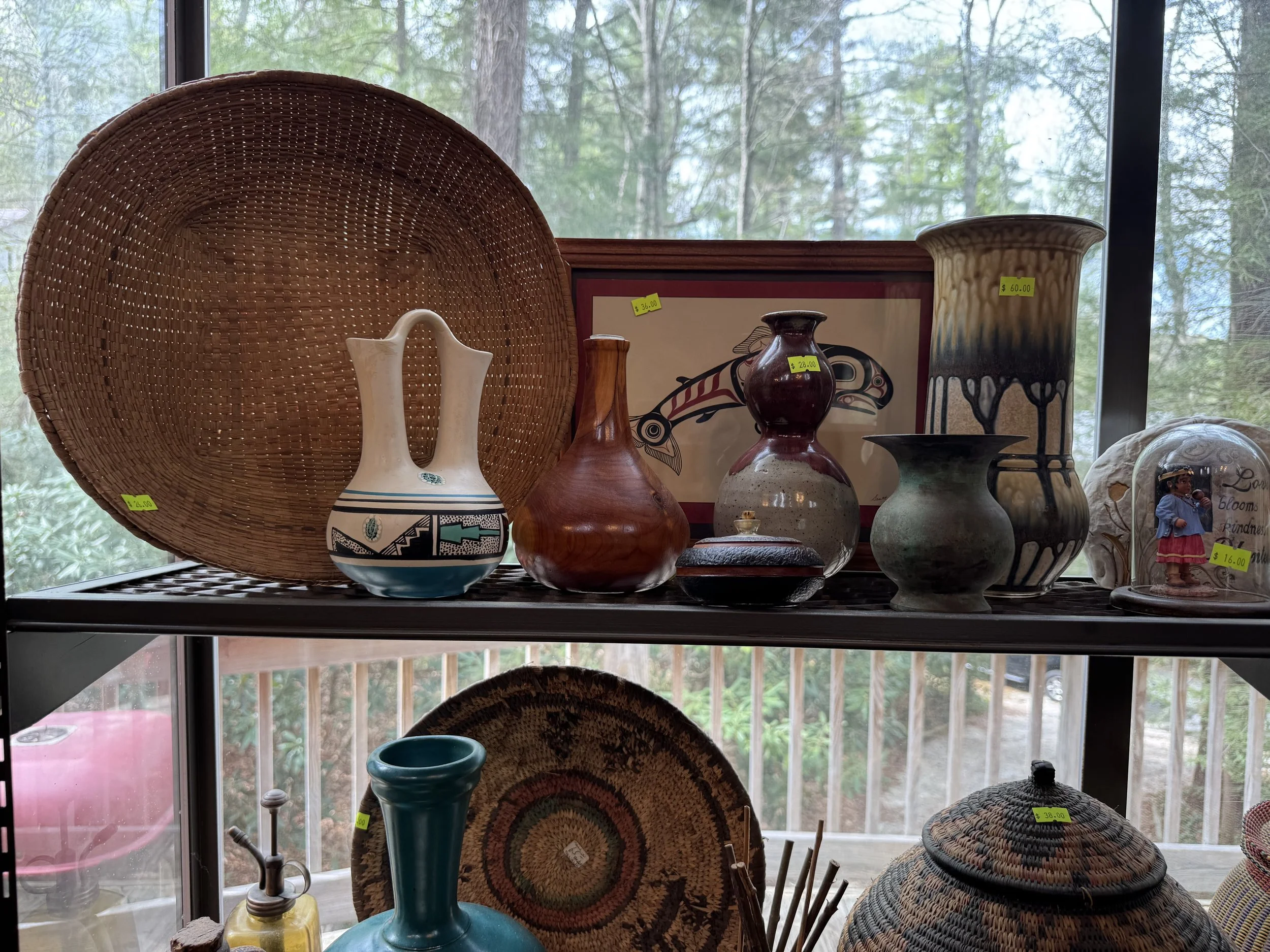 We are back at a house this weekend in Hendersonville, NC. The home is tucked away in trees, hence I'm calling it the treehouse sale. The family were former antique dealers who were also collectors. The collections include 1st Nations pottery, rugs, prints, original art, sand art, dolls and more, furniture, clothings, tools etc. Please see the photos and video for more details.