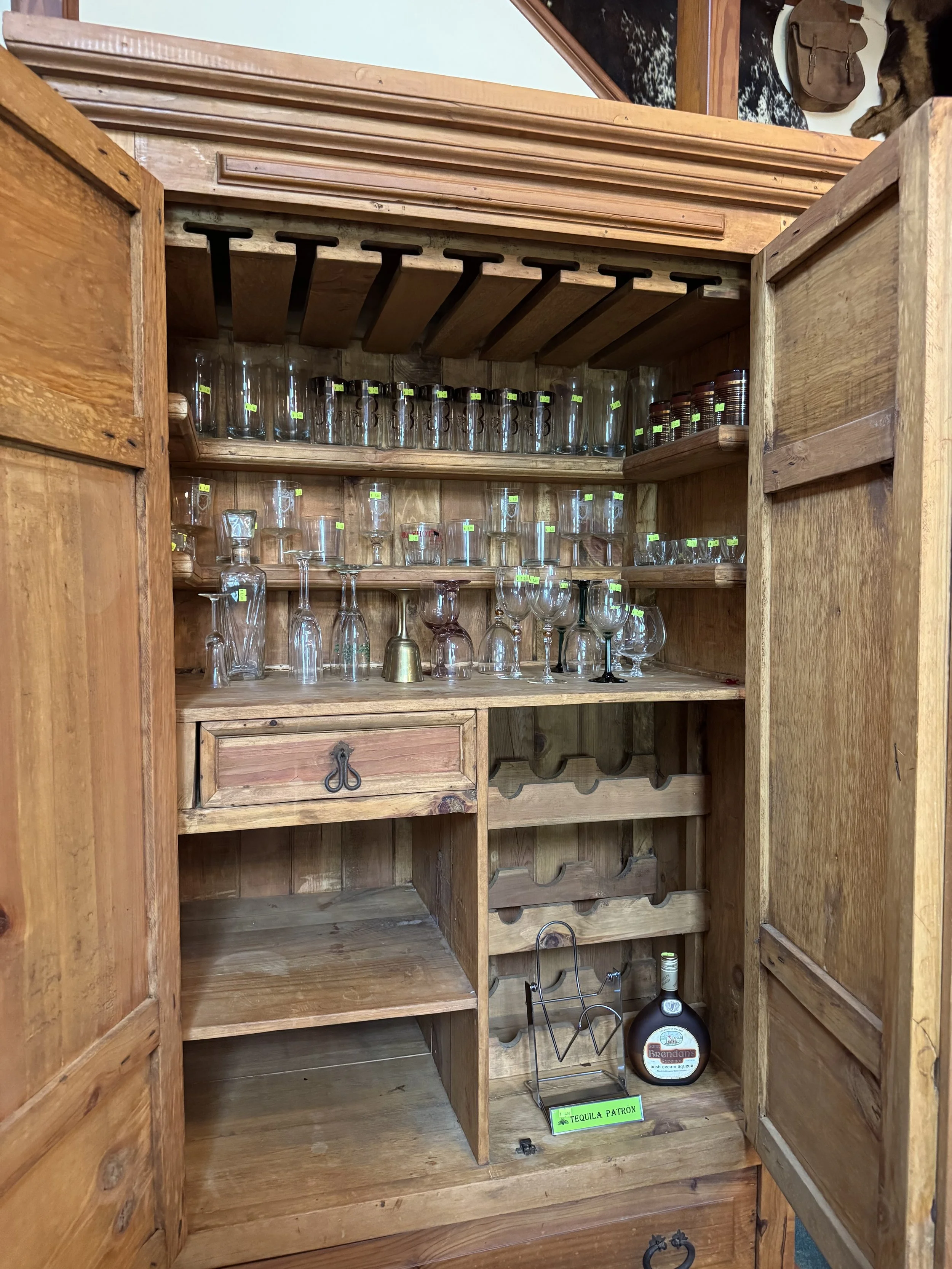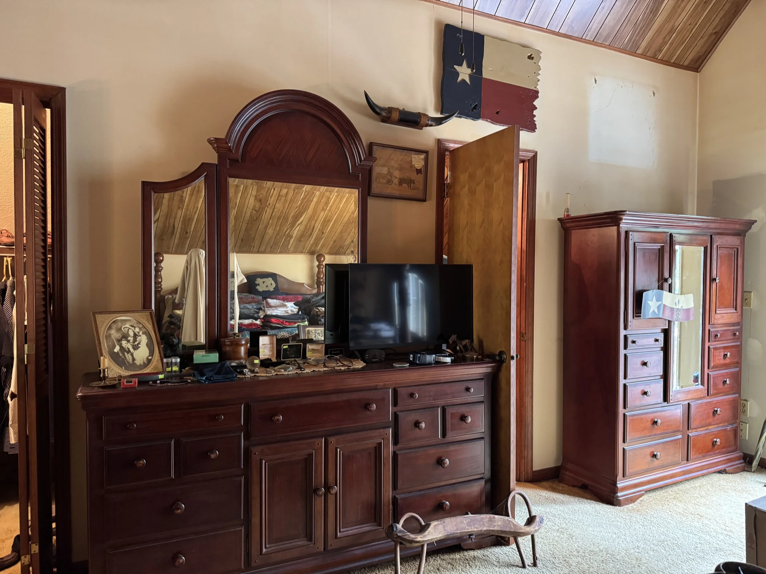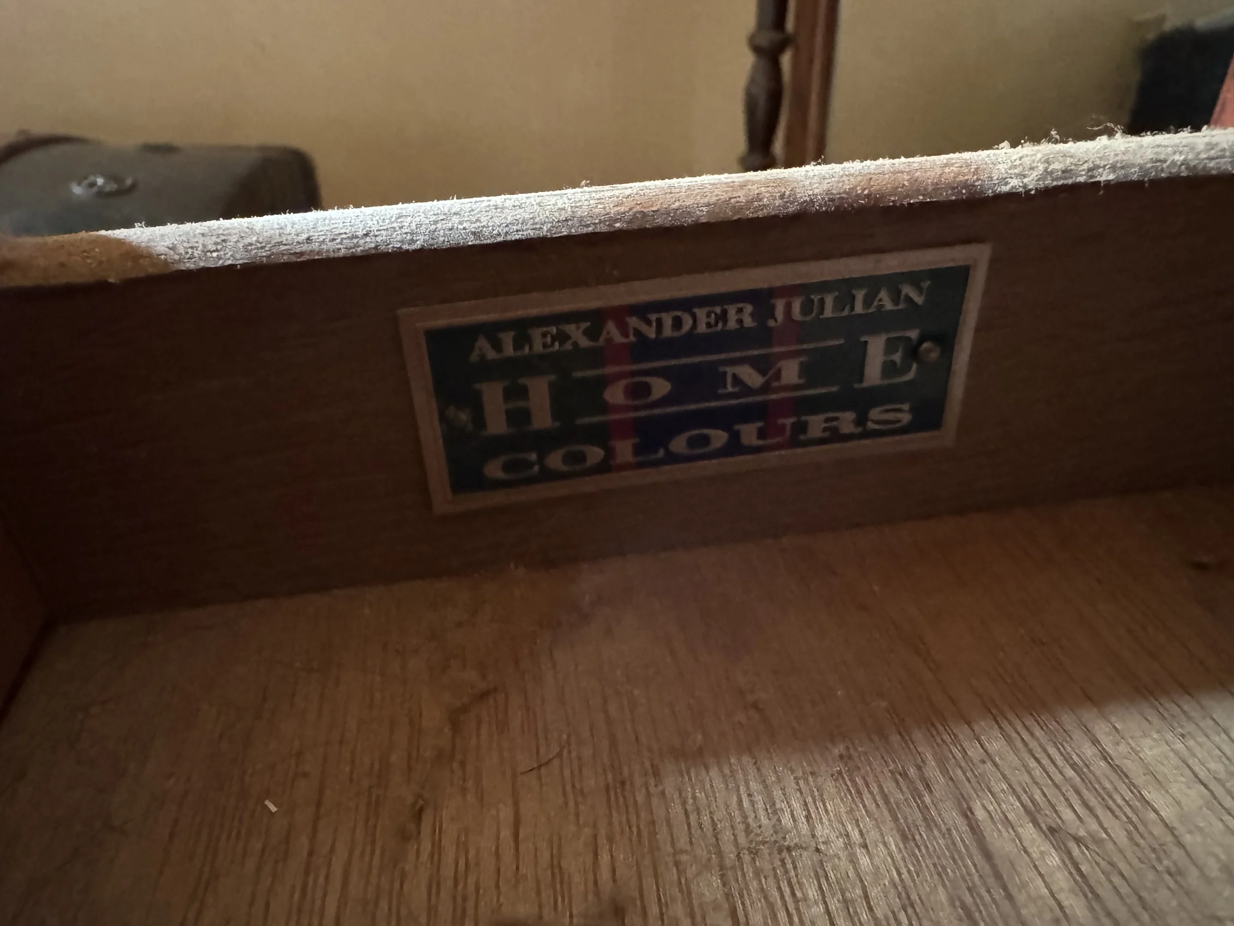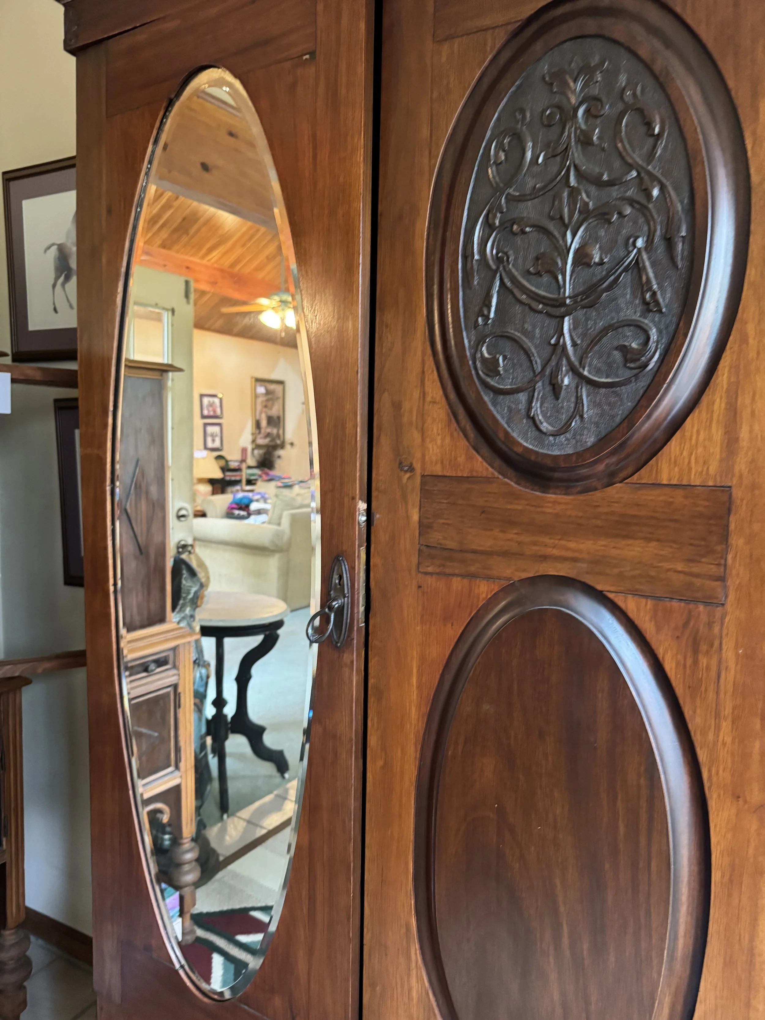 Furniture: Alexander Julian Colors Home Collection bedroom set, bed, 2 nightstands, dresser, dining room set, handcrafted coffee table, side table and bar, art deco server, antique wardrobe, sofa, fainting couch, upright piano, handcrafted iron/wagon wheel bench, side tables, chairs, etc