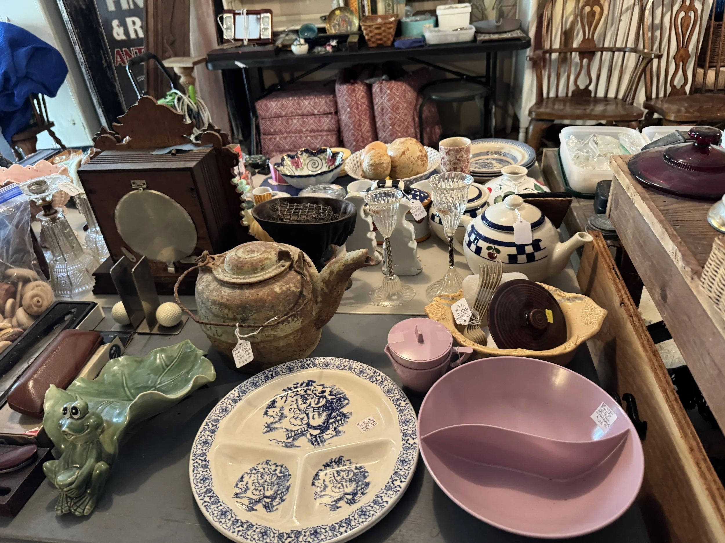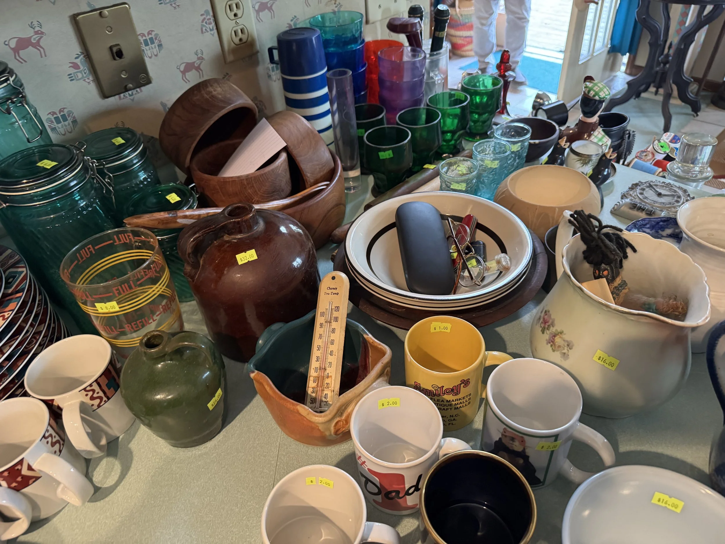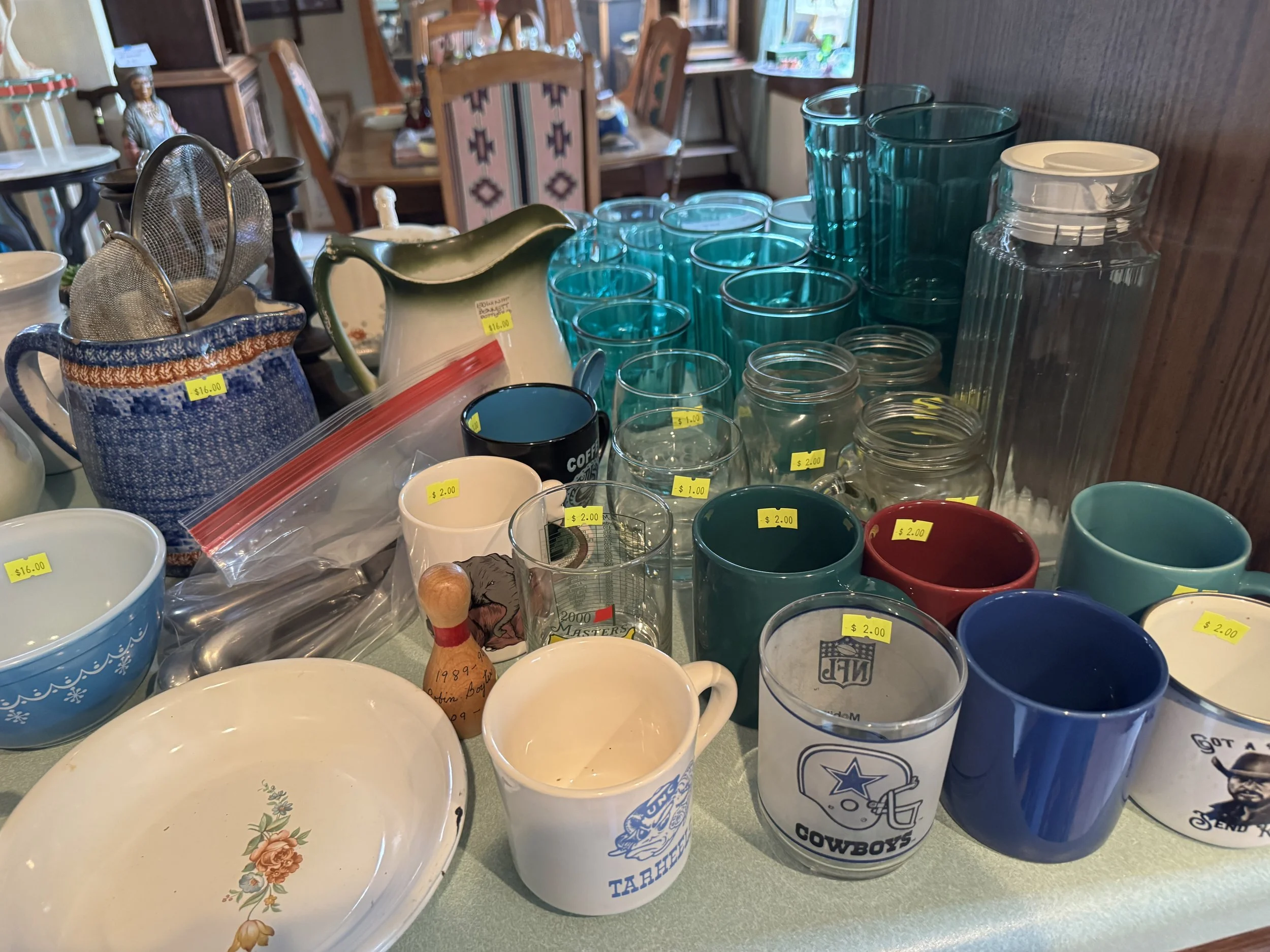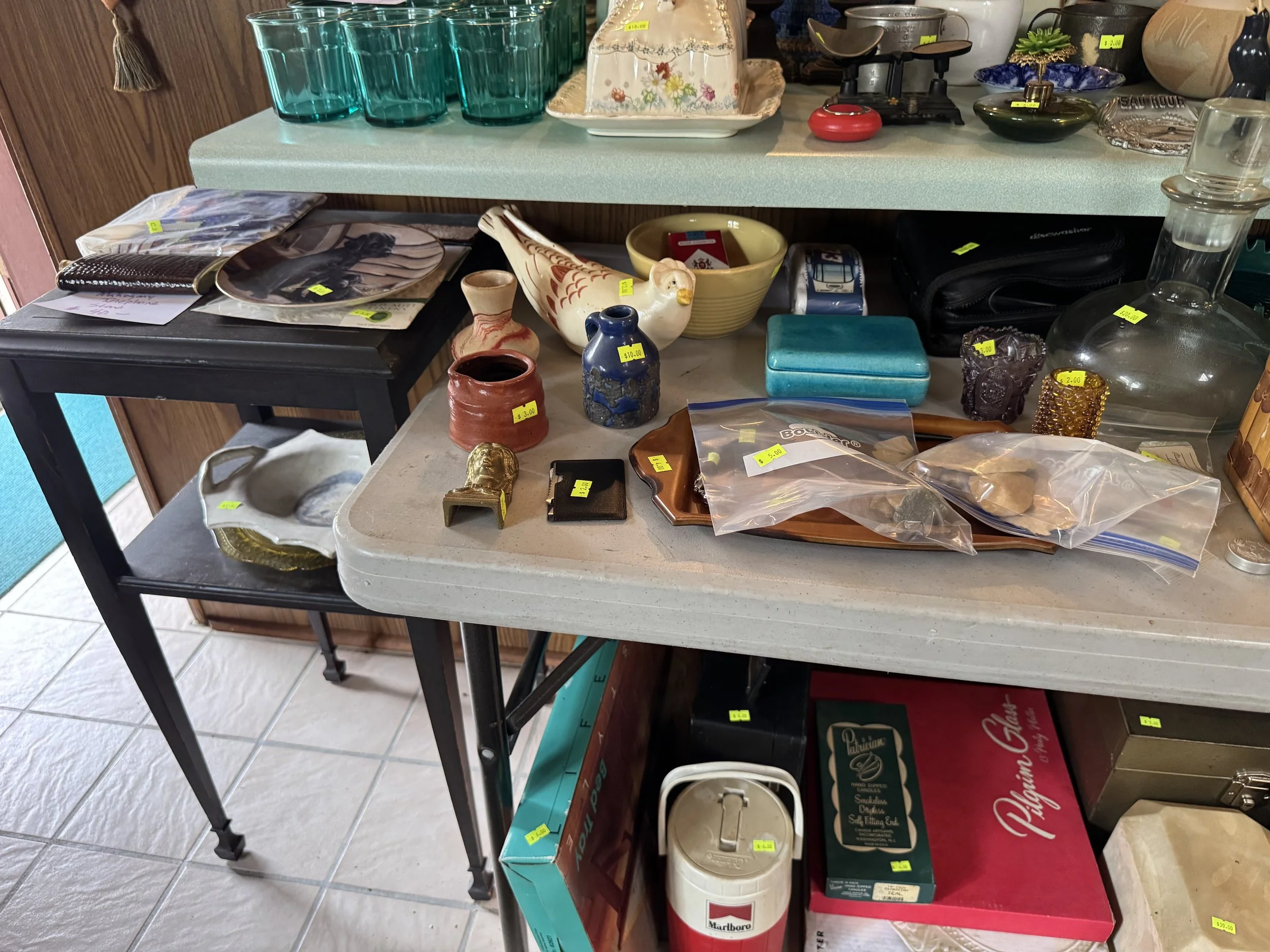 Kitchen/Glassware: Pyrex, everyday dishes, barware, pots/pans, serving pieces, canisters, small kitchen appliances, etc