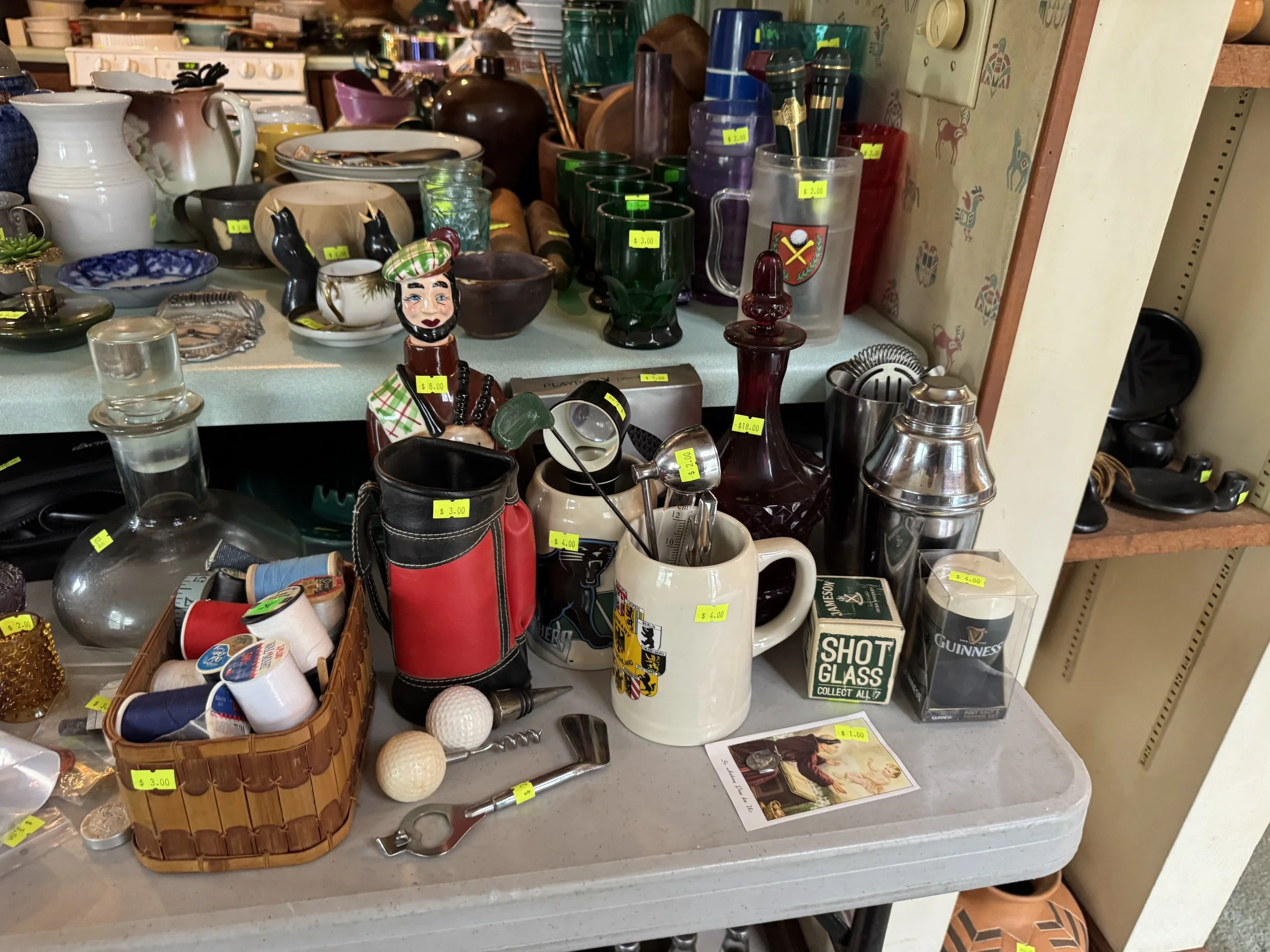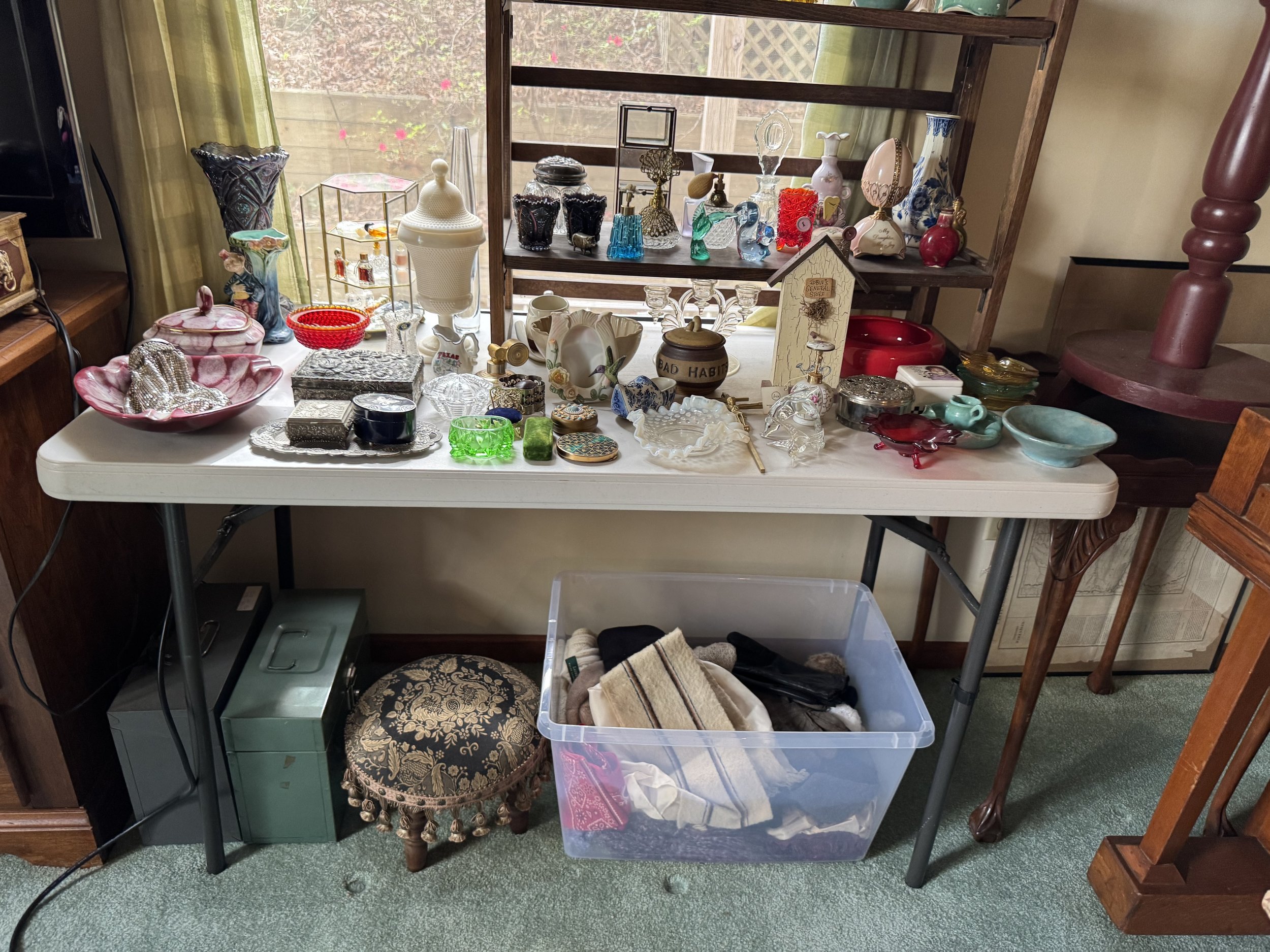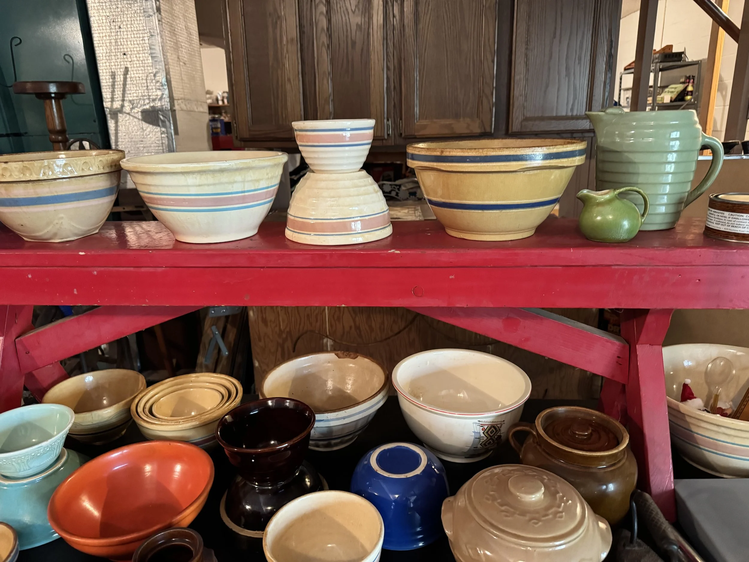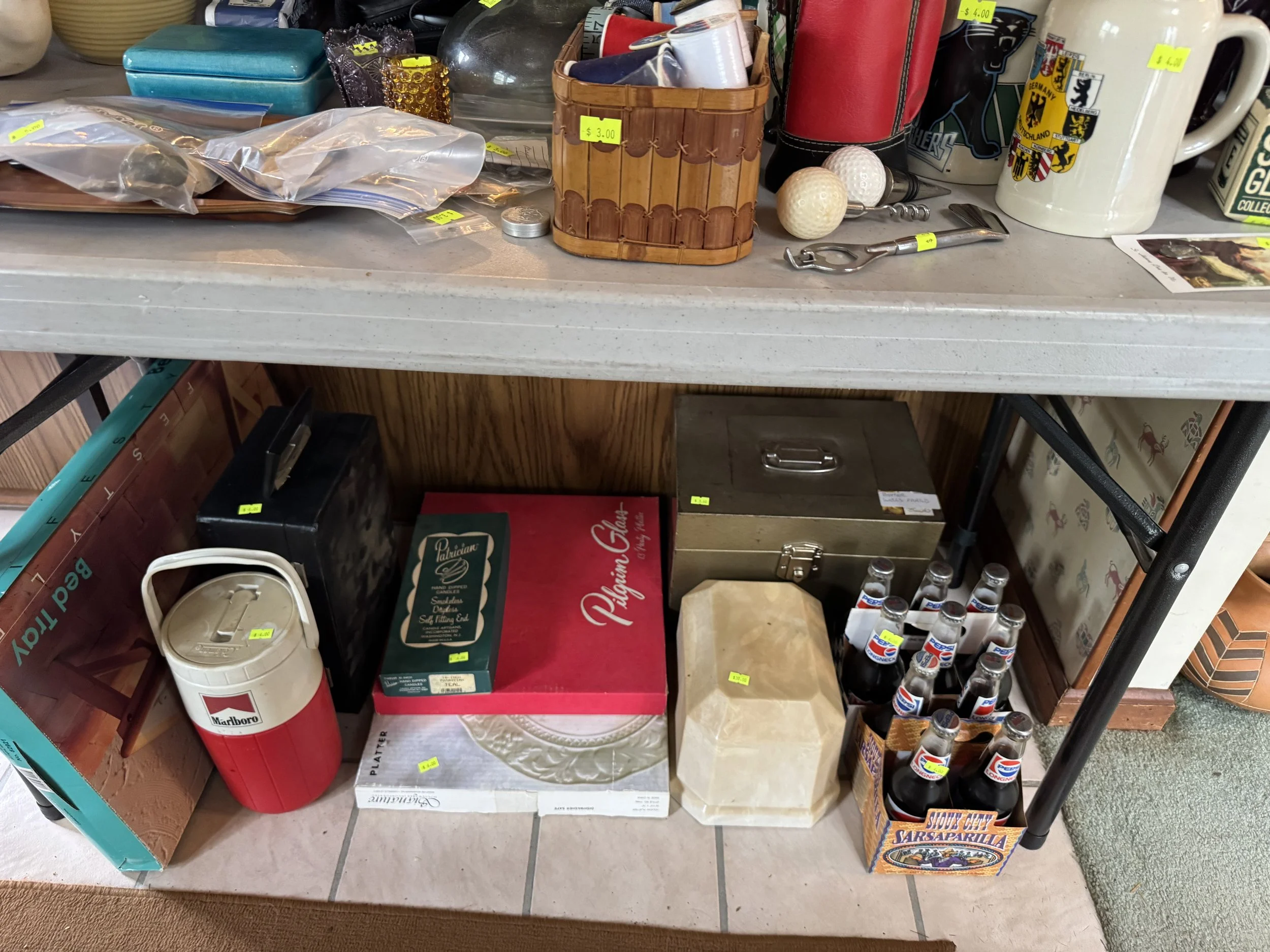 Kitchen/Glassware: Pyrex, everyday dishes, barware, pots/pans, serving pieces, canisters, small kitchen appliances, etc