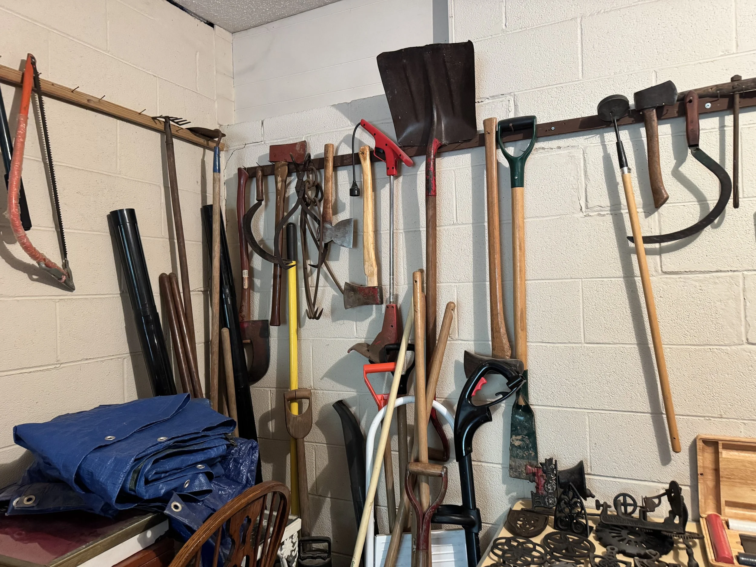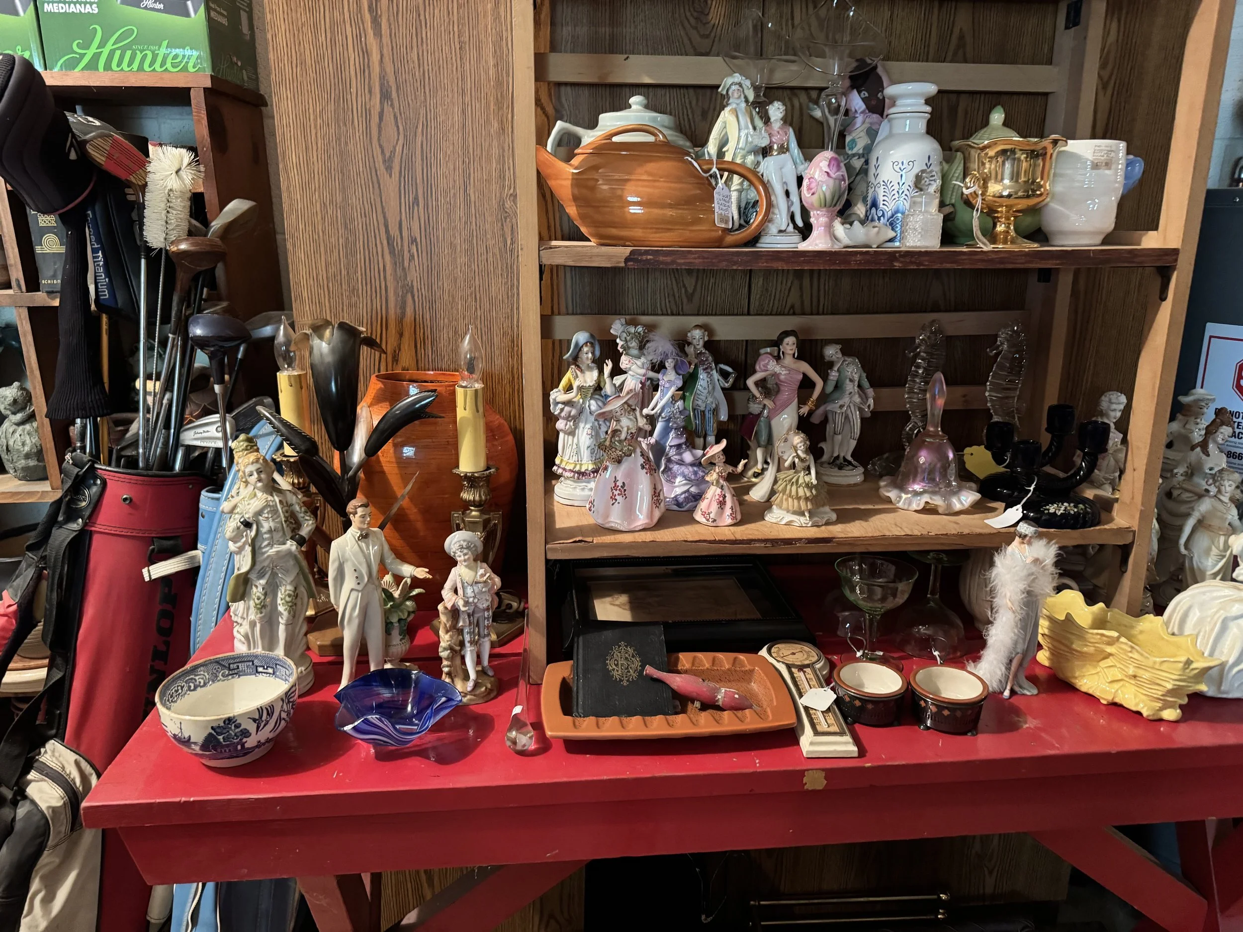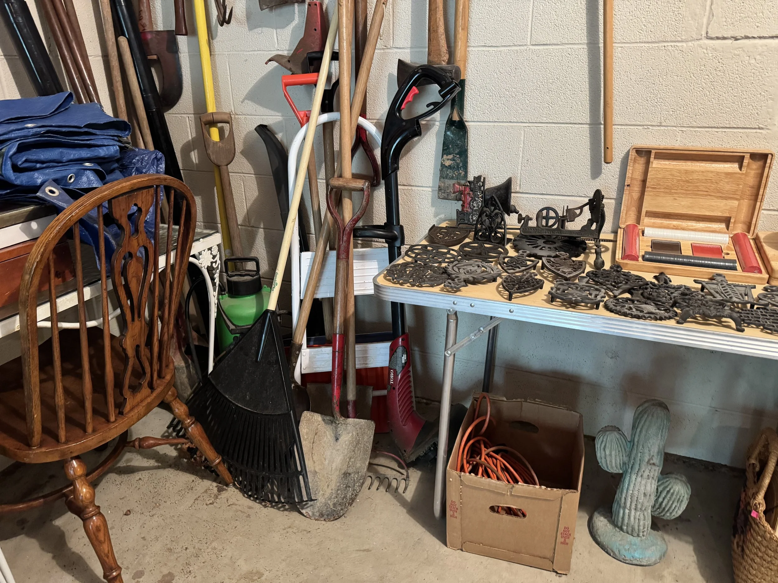Misc: Tools, toolboxes, saddle, outdoor furniture, area rugs, upright piano, men's/women's clothing from size S-XL, men's/women's shoes, decor, collections: 1st Nations, glassware, some books reference books, golf items - clubs 3 sets, wall art, golf ball display, glass shoes, small figures, small boxes, antique trivets, etc