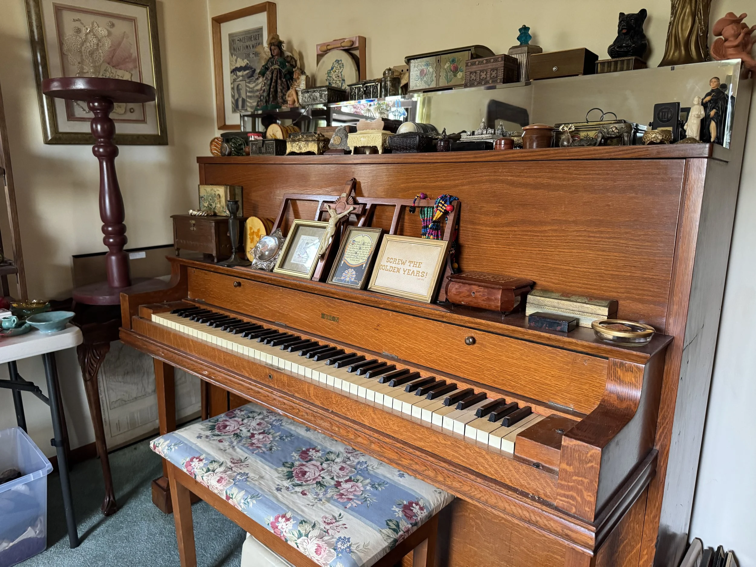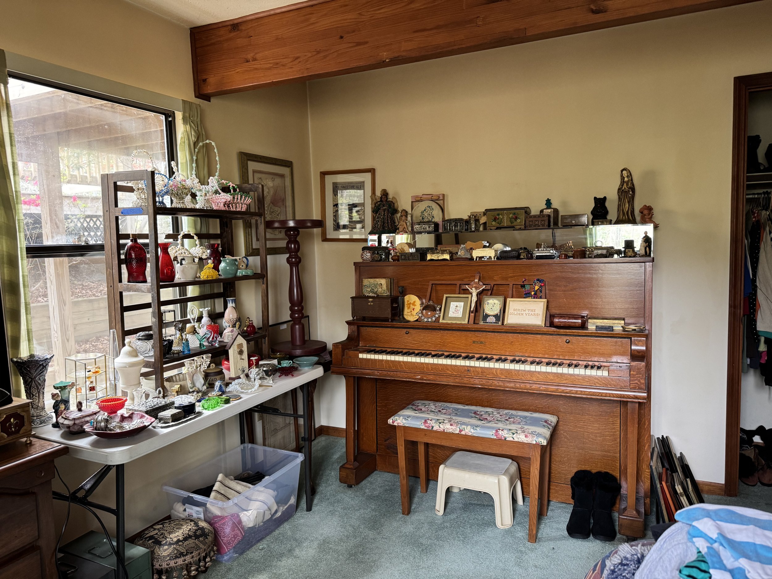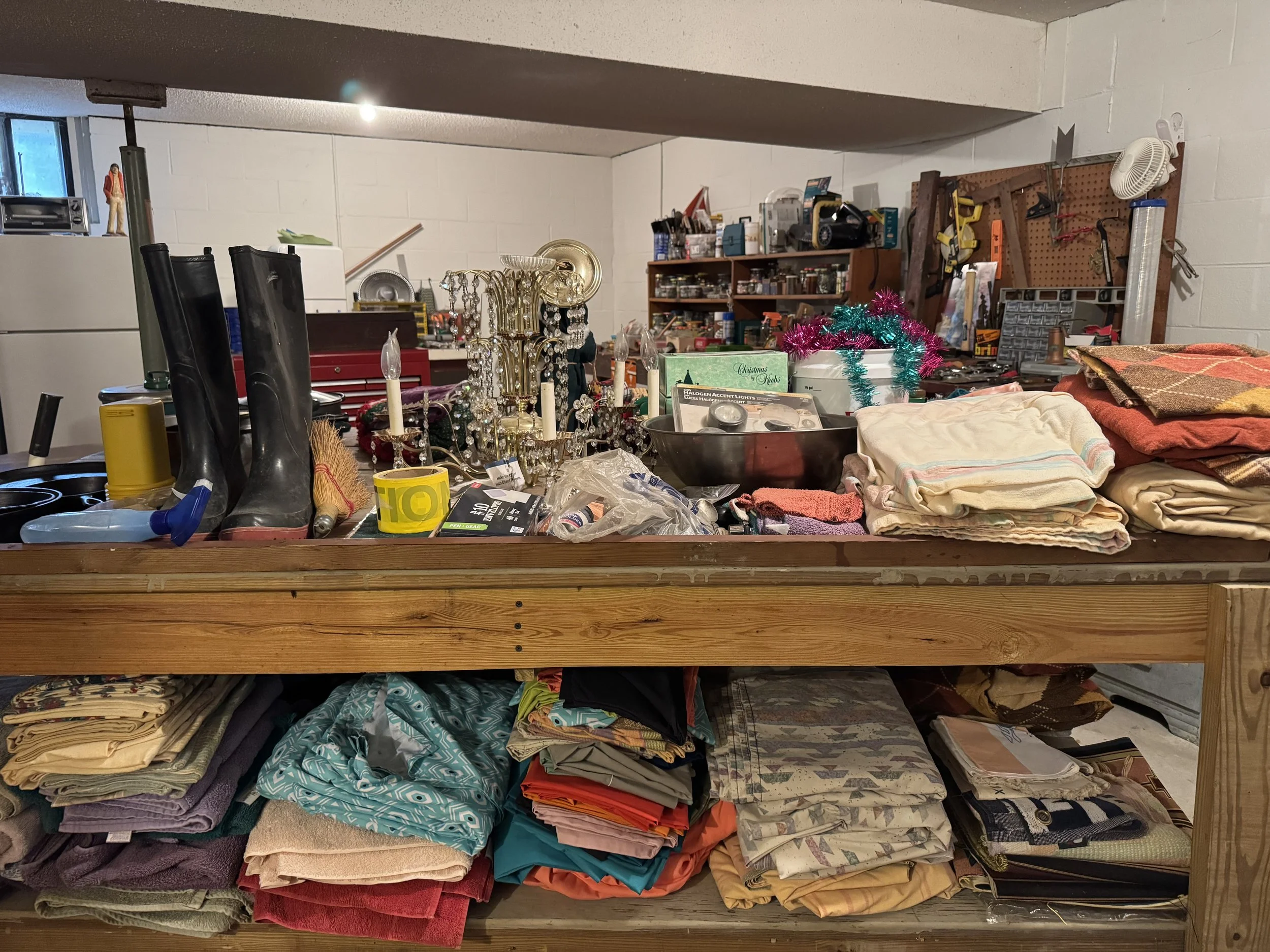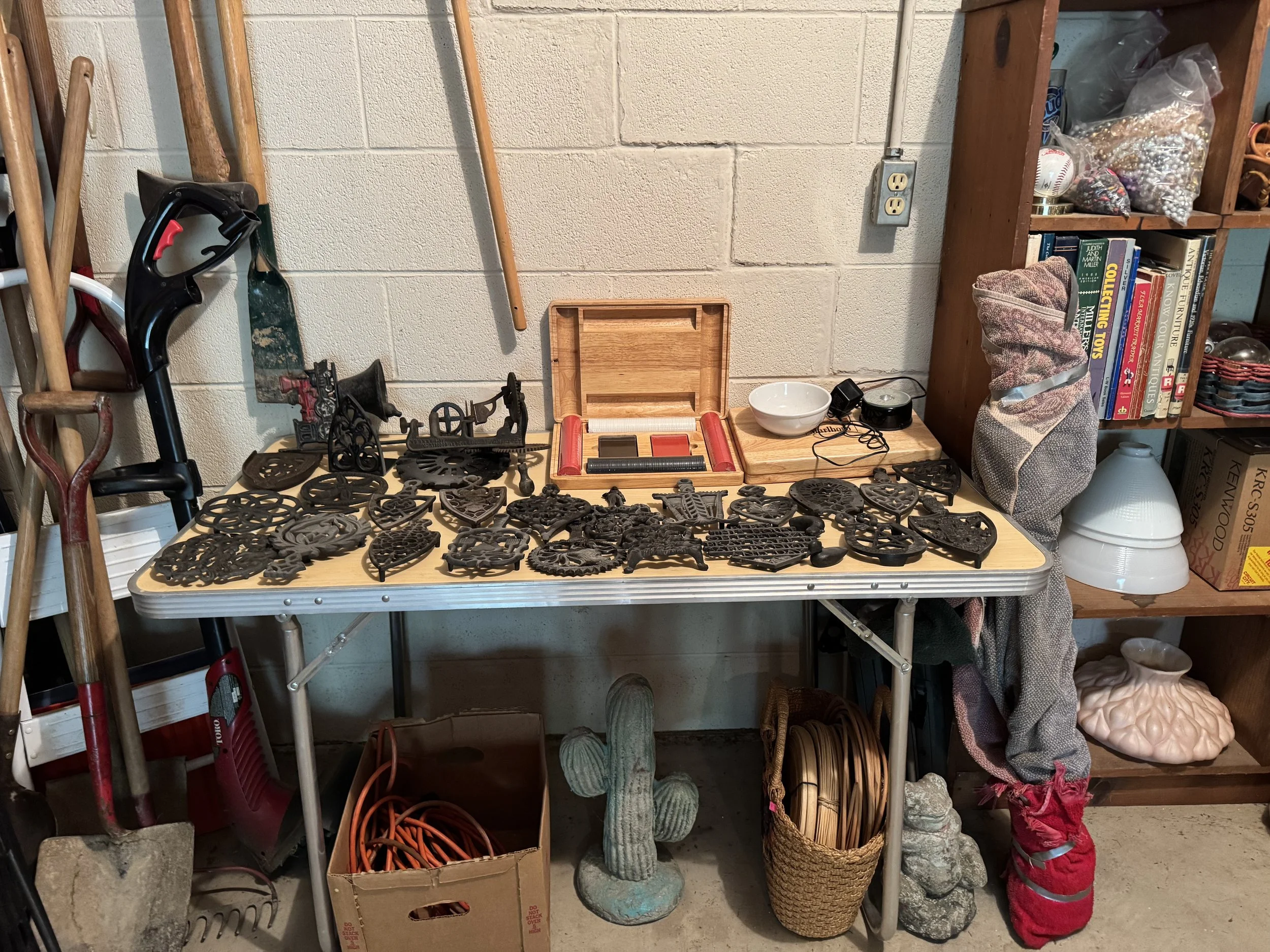 Misc: Tools, toolboxes, saddle, outdoor furniture, area rugs, upright piano, men's/women's clothing from size S-XL, men's/women's shoes, decor, collections: 1st Nations, glassware, some books reference books, golf items - clubs 3 sets, wall art, golf ball display, glass shoes, small figures, small boxes, antique trivets, etc
