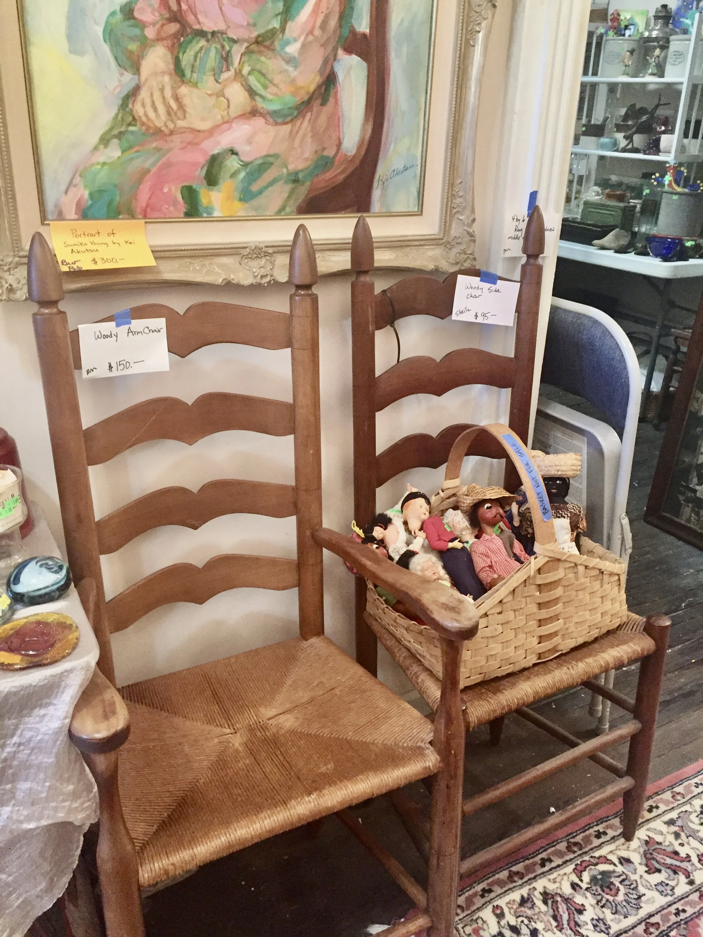 Furniture: 2 sets of Woody chairs - handcrafted by Southern Highland Artist from Burnsville, oak chests, oak dressers, aqua painted dressers, MCM bar, MCM hutch, lamps, side tables, steamer trunks, dining chairs, armoires, etc