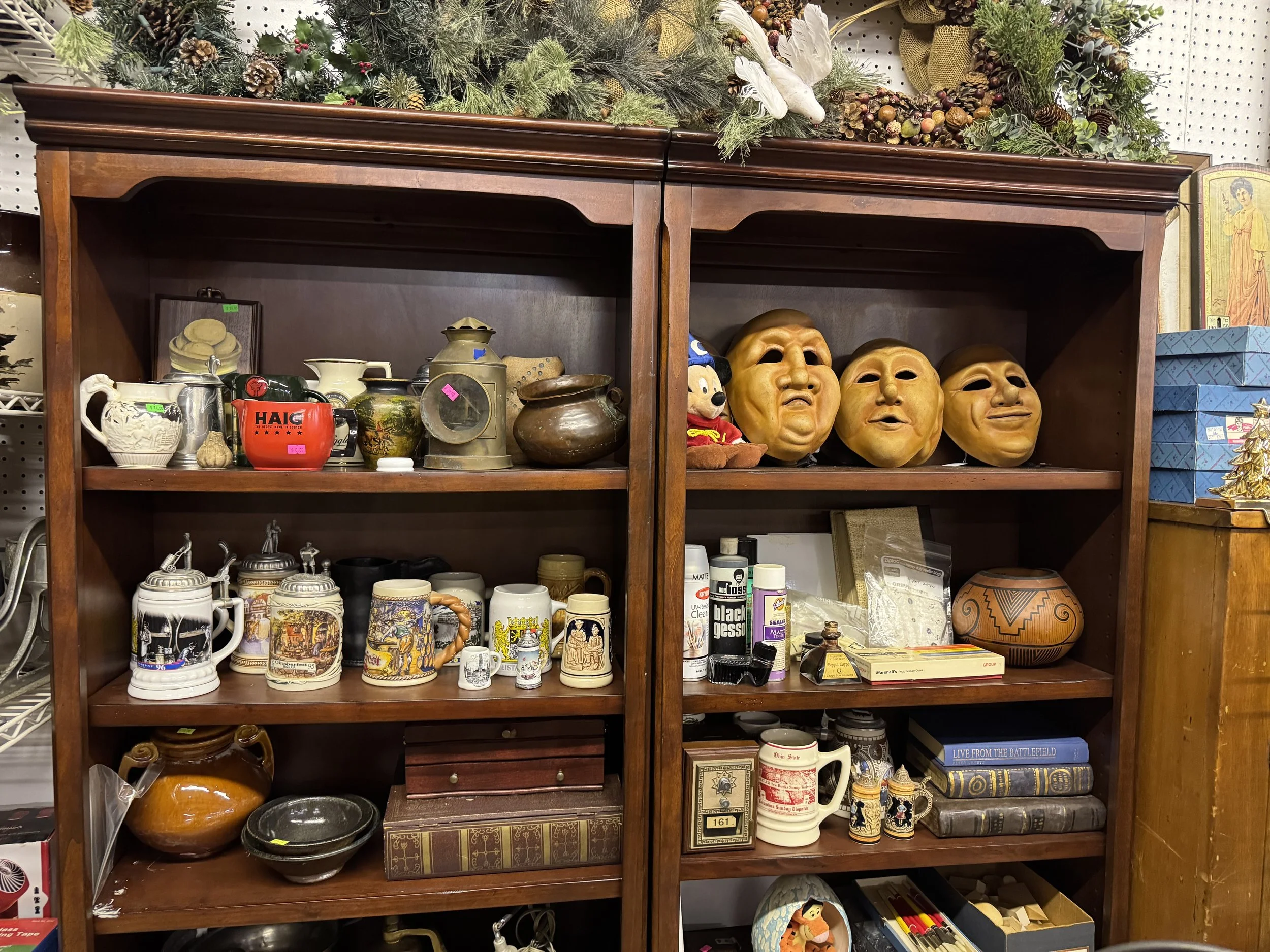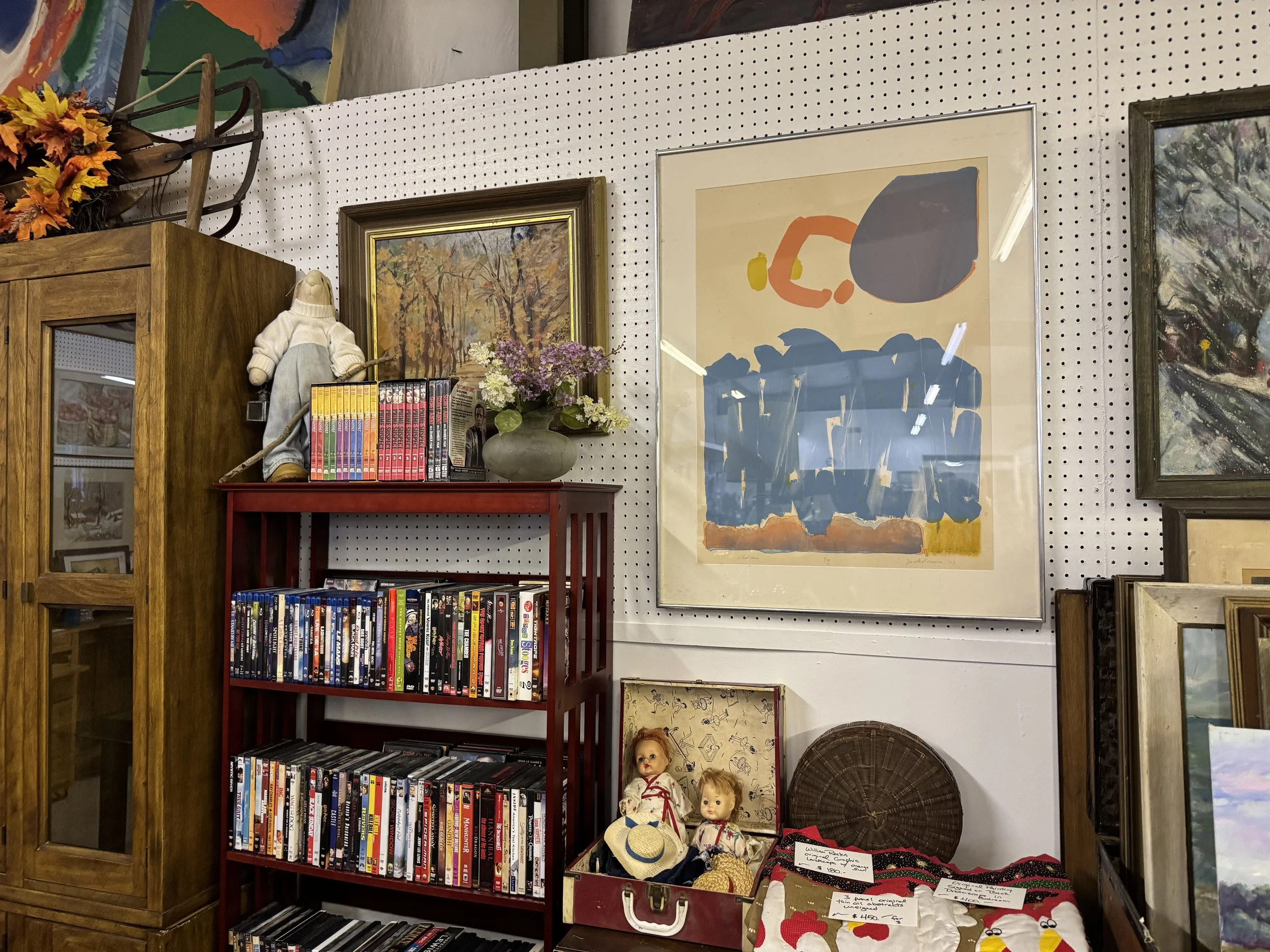 Misc: Original art, many listed artists, quality prints, pottery/stoneware for the 1800's, area rugs, decorator pieces, vintage toys and games, floral items, Halloween items, vintage holiday items, Christmas items, books, dads, cds, clothing, etc